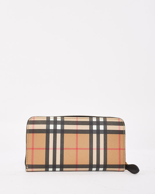 Beige Elmore Vintage Check Coated Canvas Long Zip Wallet