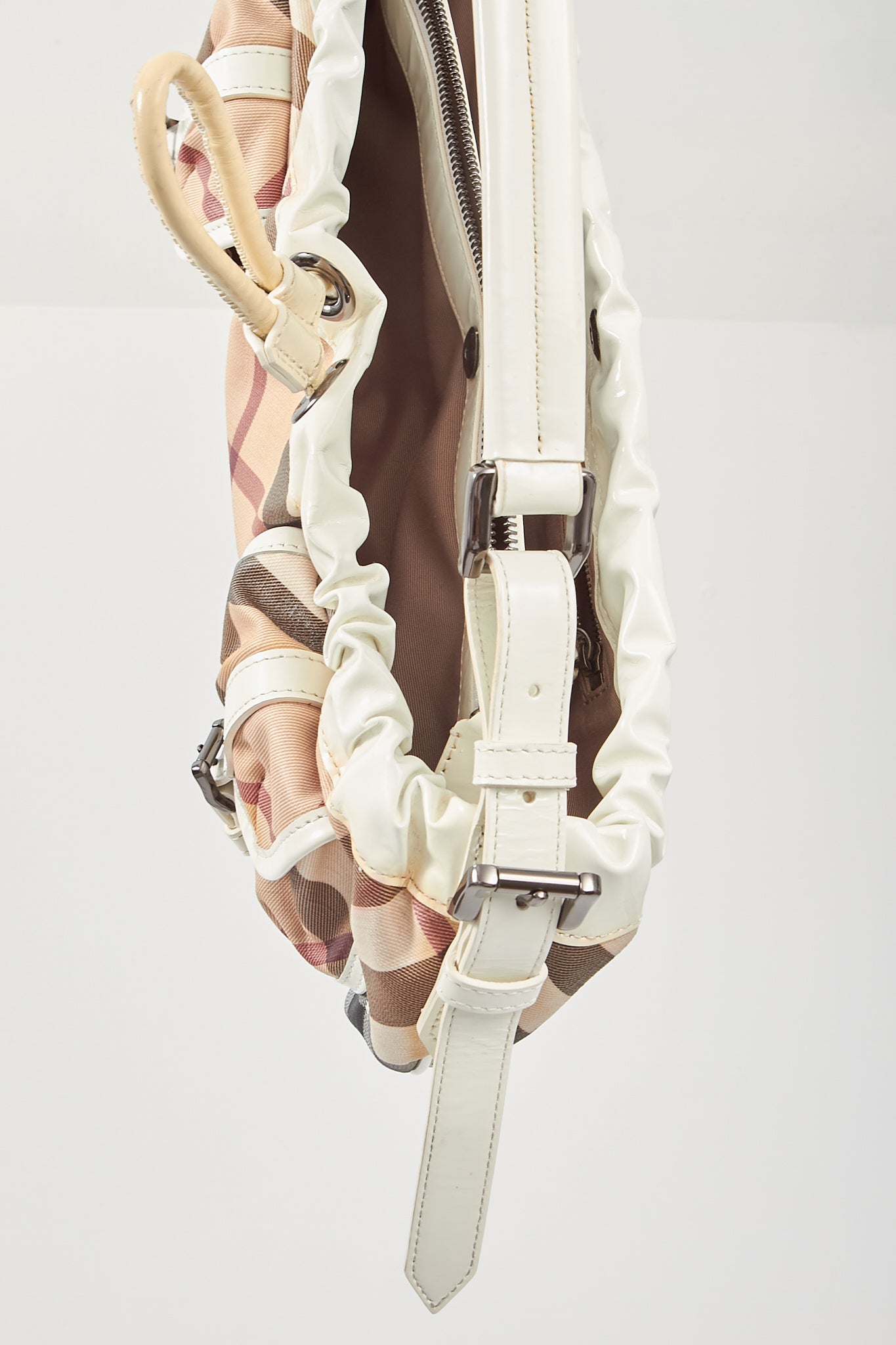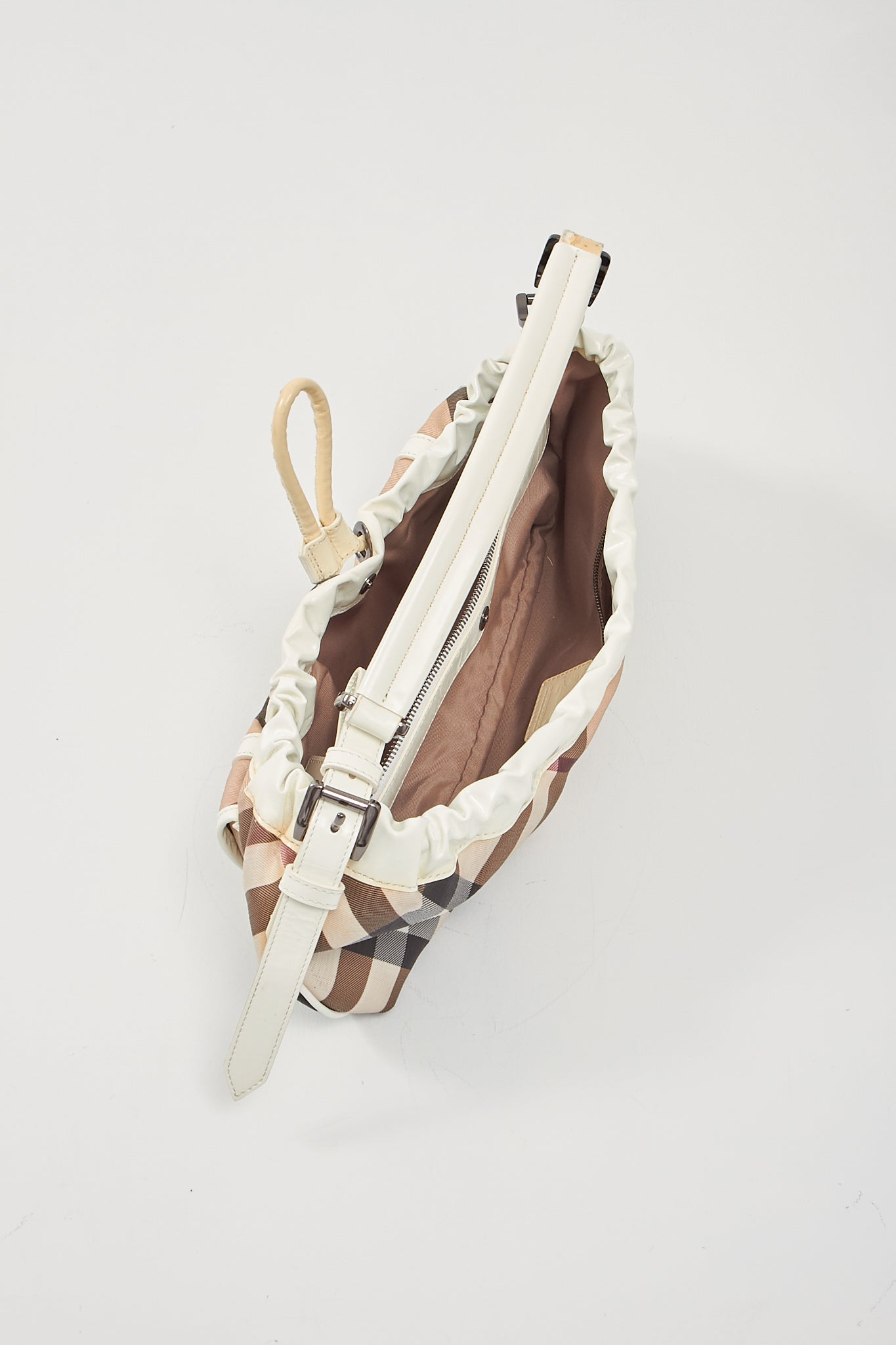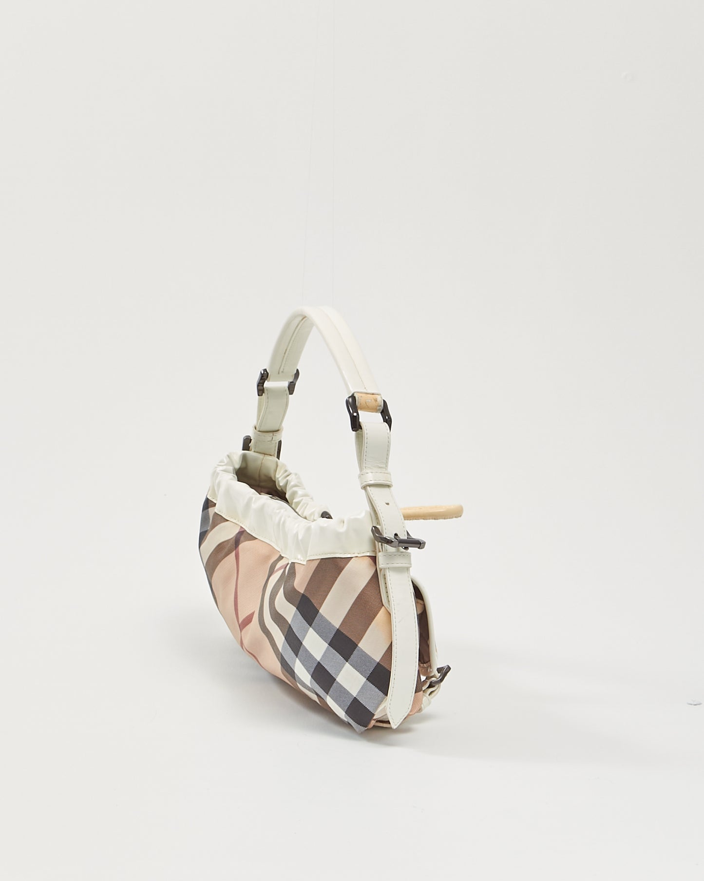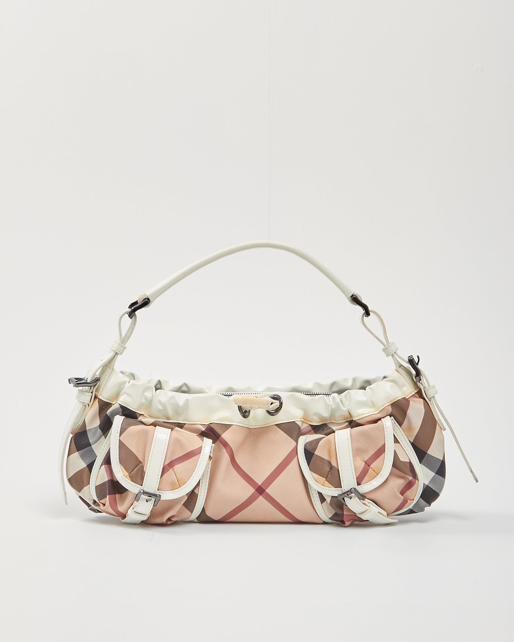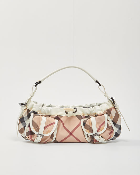 White/ House Check Canvas Shoulder Bag