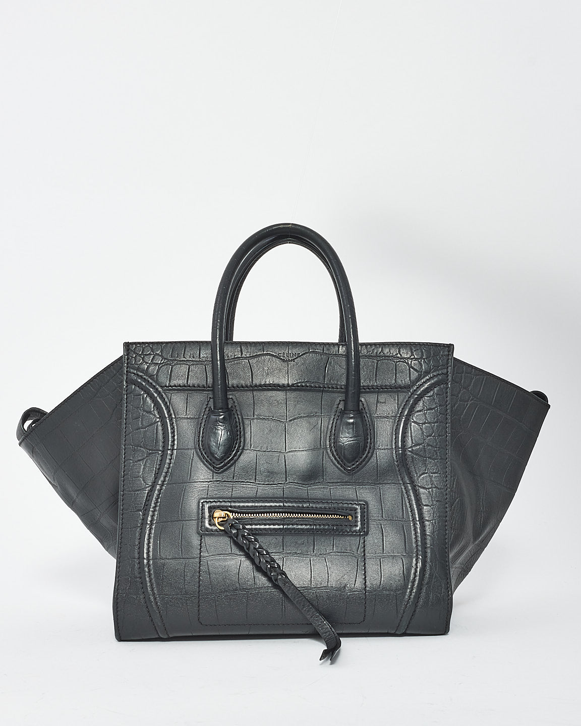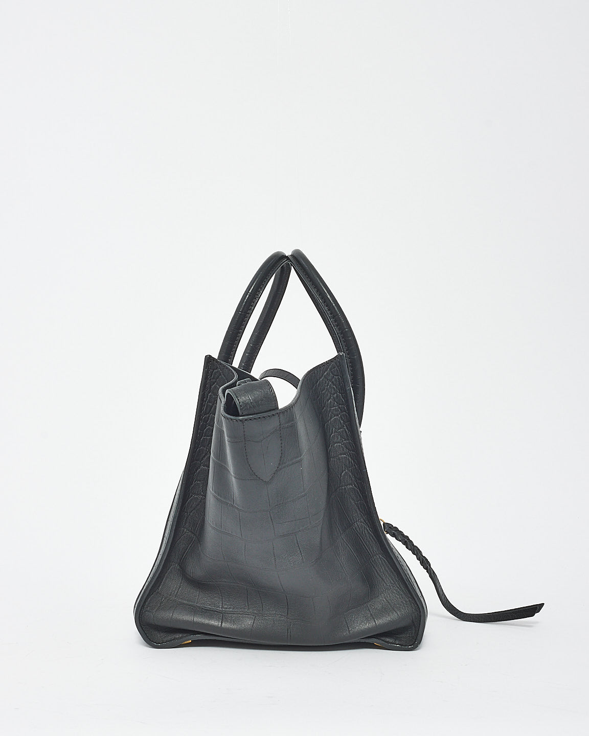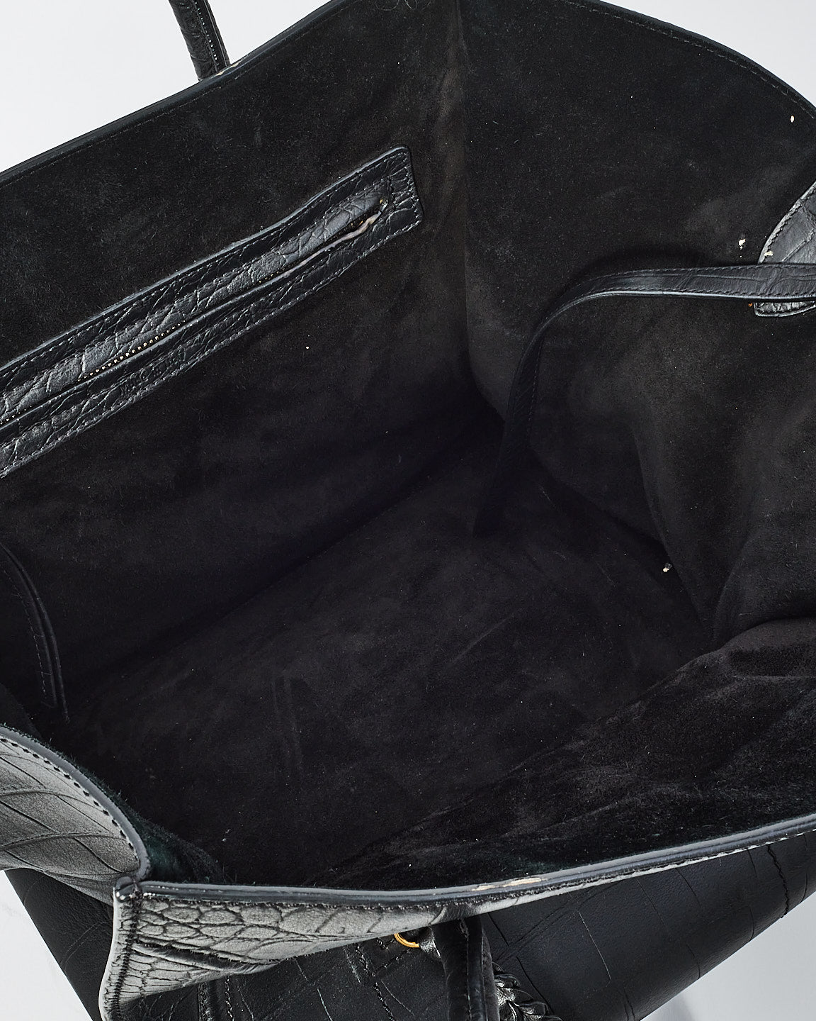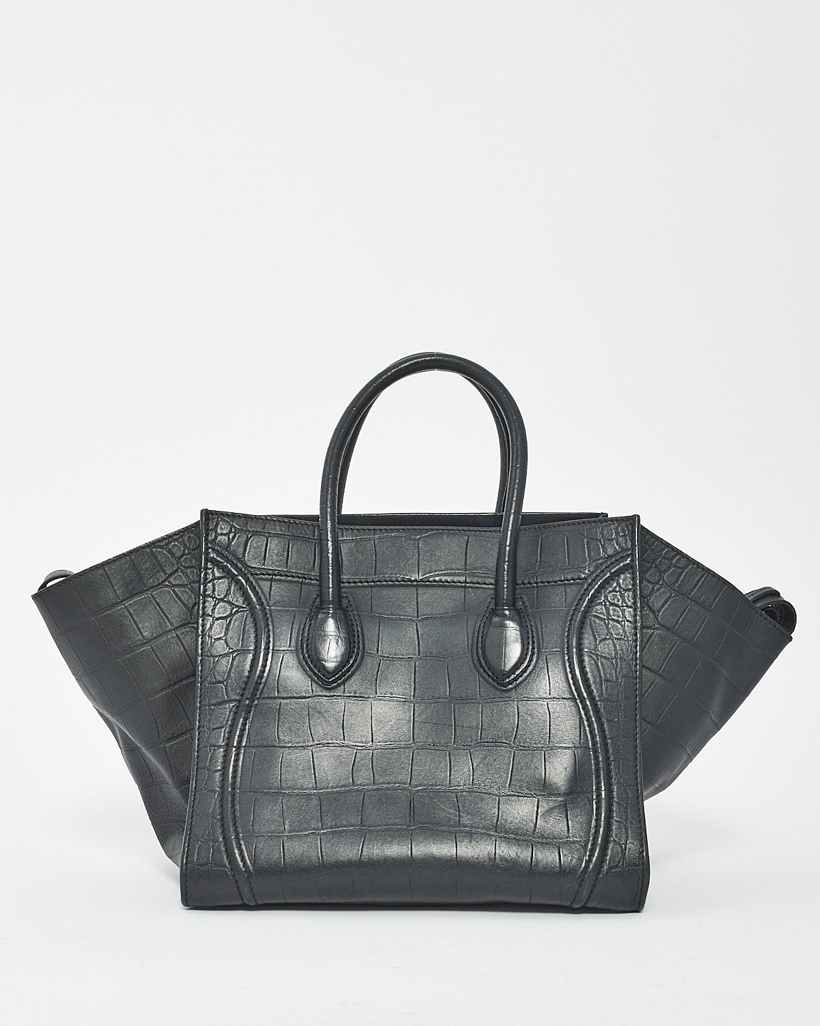 Black Croc Embossed Leather Phantom Luggage Medium Tote Bag