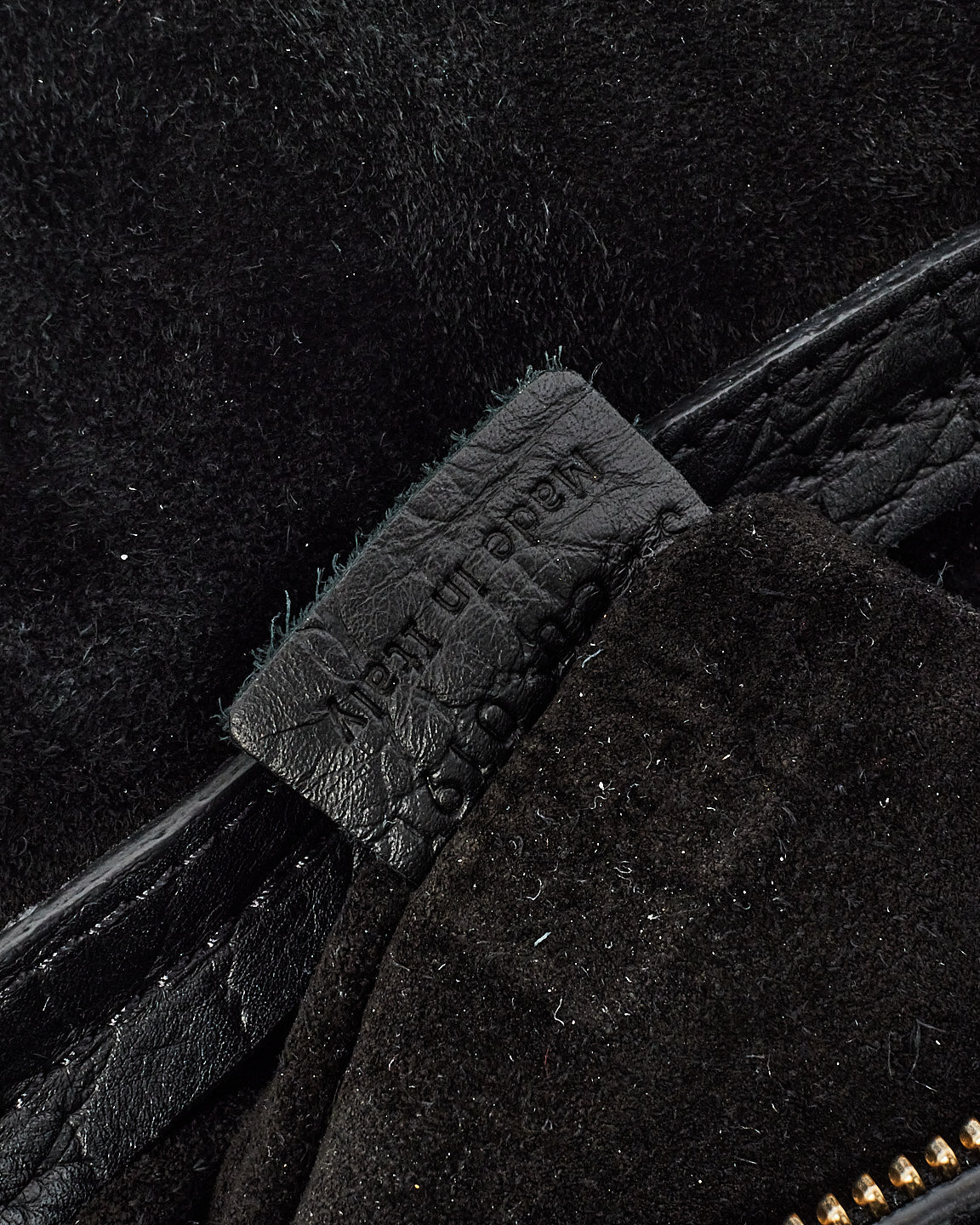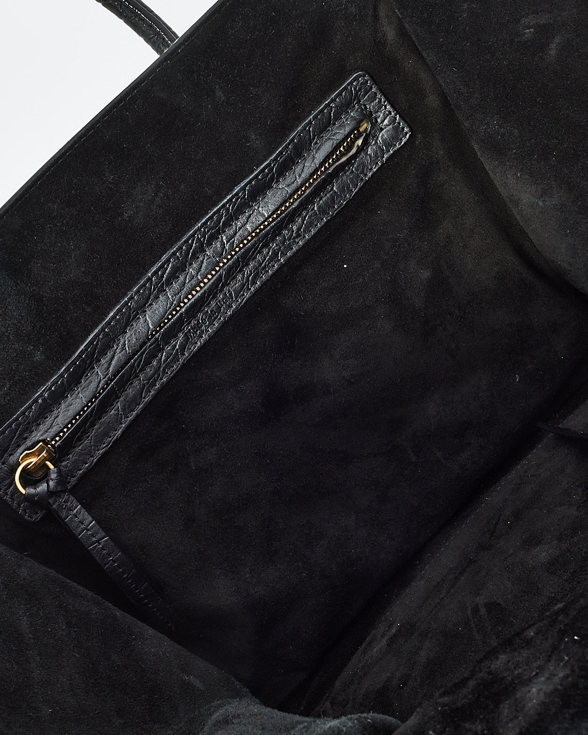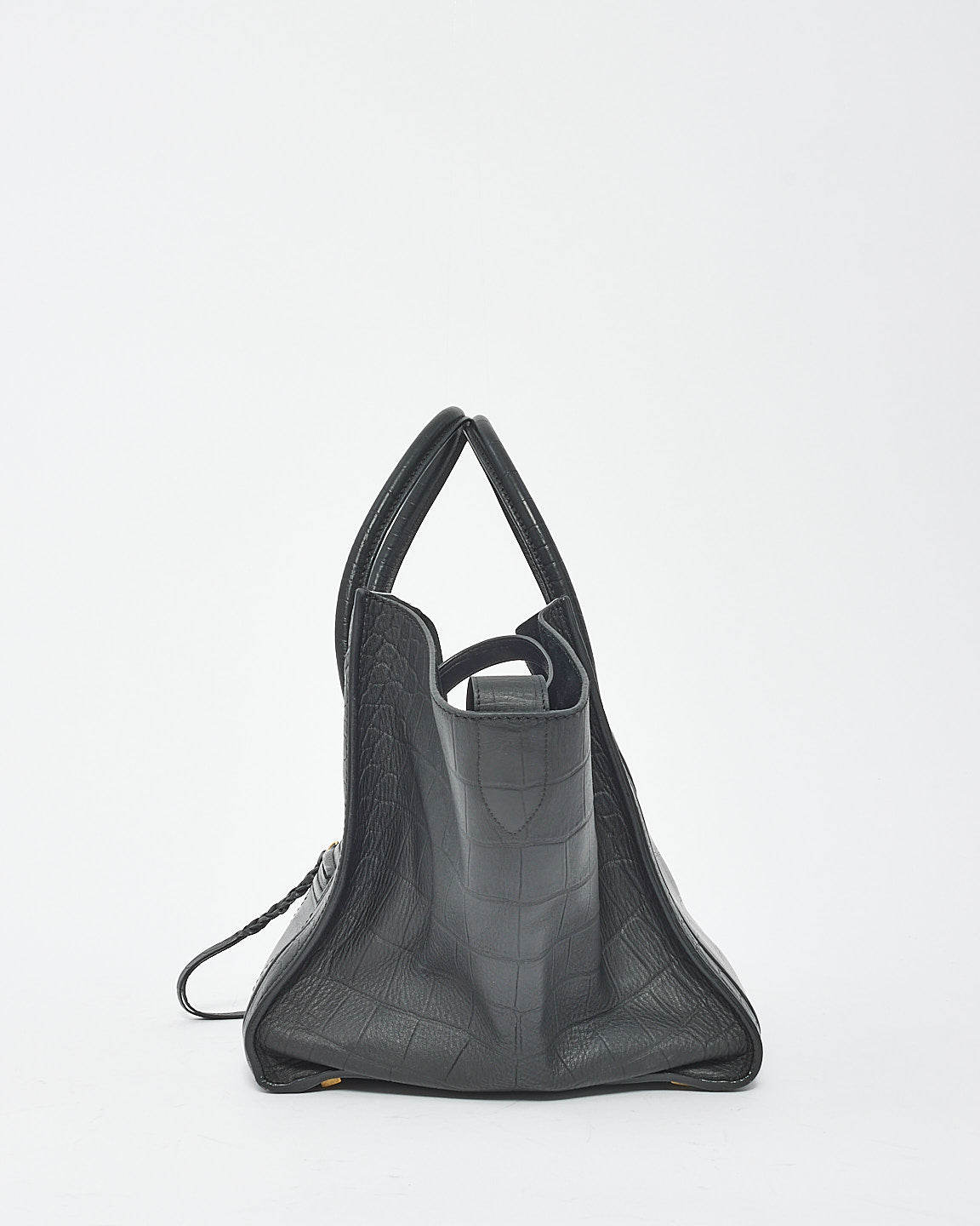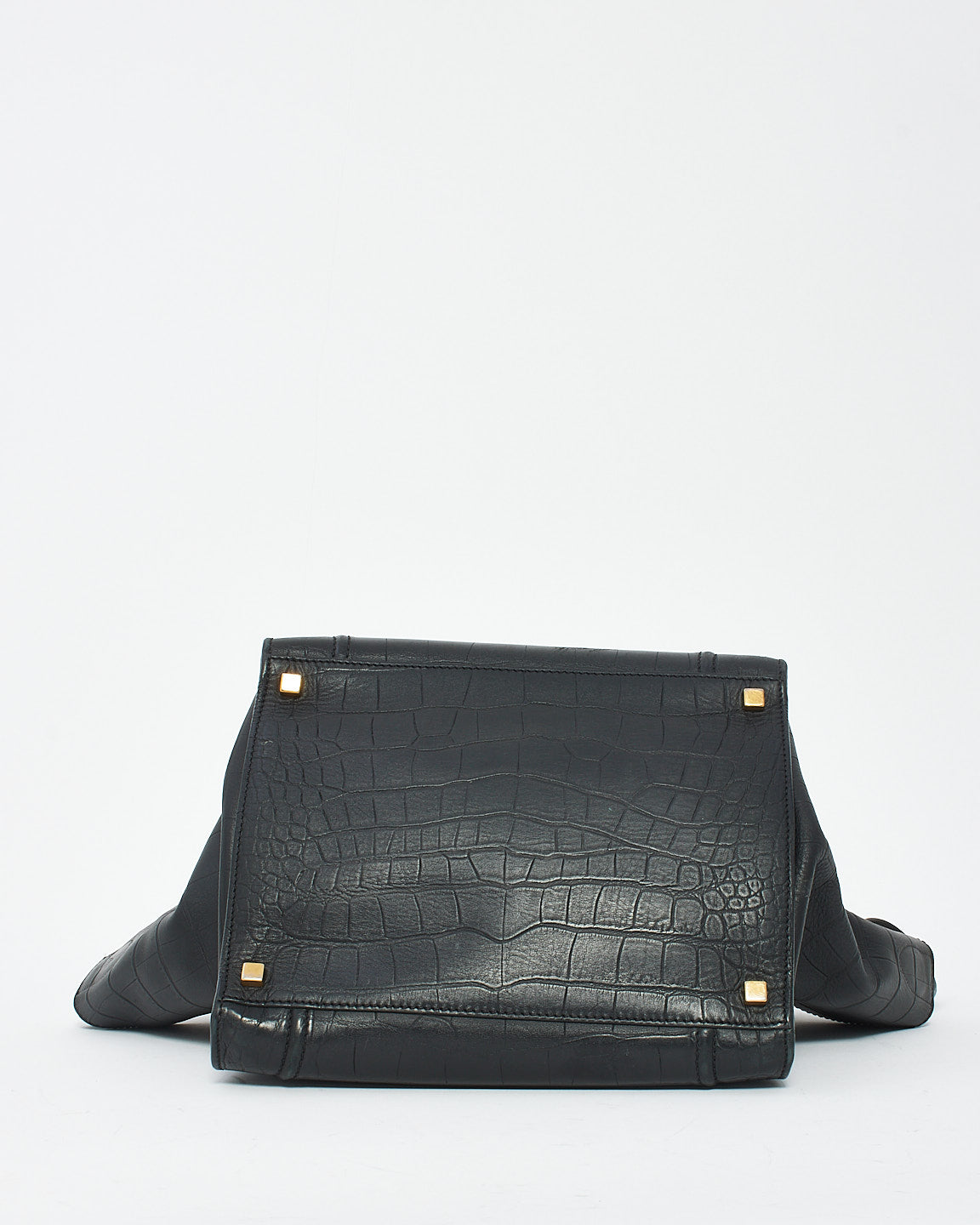 Black Croc Embossed Leather Phantom Luggage Medium Tote Bag