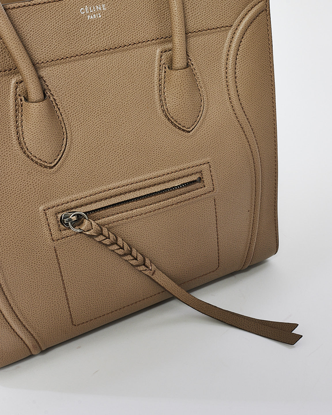 Taupe Grey Leather Medium Phantom Luggage Tote Bag