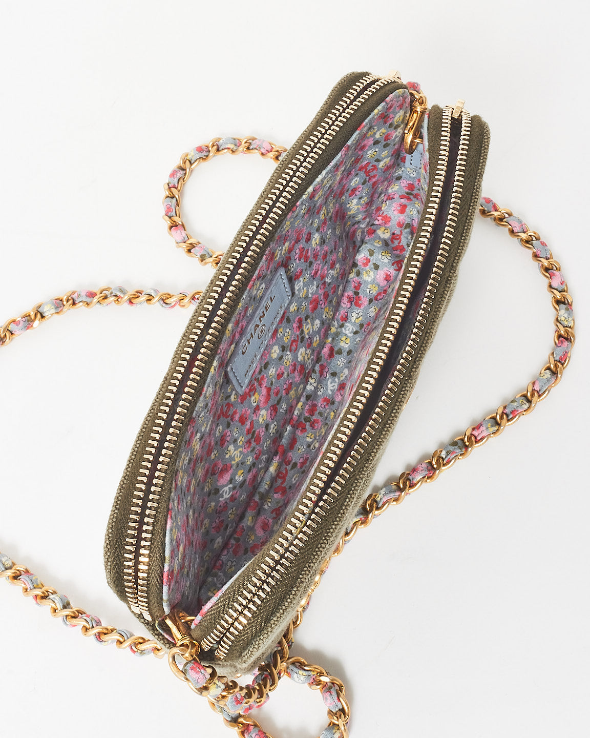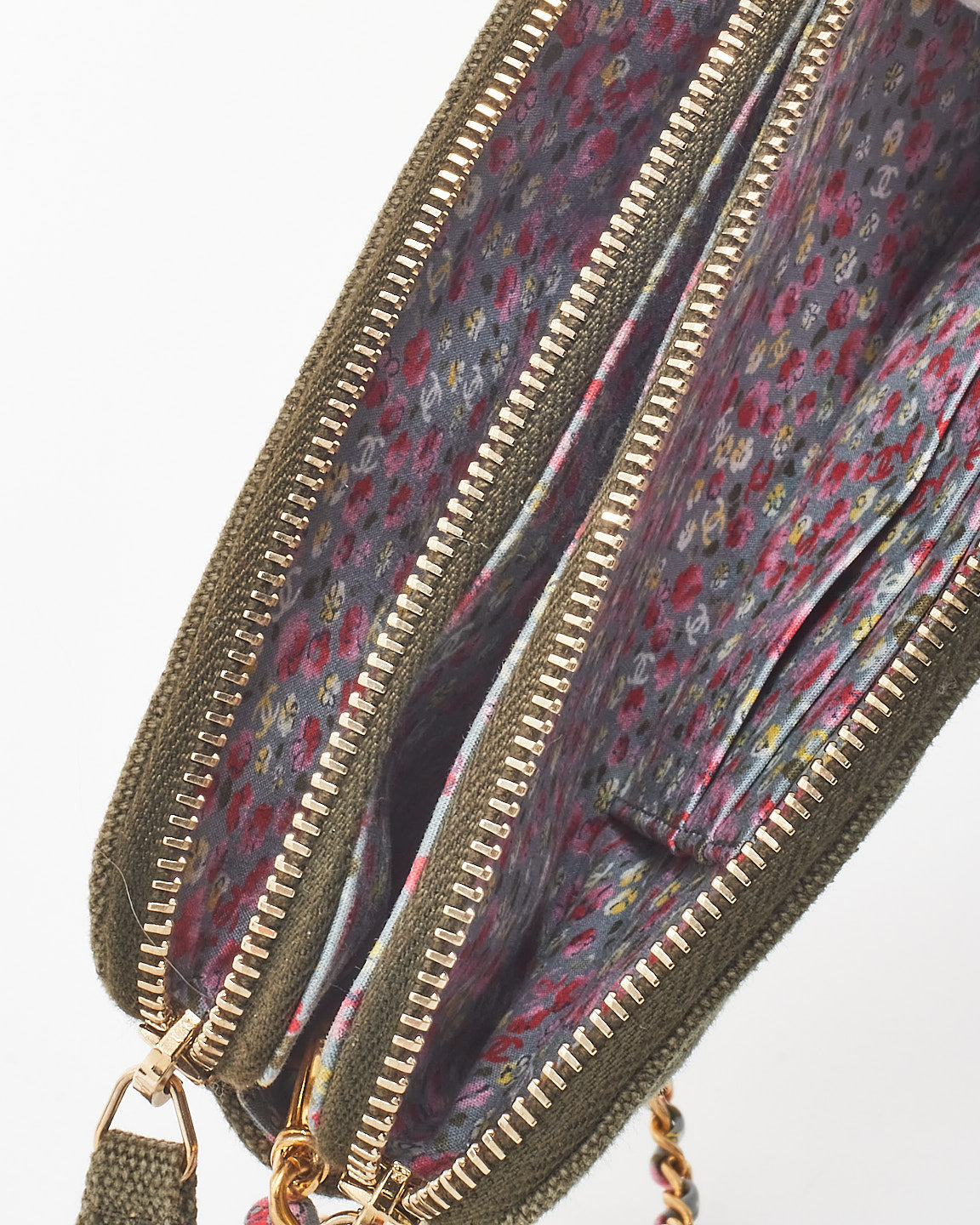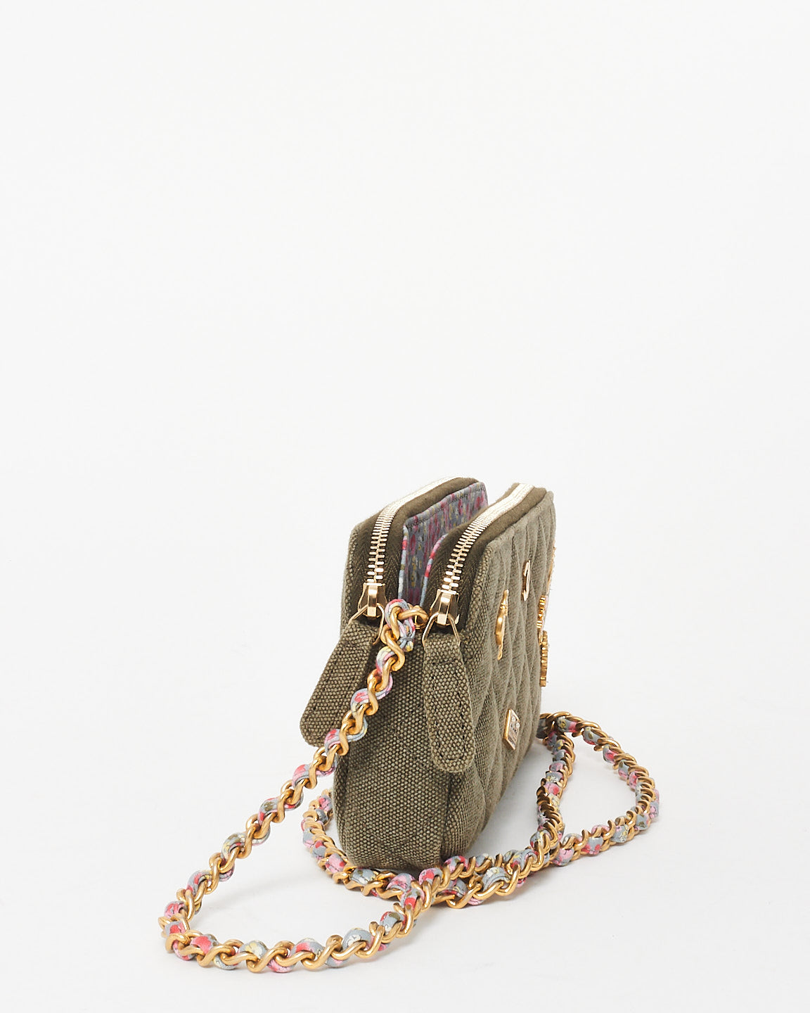 Army Green Canvas Paris-Cuba Double Zip Clutch Crossbody Chain Bag