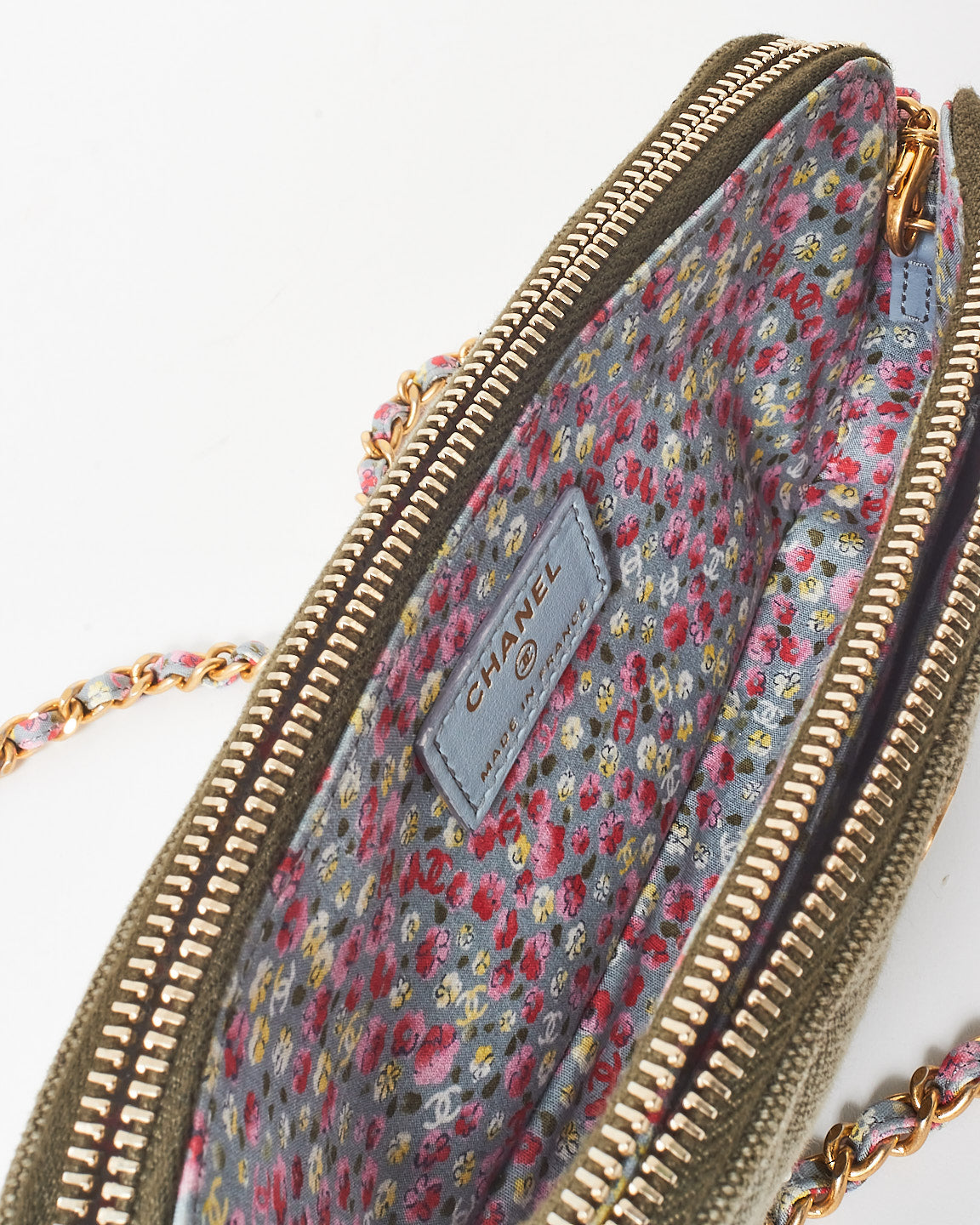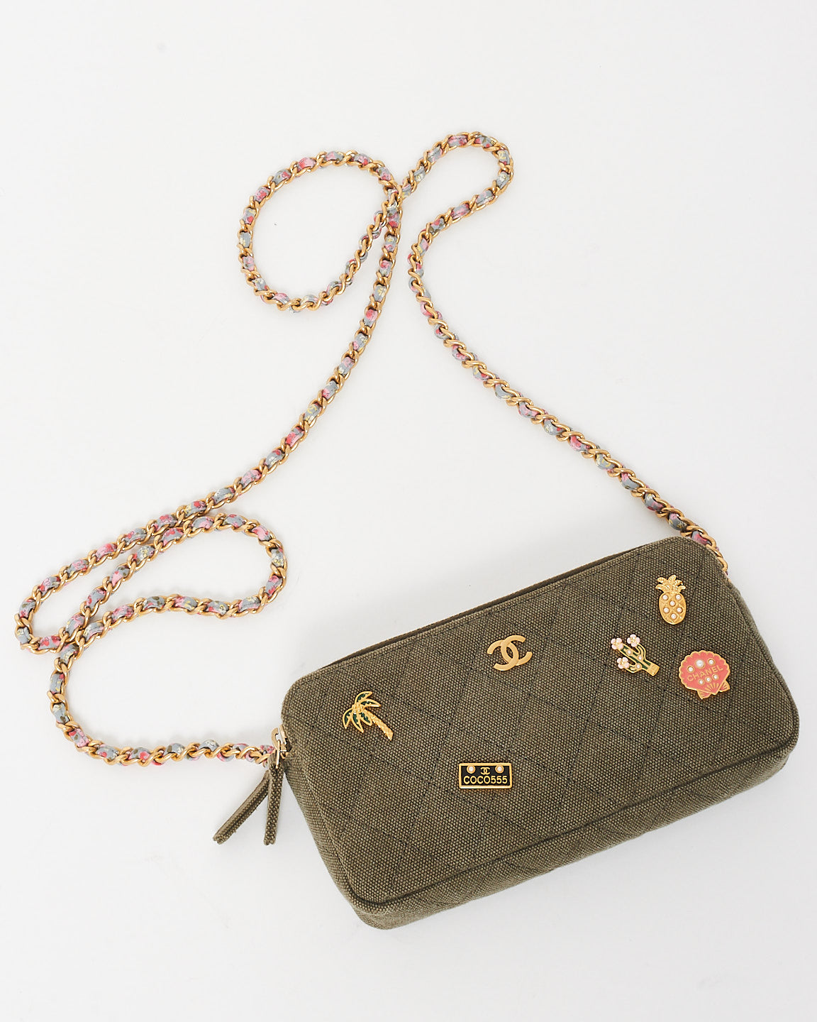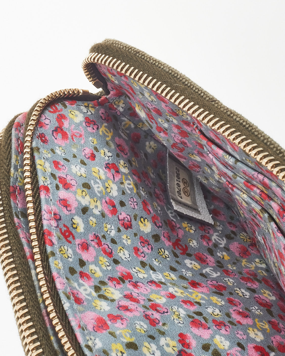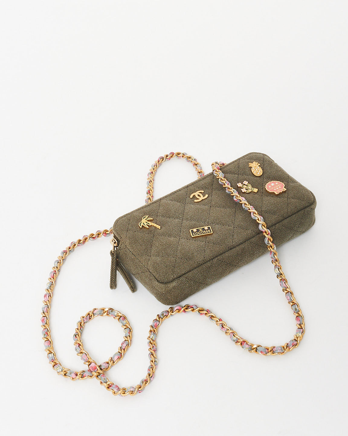 Army Green Canvas Paris-Cuba Double Zip Clutch Crossbody Chain Bag