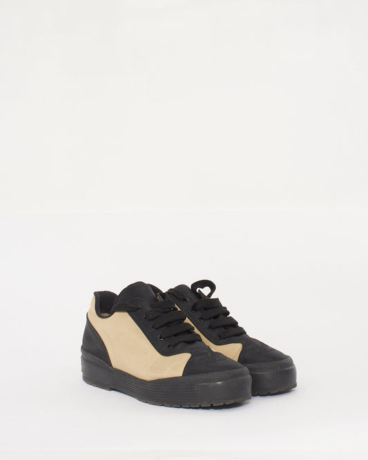 Beige and Black Nylon Low Top Sneakers With CC Logo - 37