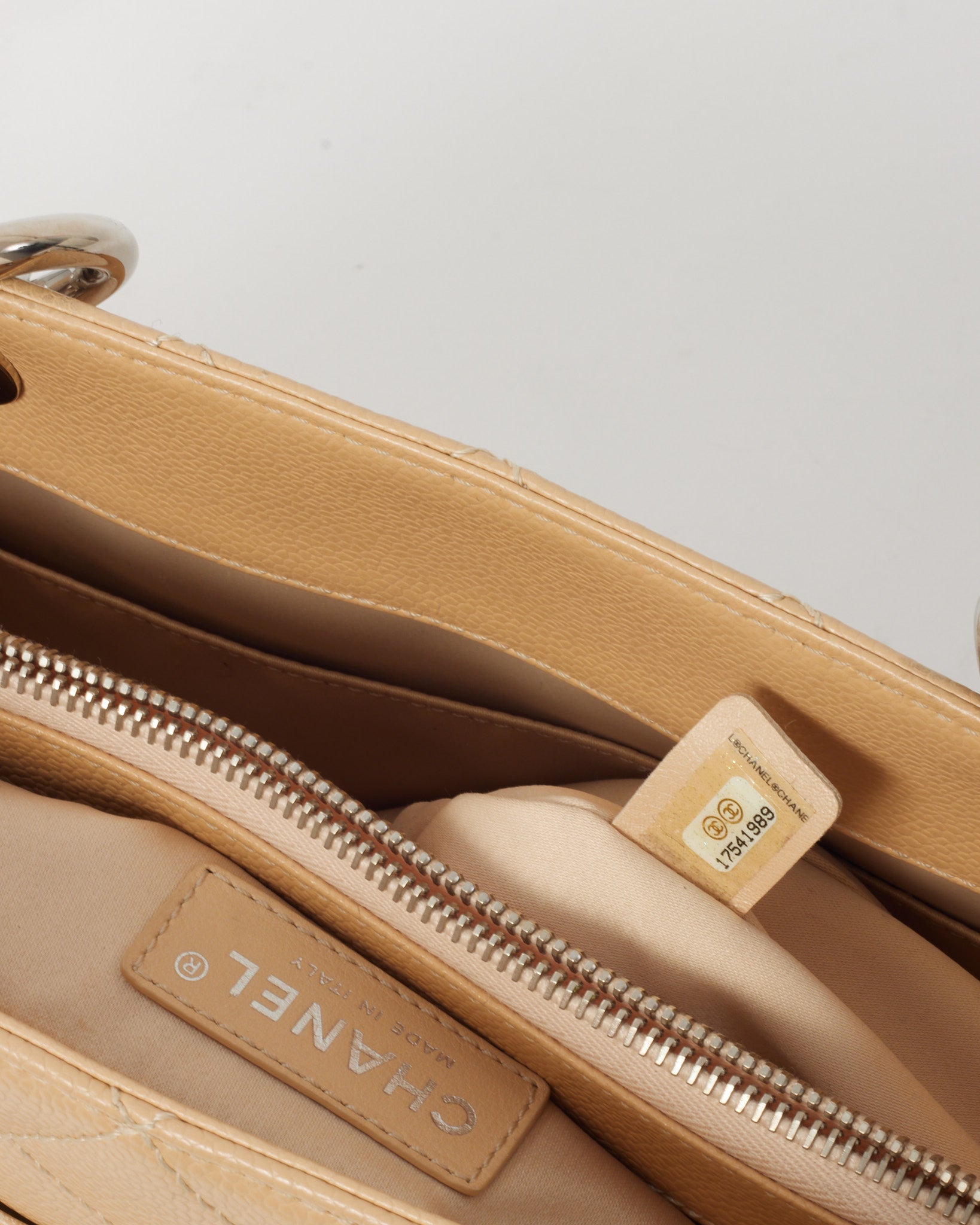 Beige Caviar Leather GST Shopper Tote Bag