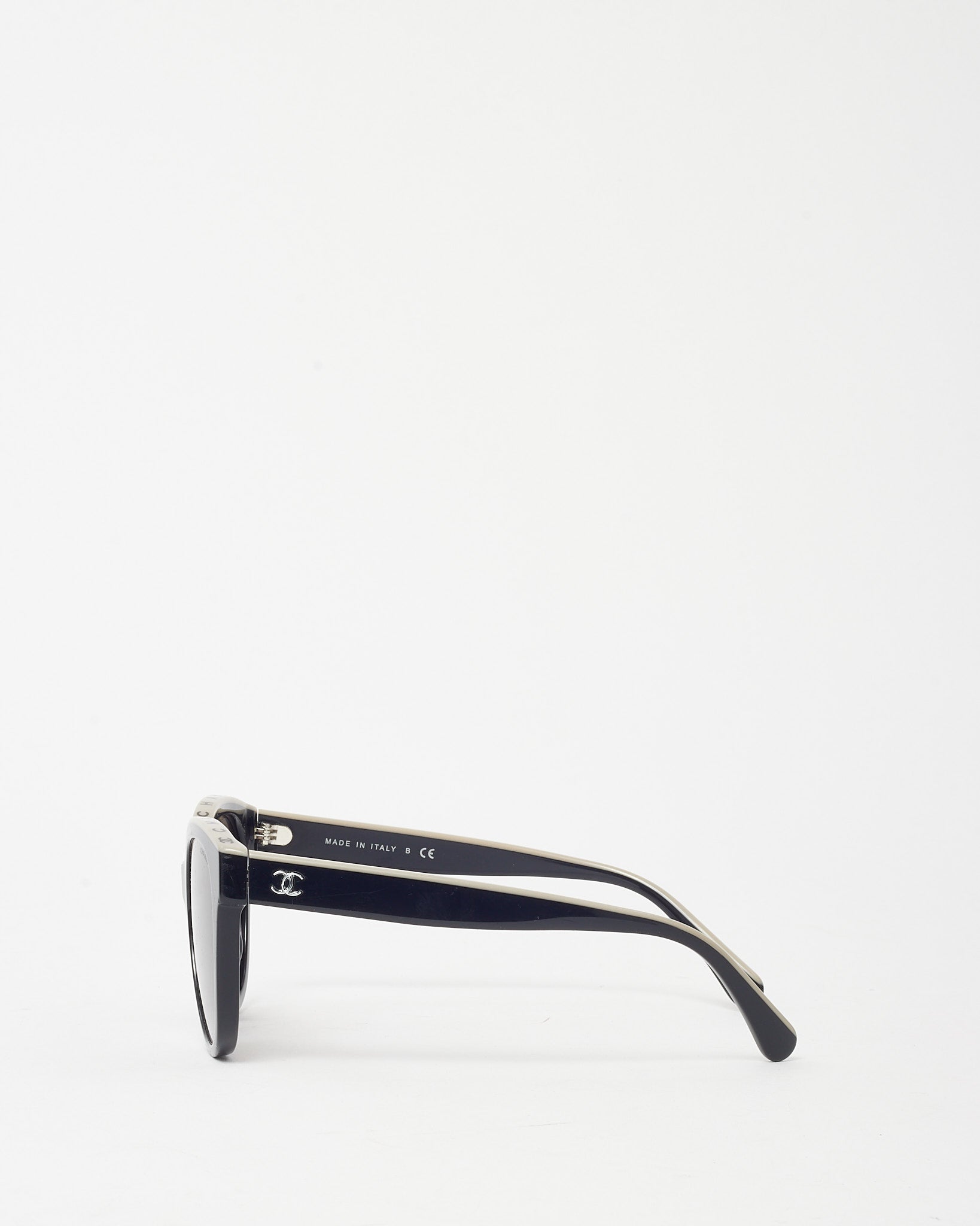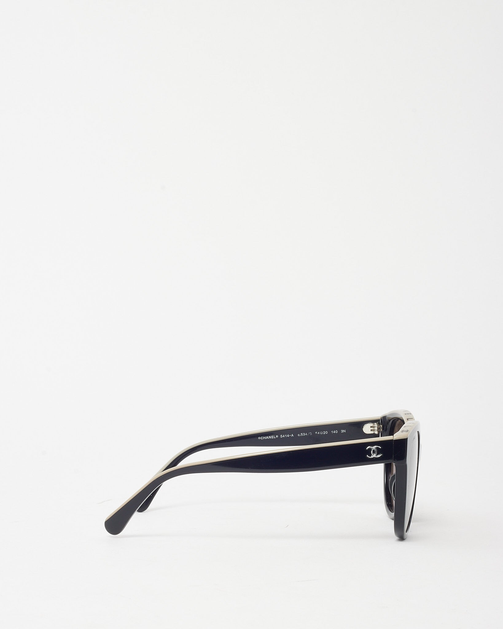 Elegant and timeless, these pre-loved authentic Chanel Black Acetate and Beige Upper Frame Logo 5414/A Cat Eye Sunglasses exude classic sophistication. Crafted from glossy black acetate with beige detailing along the upper frame, they feature the signature Chanel logo at the temples and sleek cat-eye lenses that flatter the face. Designed to combine luxury with everyday wearability, these sunglasses offer full UV protection and effortless Parisian chic.