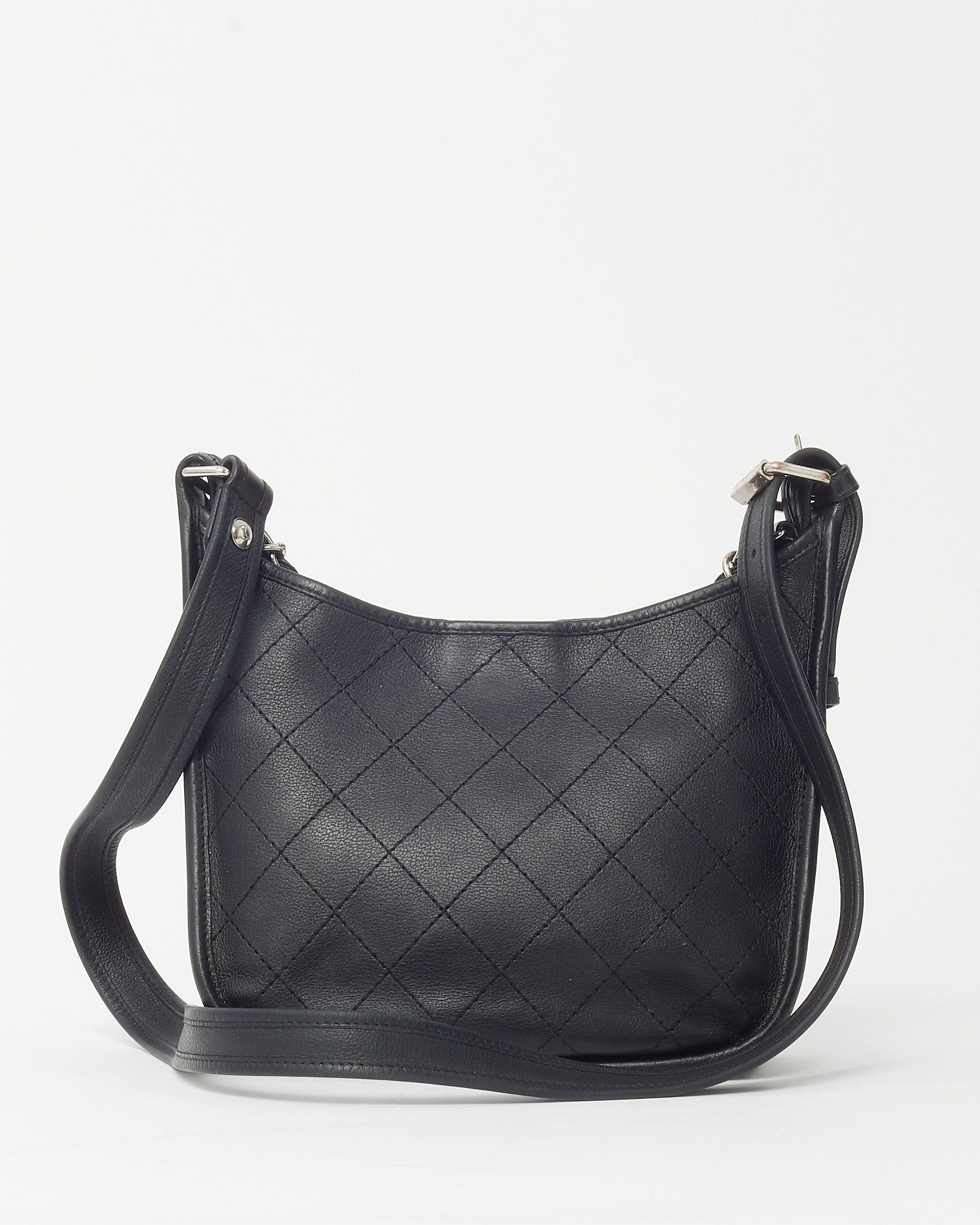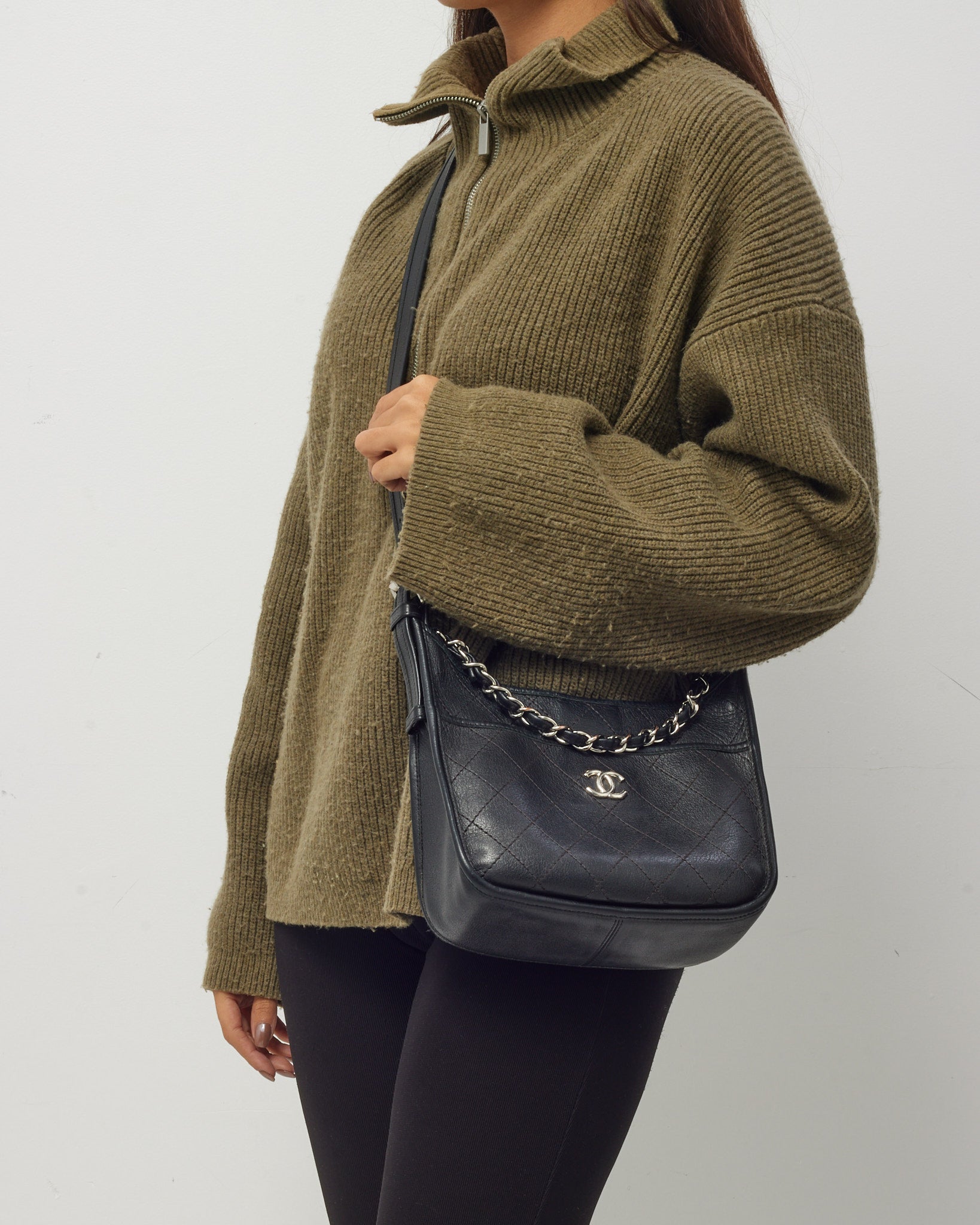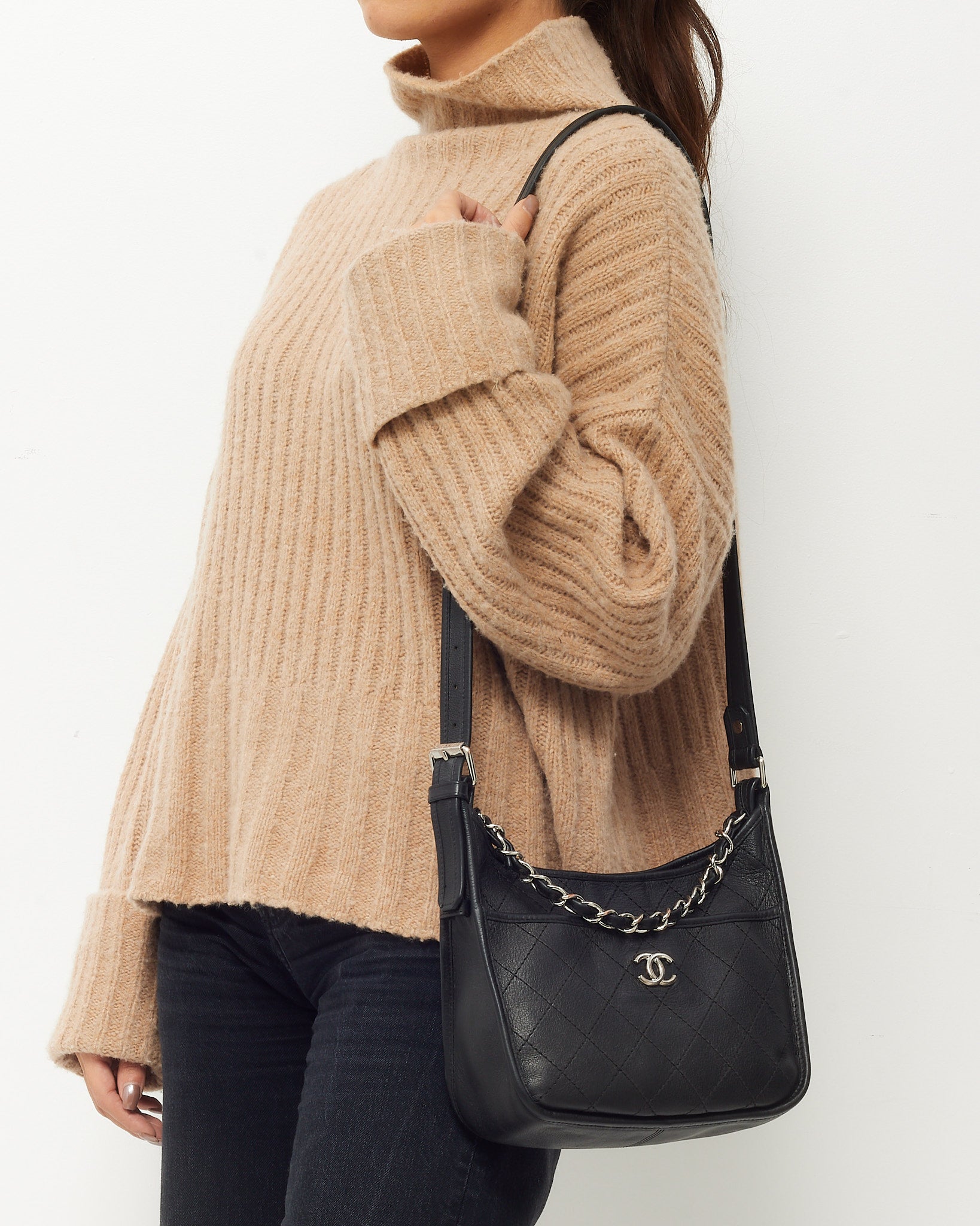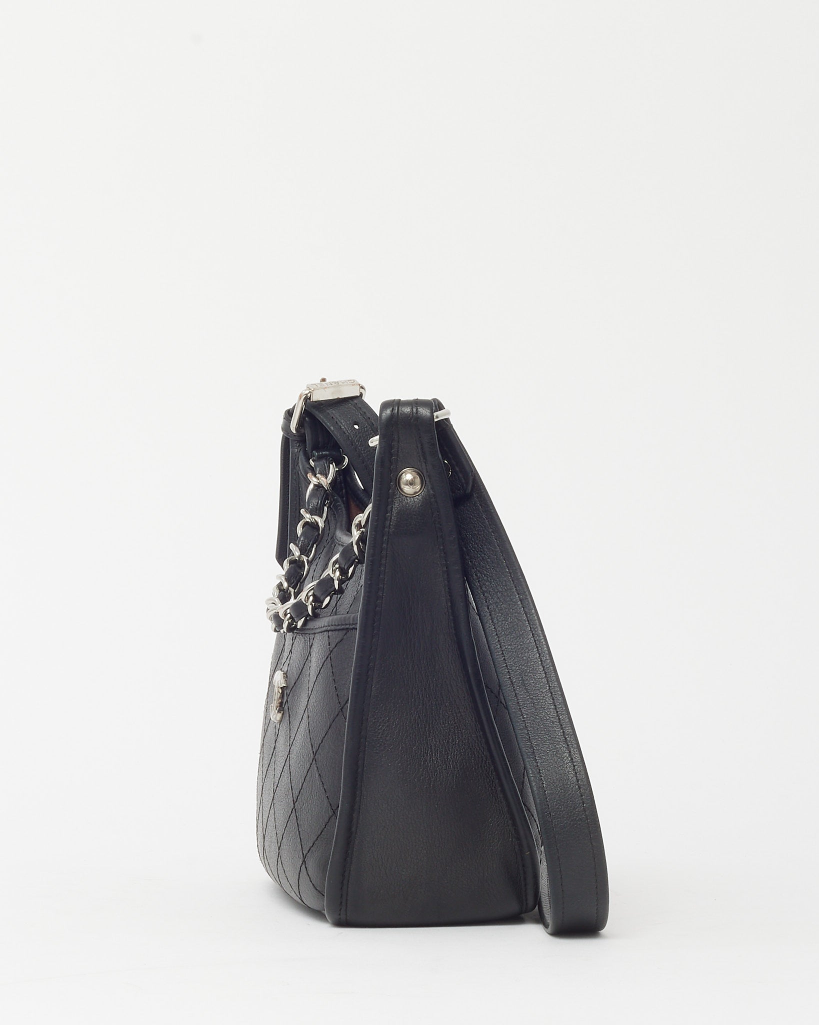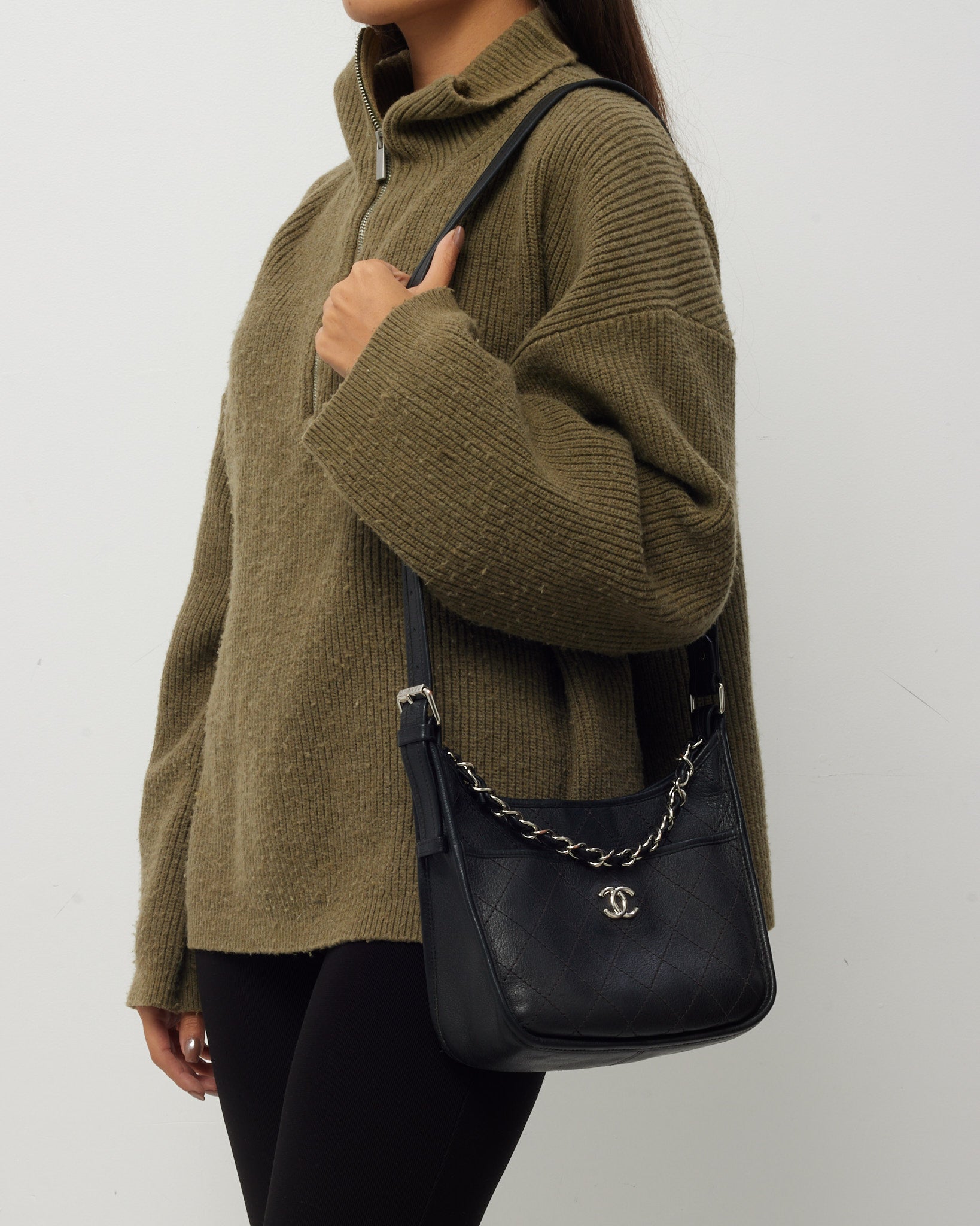 Black Calfskin Quilted Leather Small Jungle Stroll Hobo Chain Shoulder Bag SHW