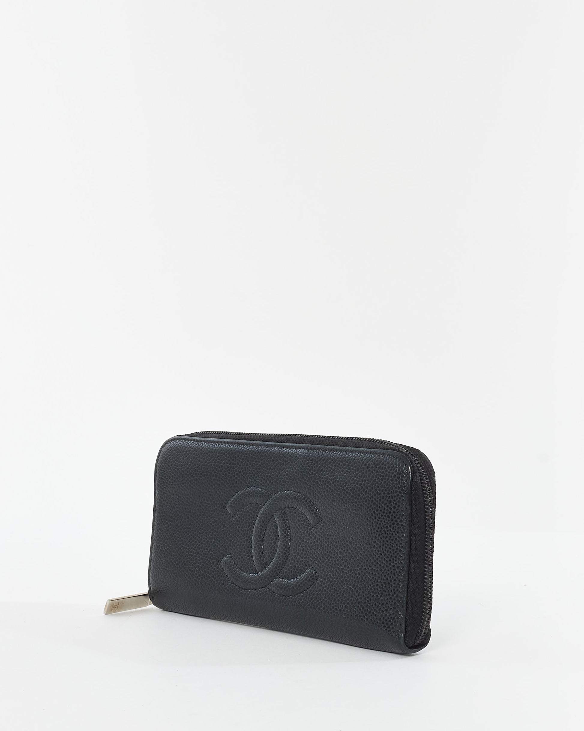 Explore Chanel's exquisite collection of accessories, featuring this certified pre-owned Black Caviar Leather Embossed Logo Long Zip Wallet. Embodying timeless elegance and modern sustainability, each piece, including favorites like this, is authenticated by Retyche. Discover sustainable luxury — shop our current treasures or find inspiration for your next coveted find.