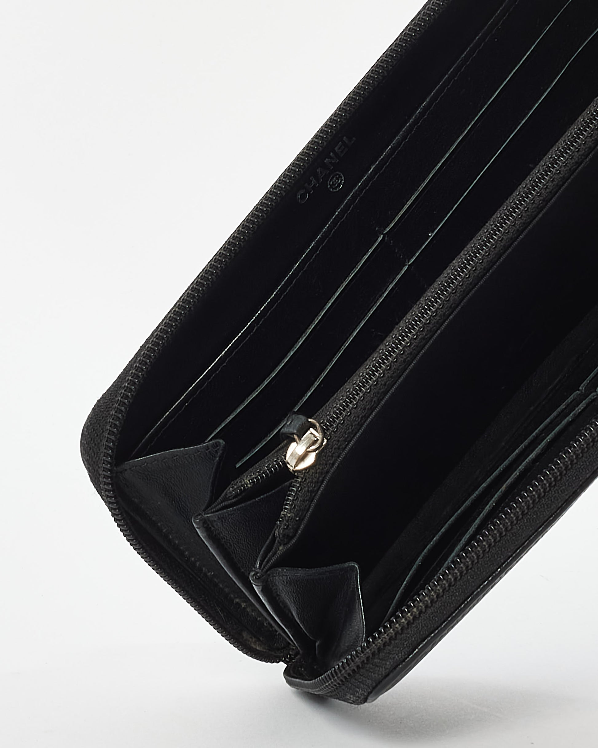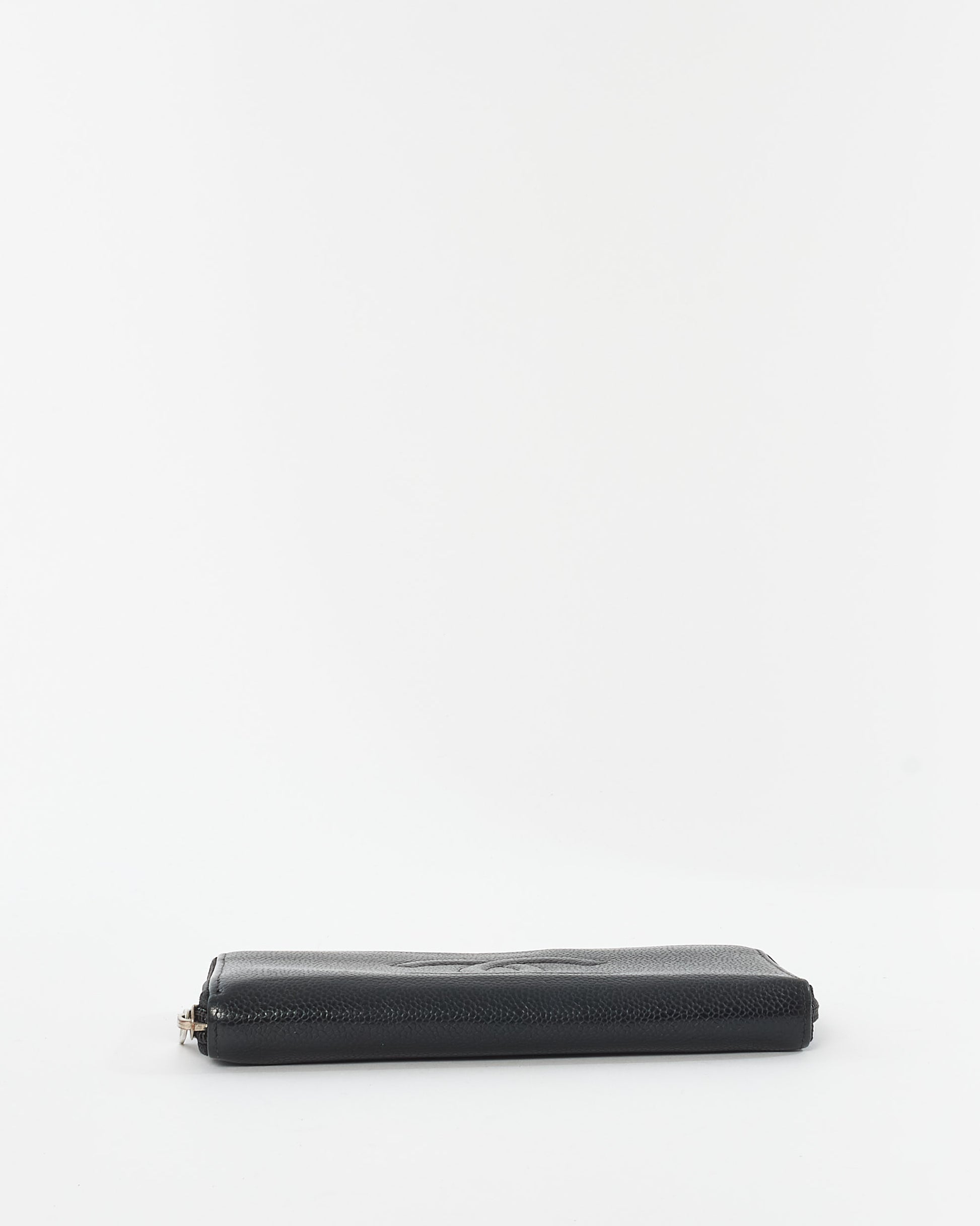 Black Caviar Leather Embossed Logo Long Zip Wallet