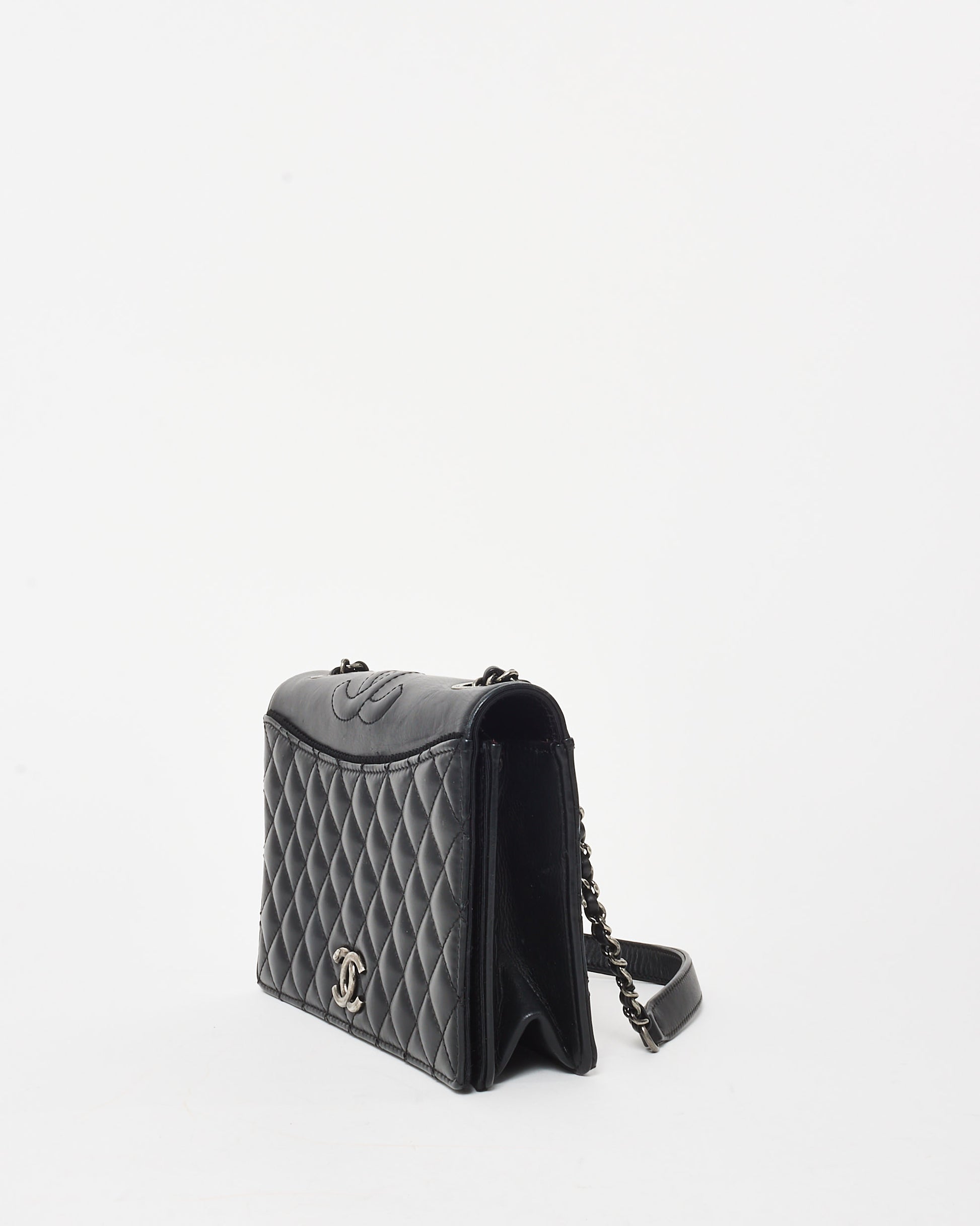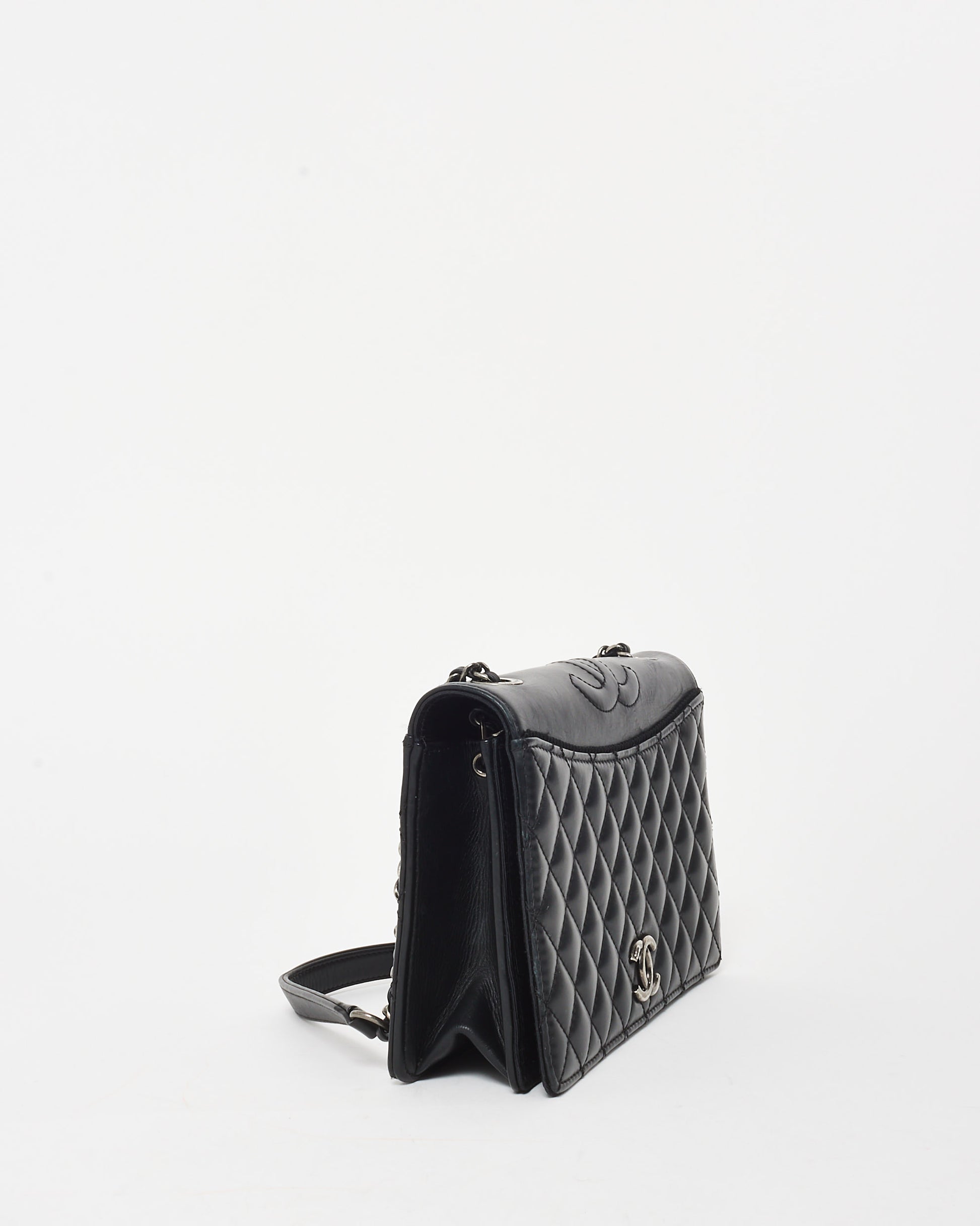 Graceful and timeless, the authentic pre-owned Chanel Black Lambskin Ballerina Flap Crossbody Bag combines classic elegance with a playful touch. Crafted from luxurious black lambskin leather, this bag features a soft, rounded top silhouette inspired by the delicate charm of ballerina flats.