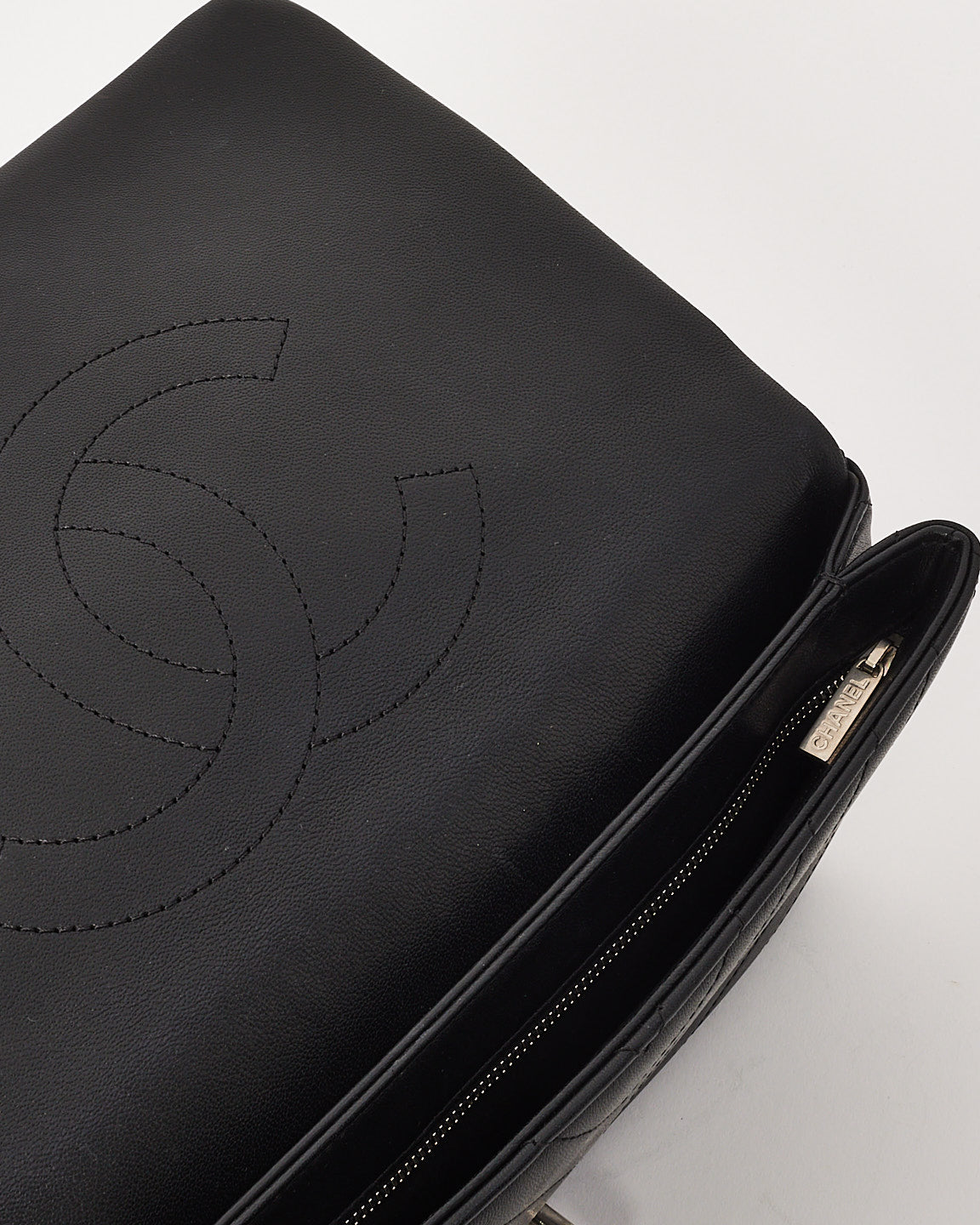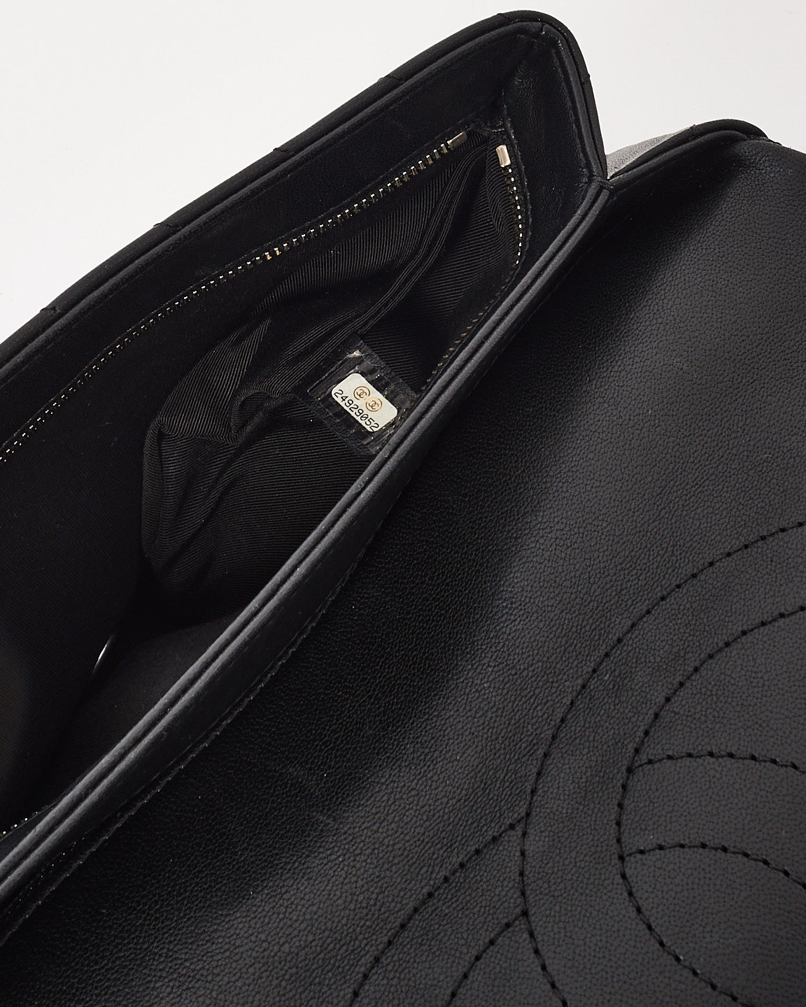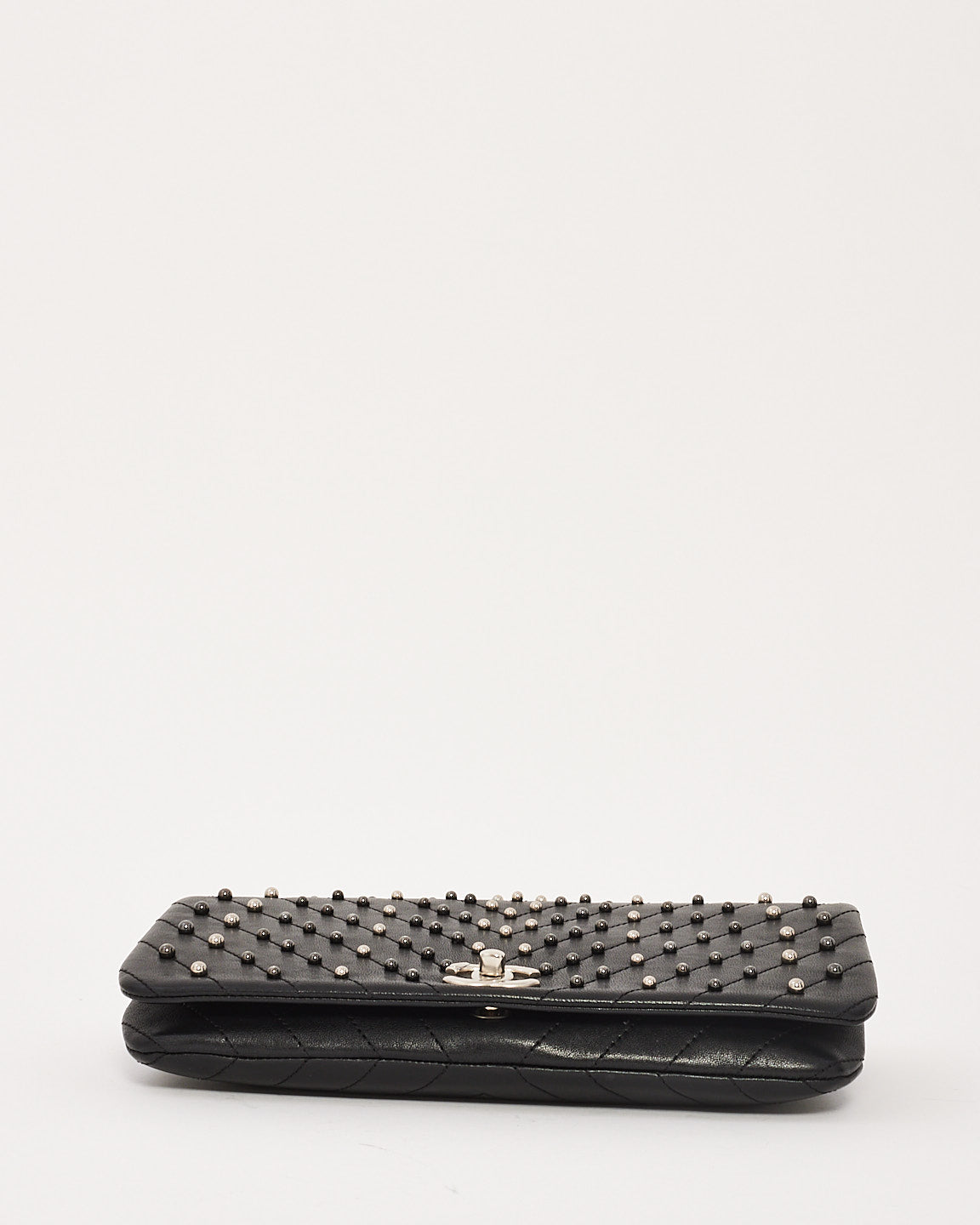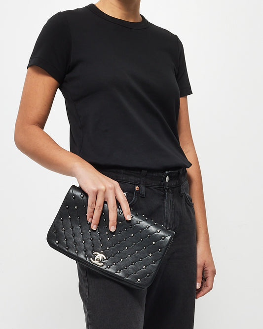 Black Lambskin Studded Leather Chevron Wars Flap Clutch
