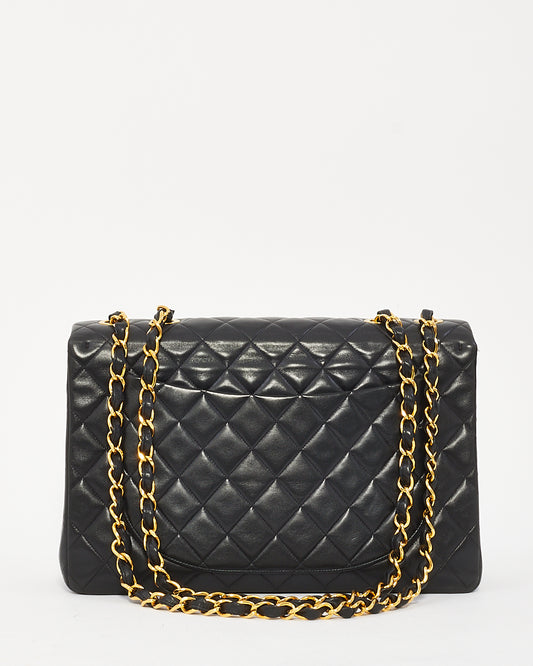 Black Leather Classic Jumbo XL Maxi Flap Bag with GHW