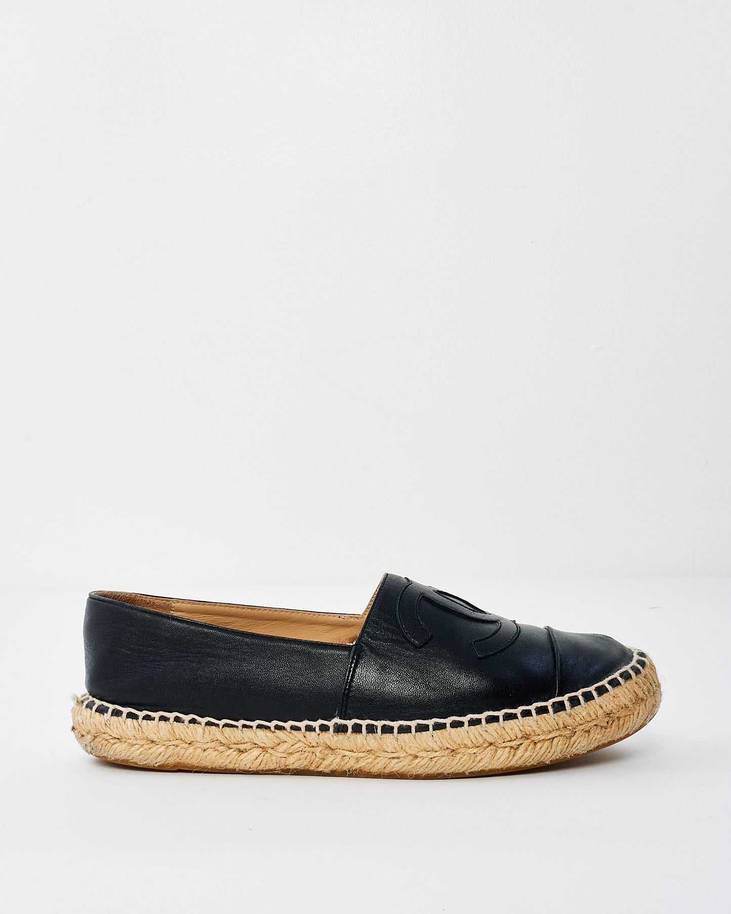 Explore Chanel's exquisite collection of shoes, featuring this certified pre-owned Black Leather Espadrilles - 38. Embodying timeless elegance and modern sustainability, each piece, including favorites like this, is authenticated by Retyche. Discover sustainable luxury — shop our current treasures or find inspiration for your next coveted find.