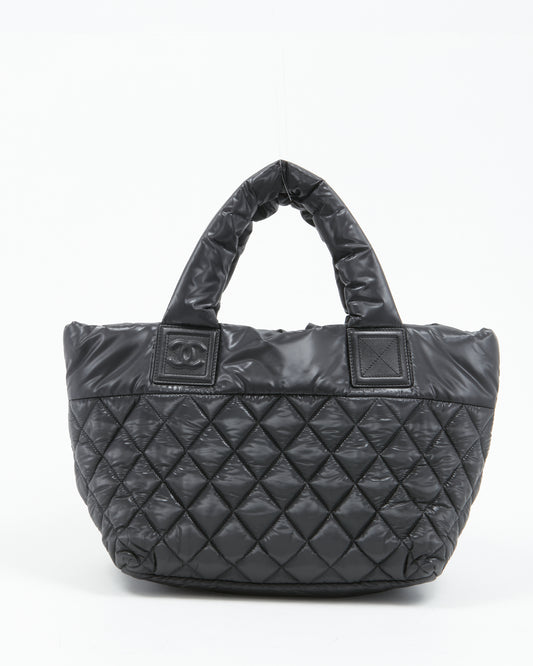 Black Nylon Quilted Coco Cocoon Reversible Small Tote