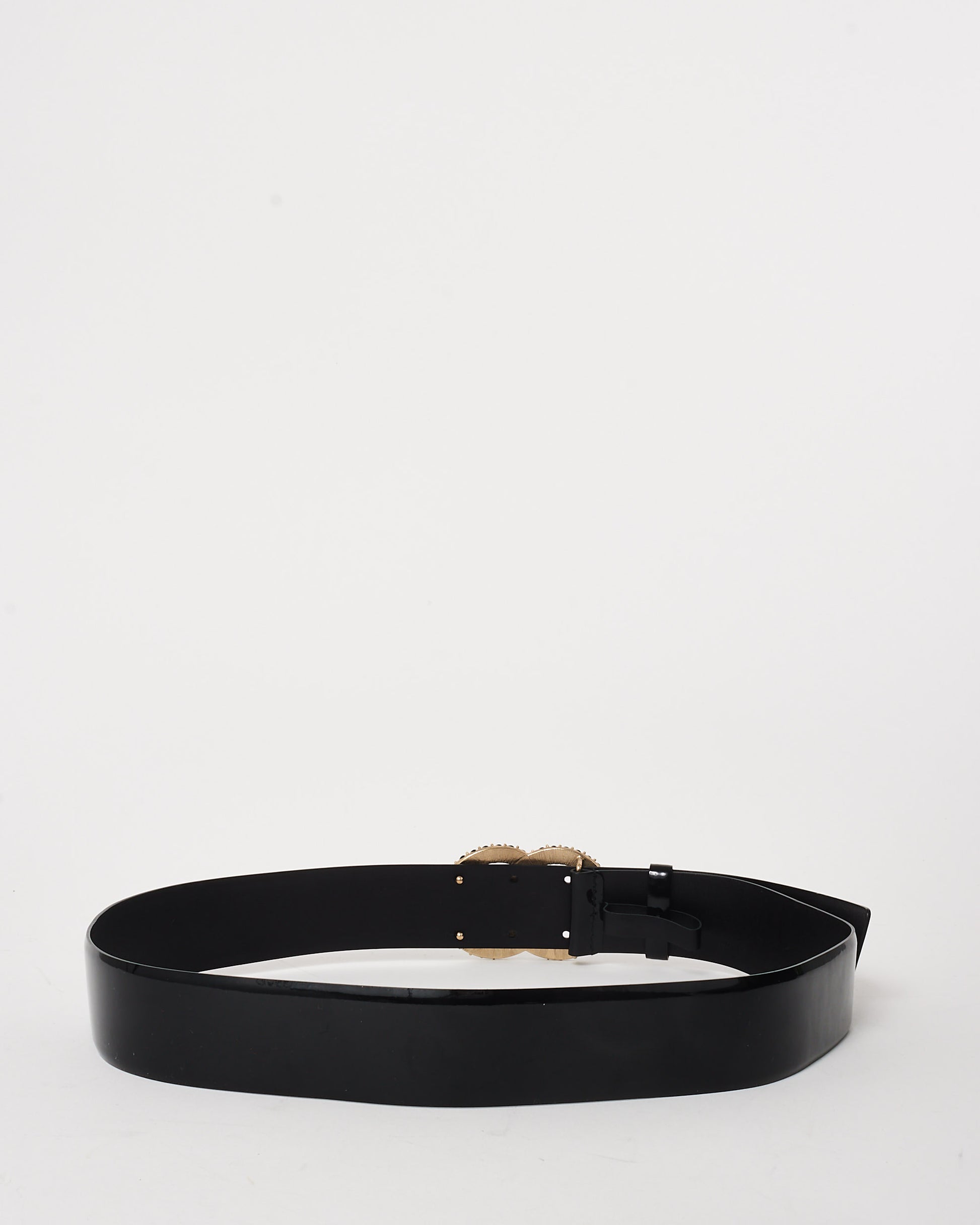 This authentic pre-owned Chanel Black Patent Leather Crystal Logo Belt is a luxurious statement accessory that combines timeless elegance with a touch of sparkle. Crafted from sleek patent leather and featuring a dazzling crystal-embellished Chanel logo buckle, this belt is perfect for adding sophistication to any ensemble. Shop pre-owned authentic Chanel belts and accessories at Retyche.