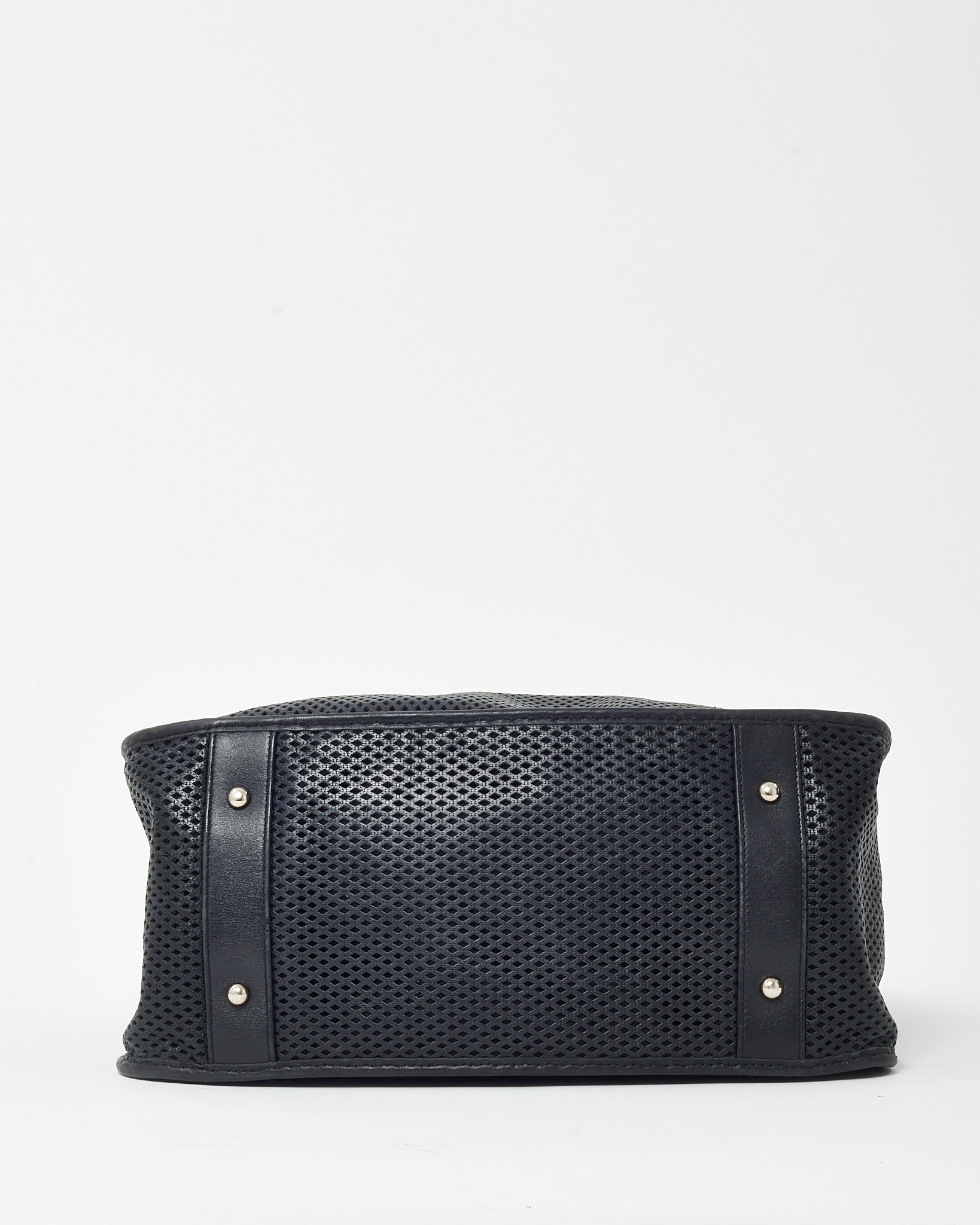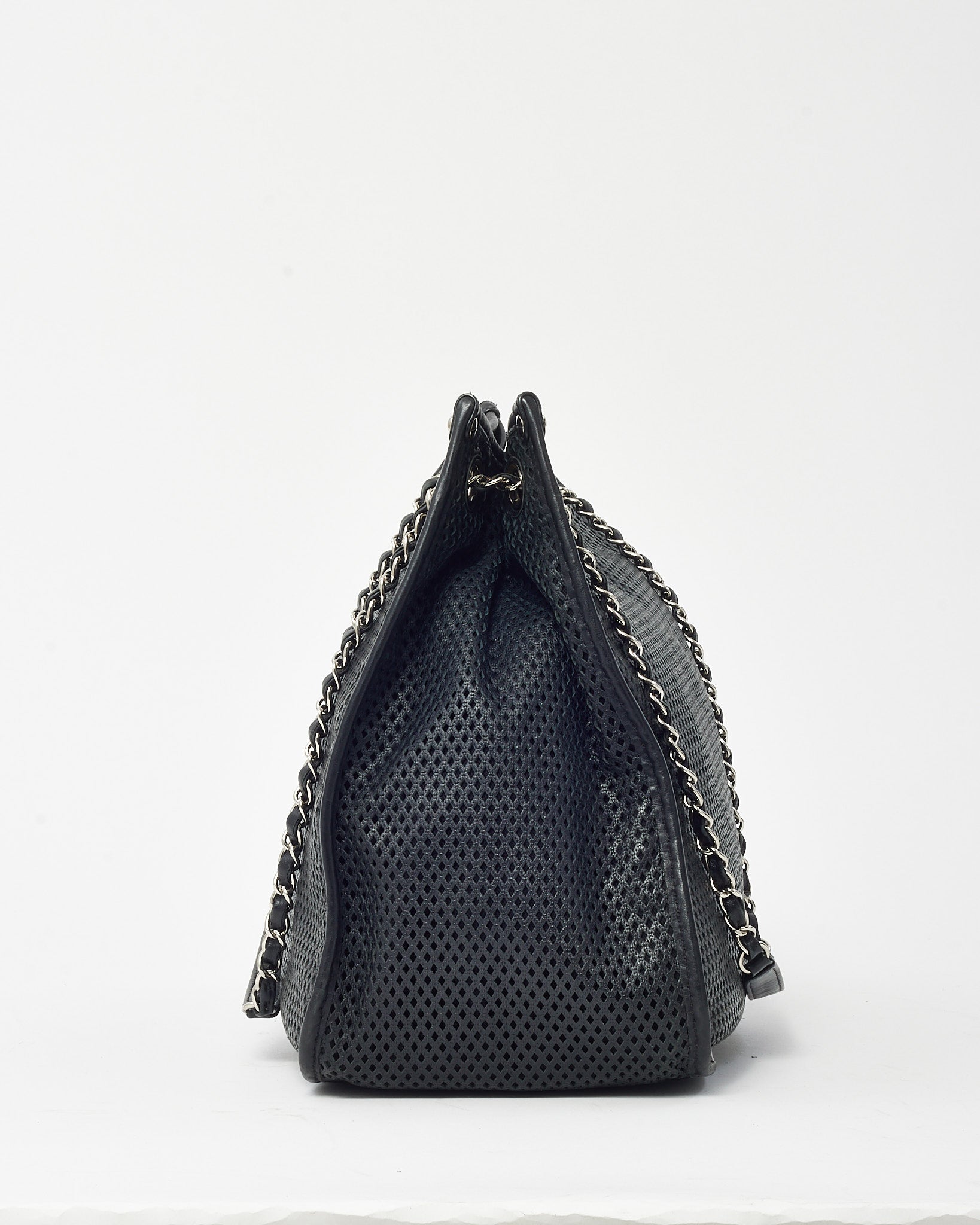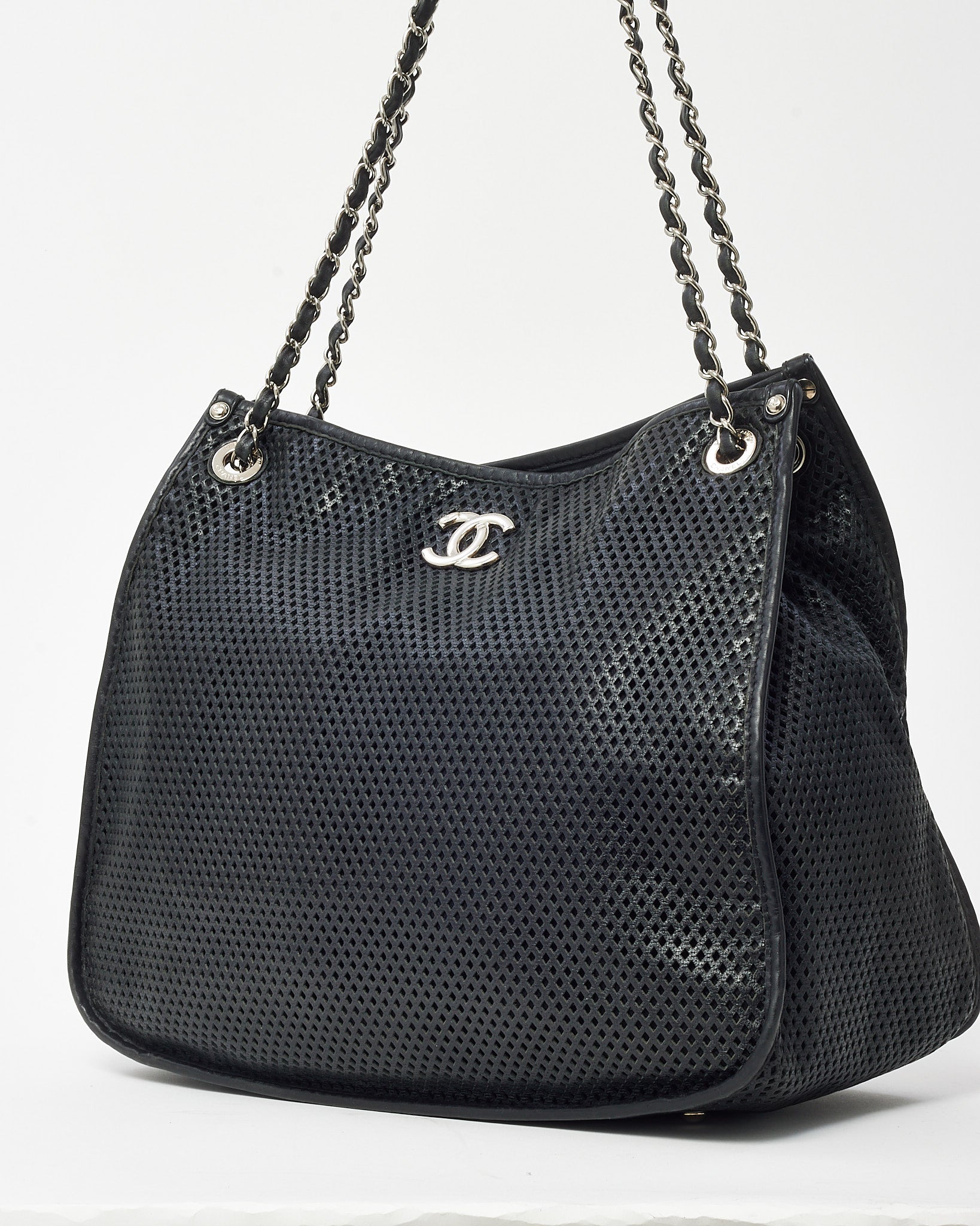 Black Perforated Leather CC Logo SHW Chain Tote Bag