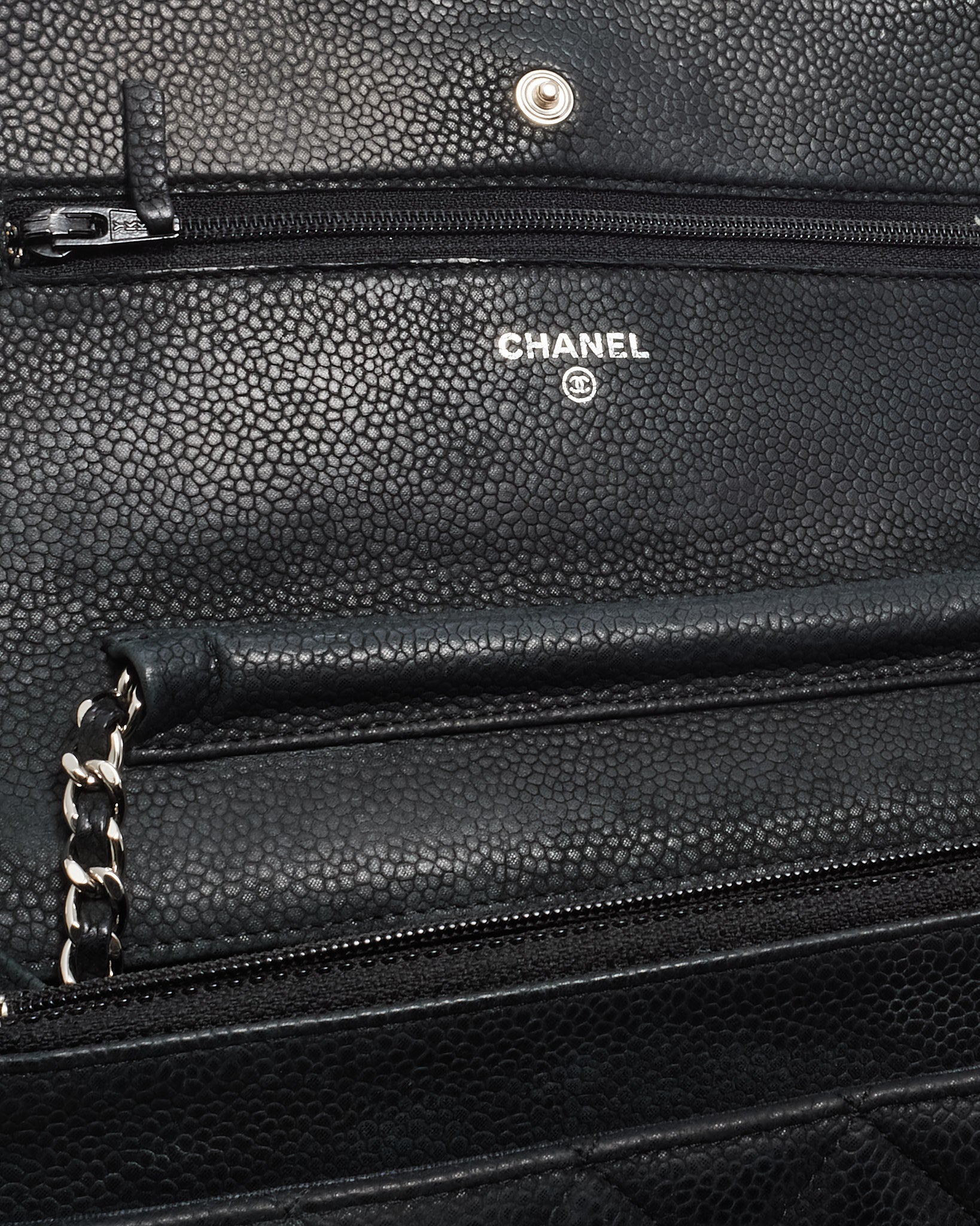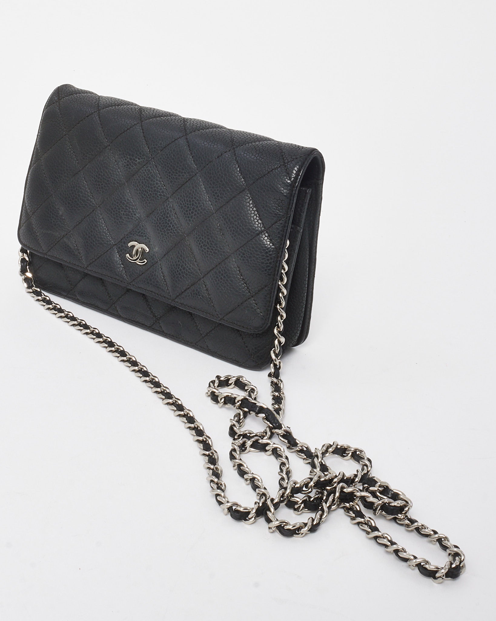 Black Quilted Caviar Leather WOC Wallet on Chain Crossbody Bag SHW