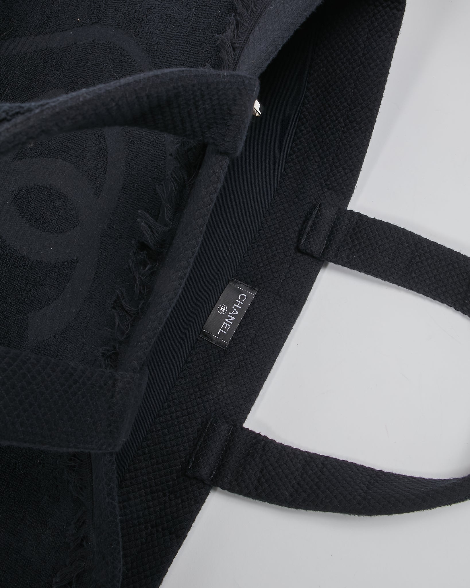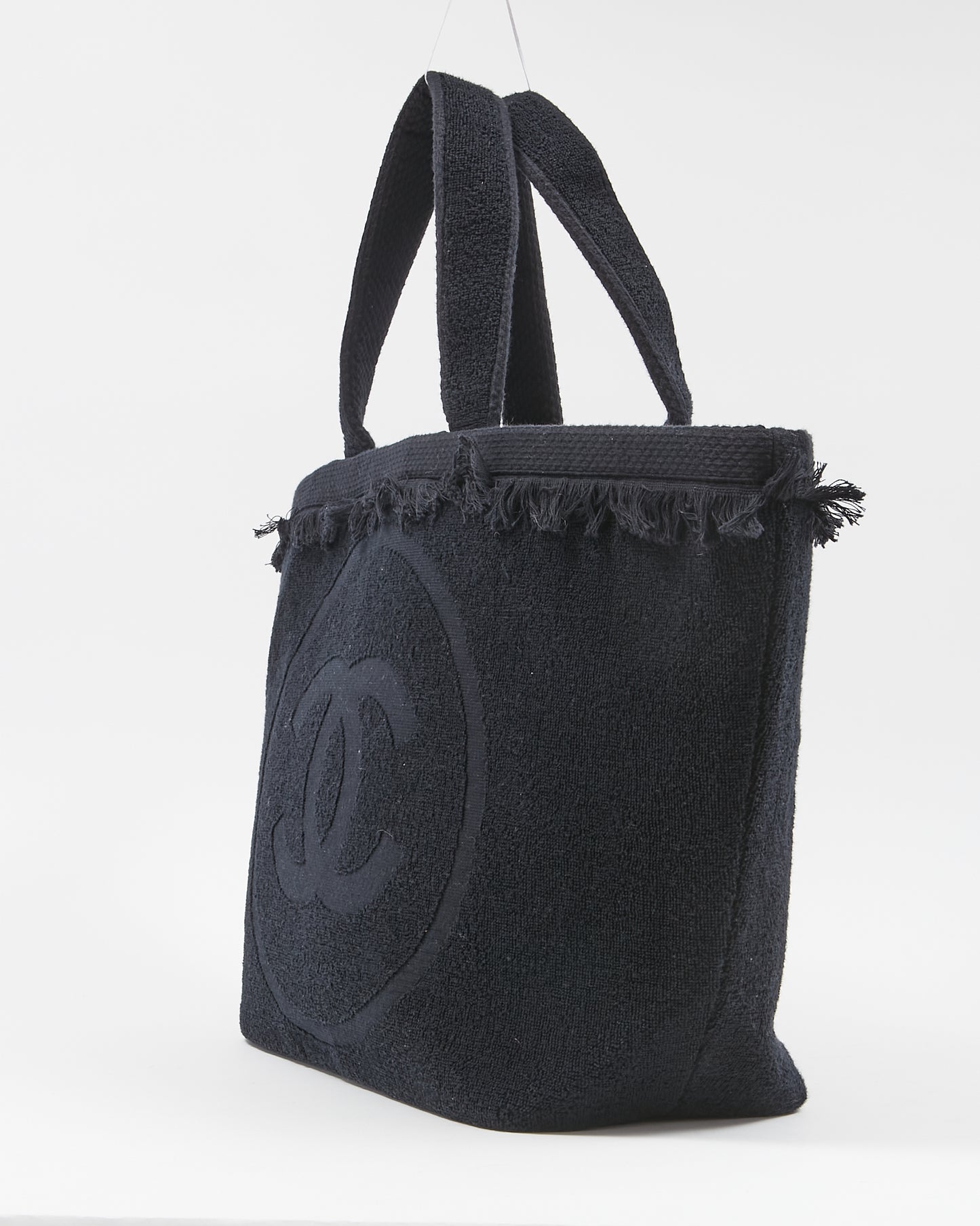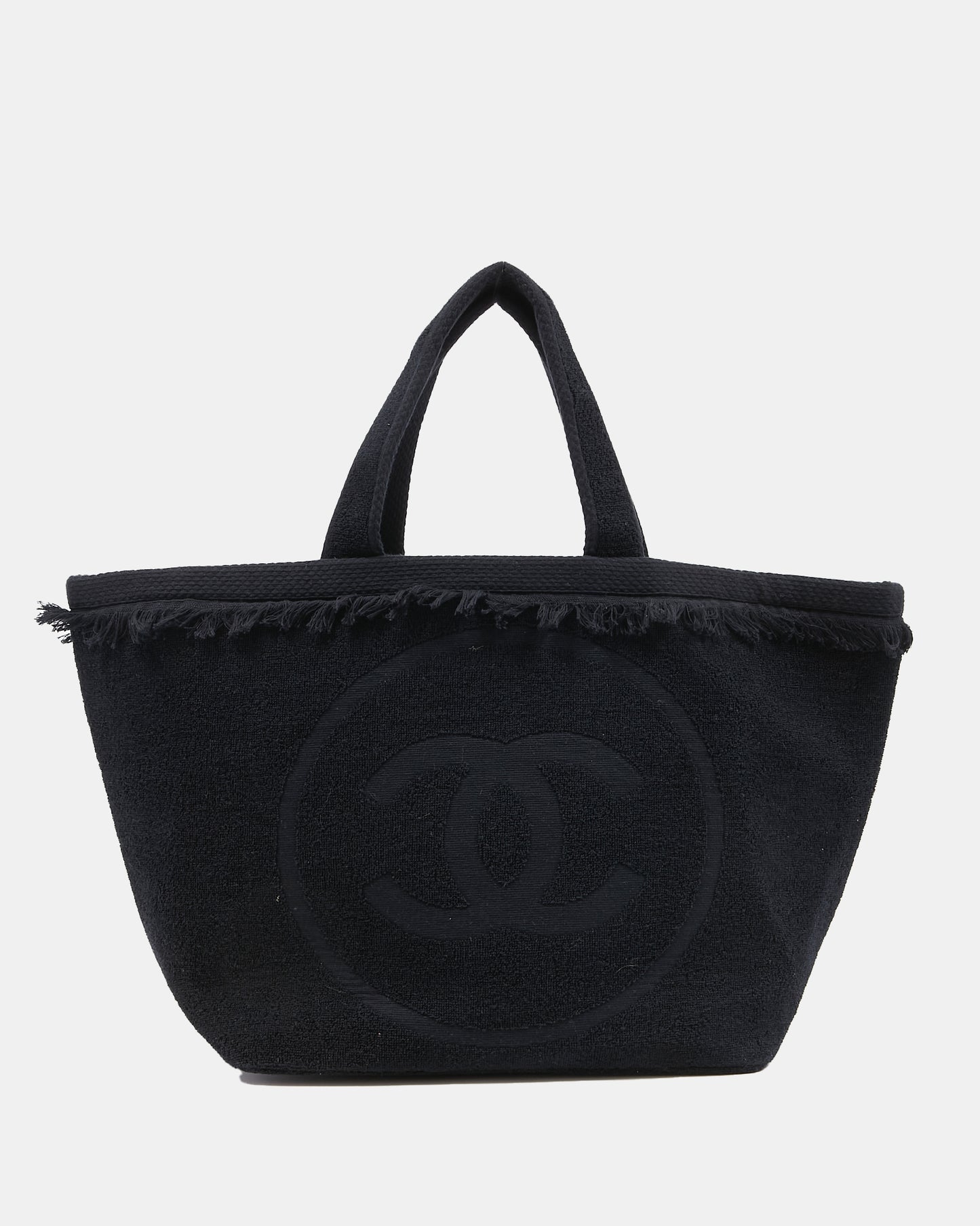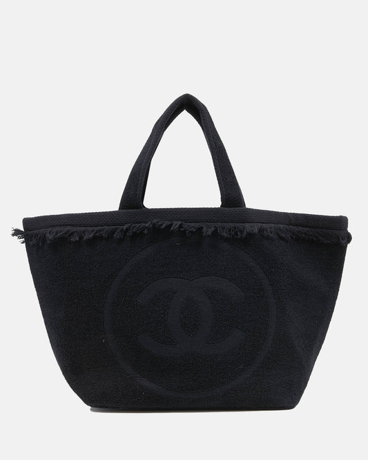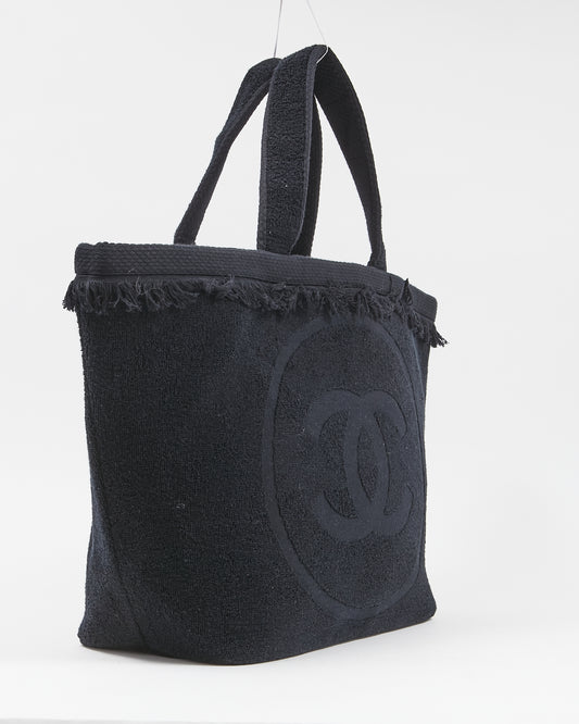 Black Terry Fringe CC Logo Beach Tote Bag