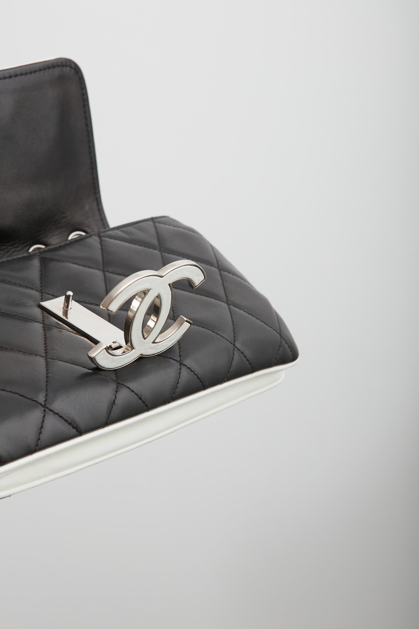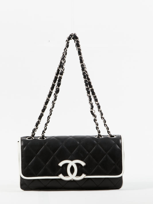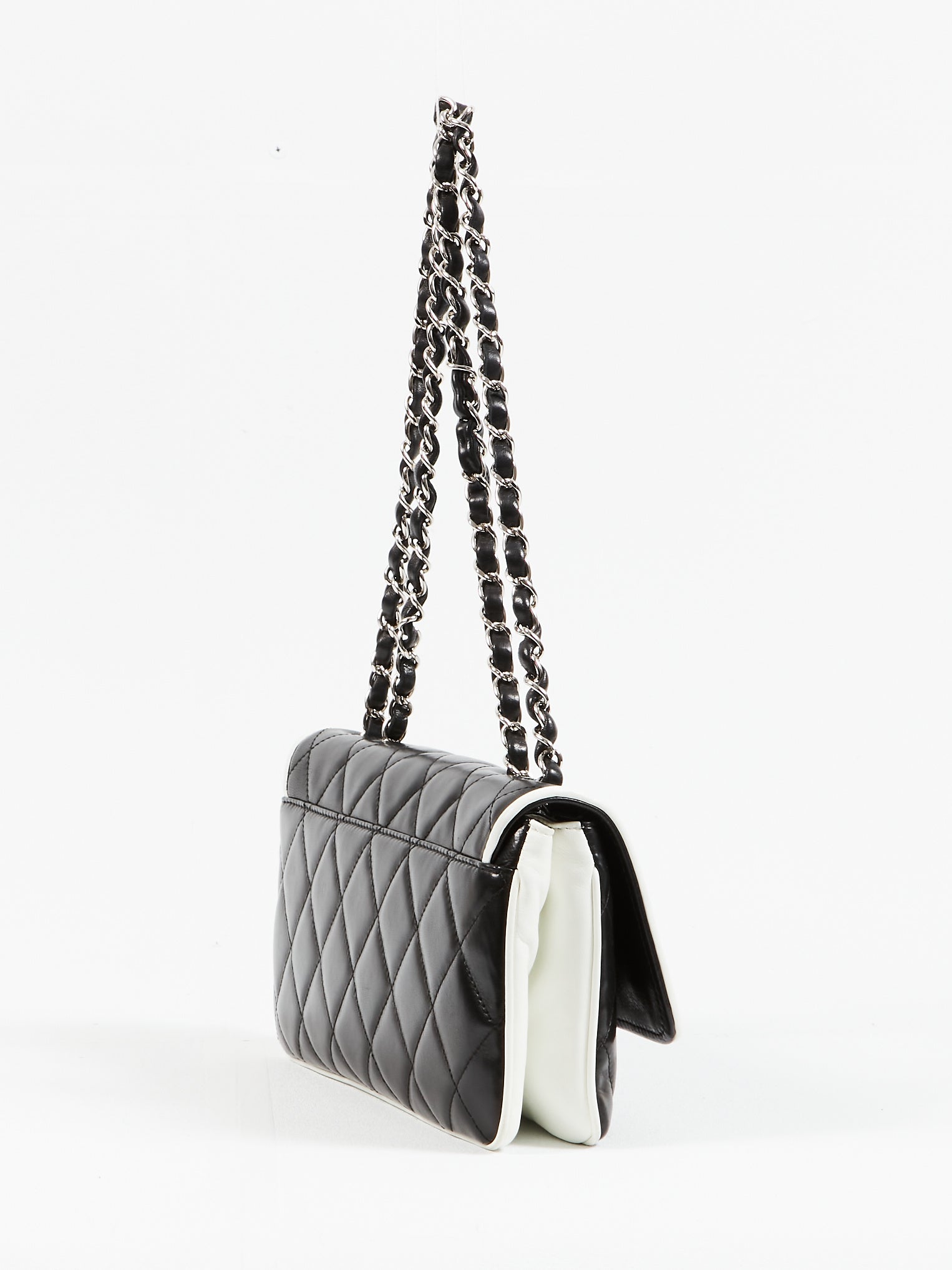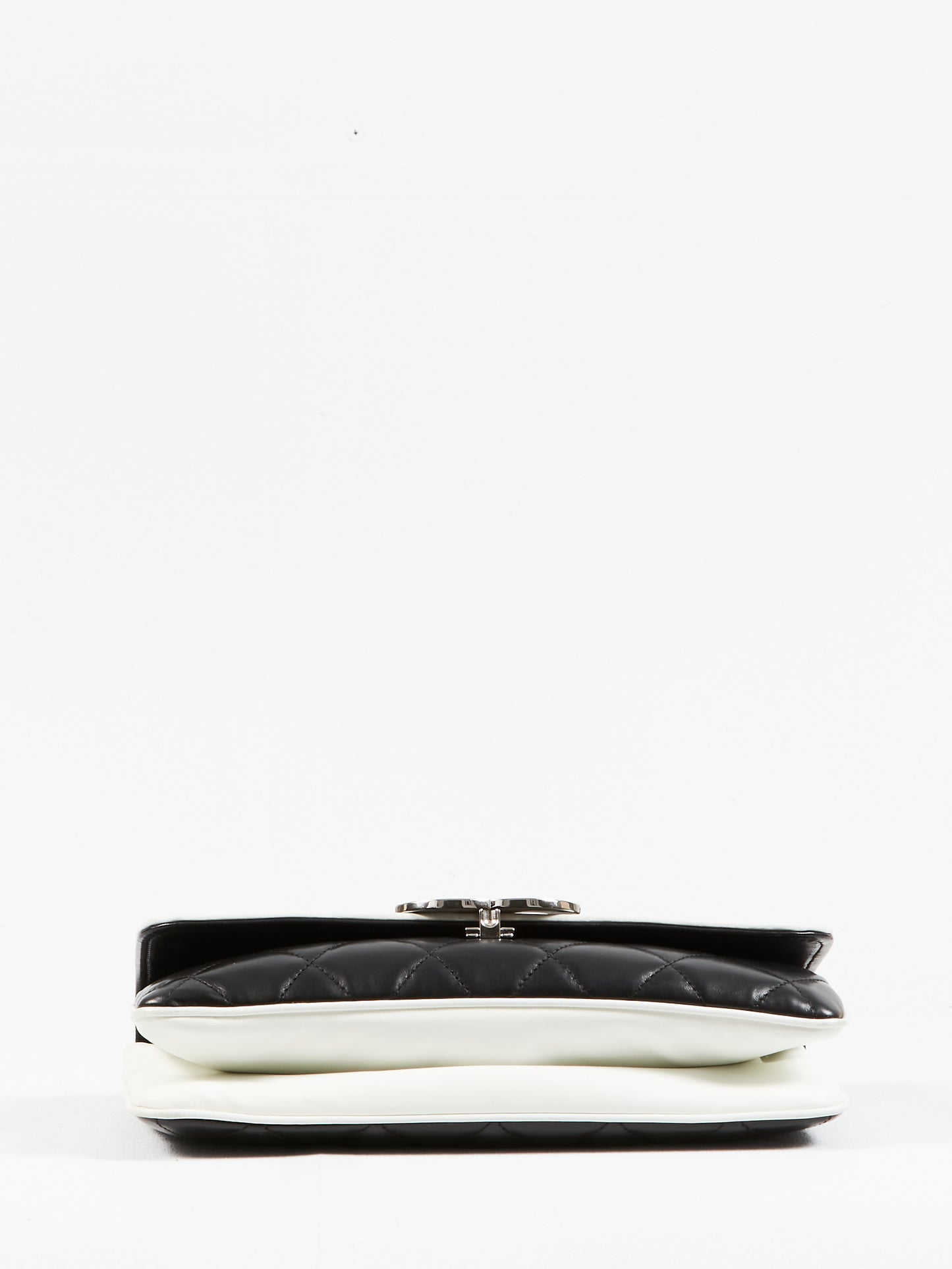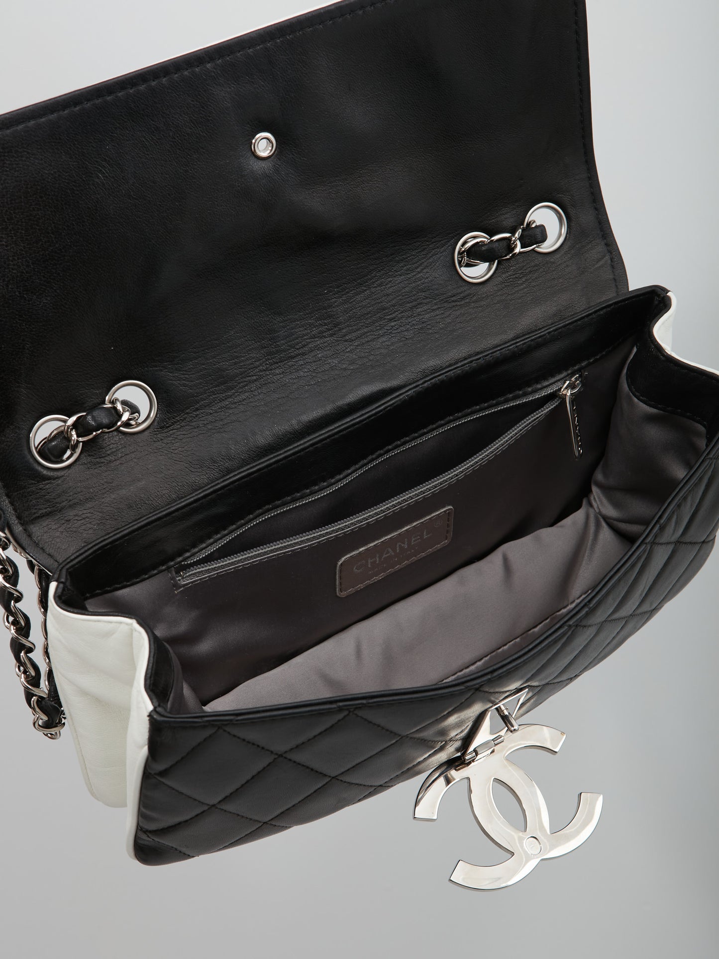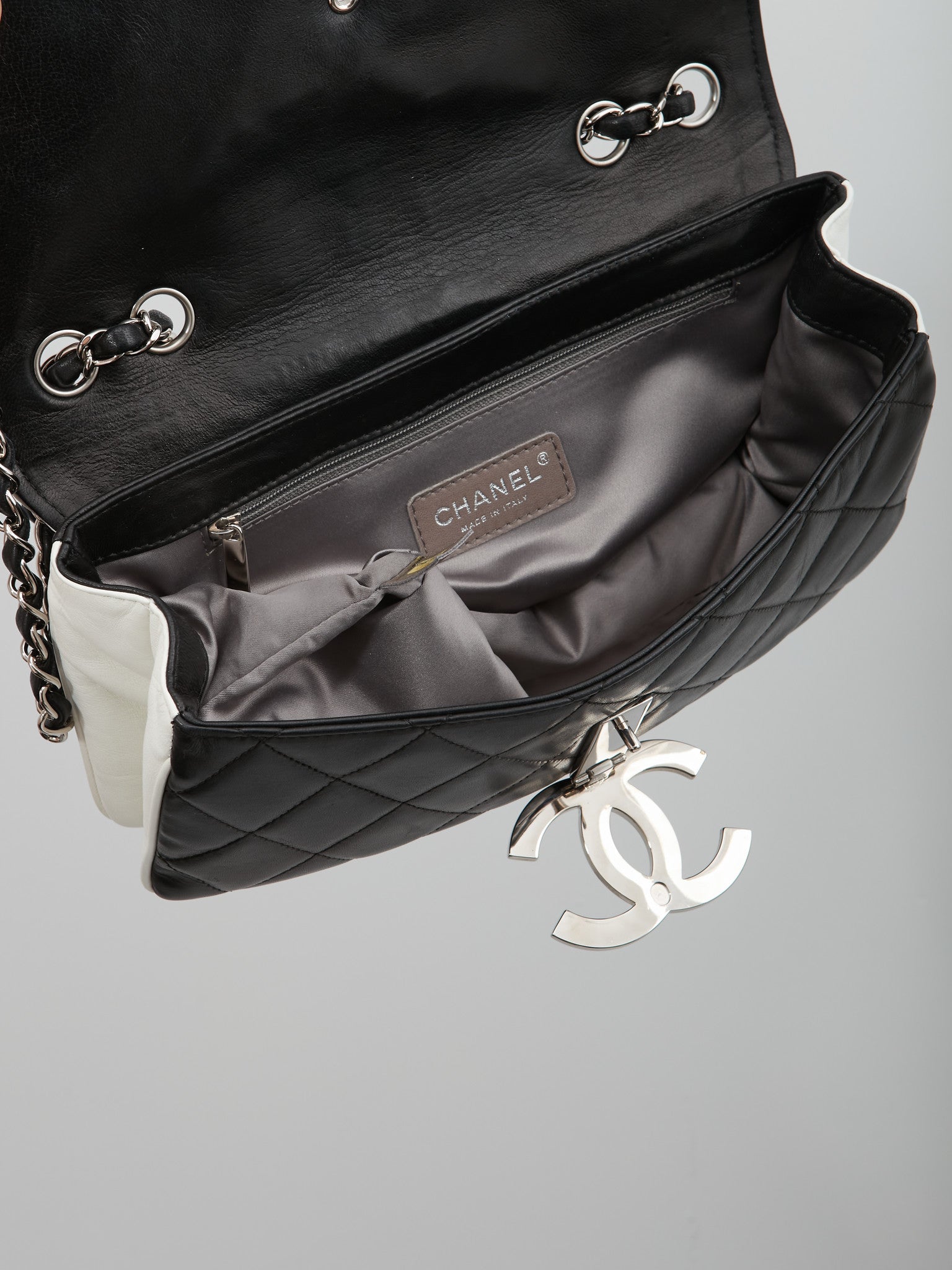 Black/White Lambskin Fliplock CC Flap Shoulder Bag SHW