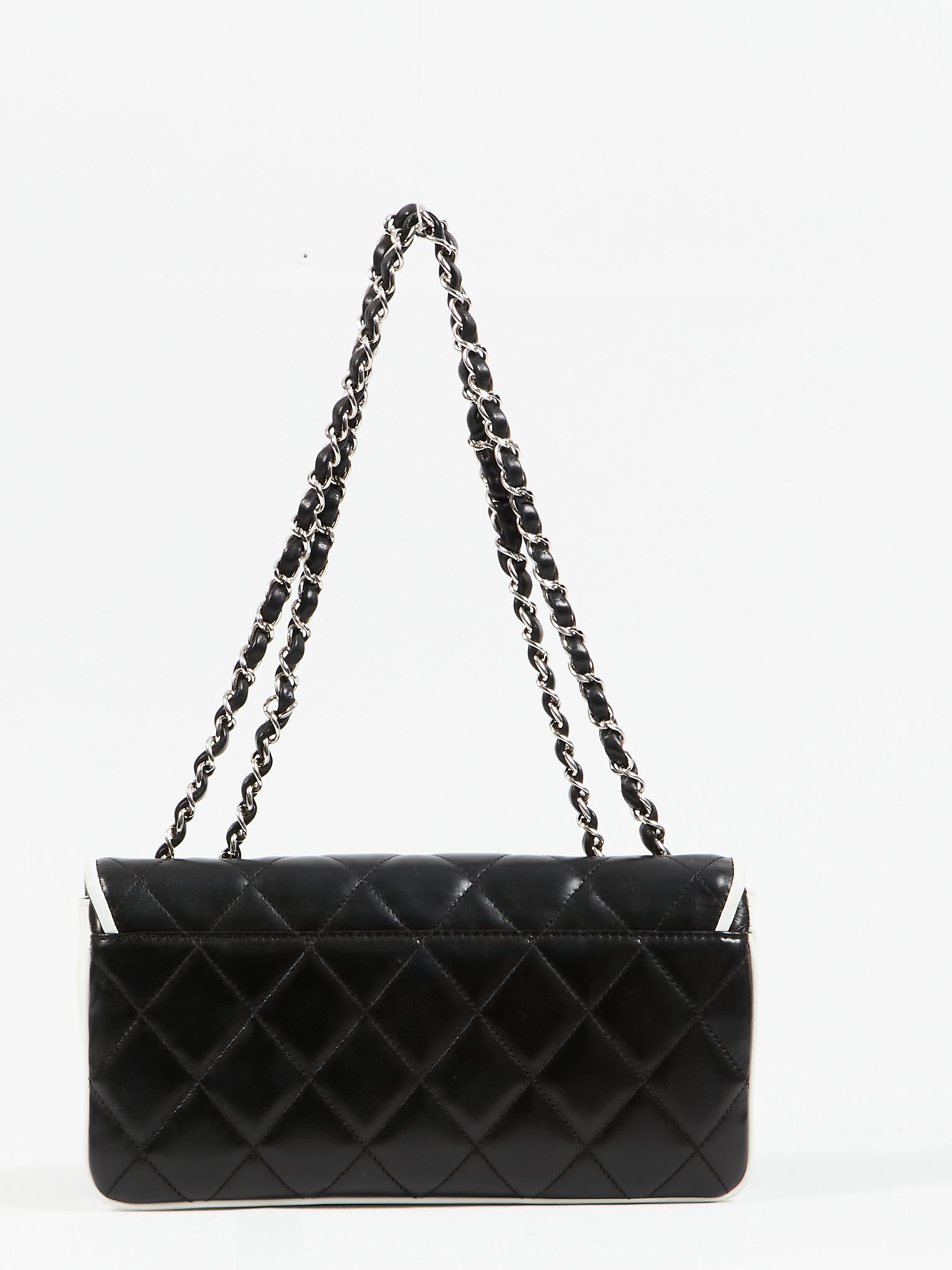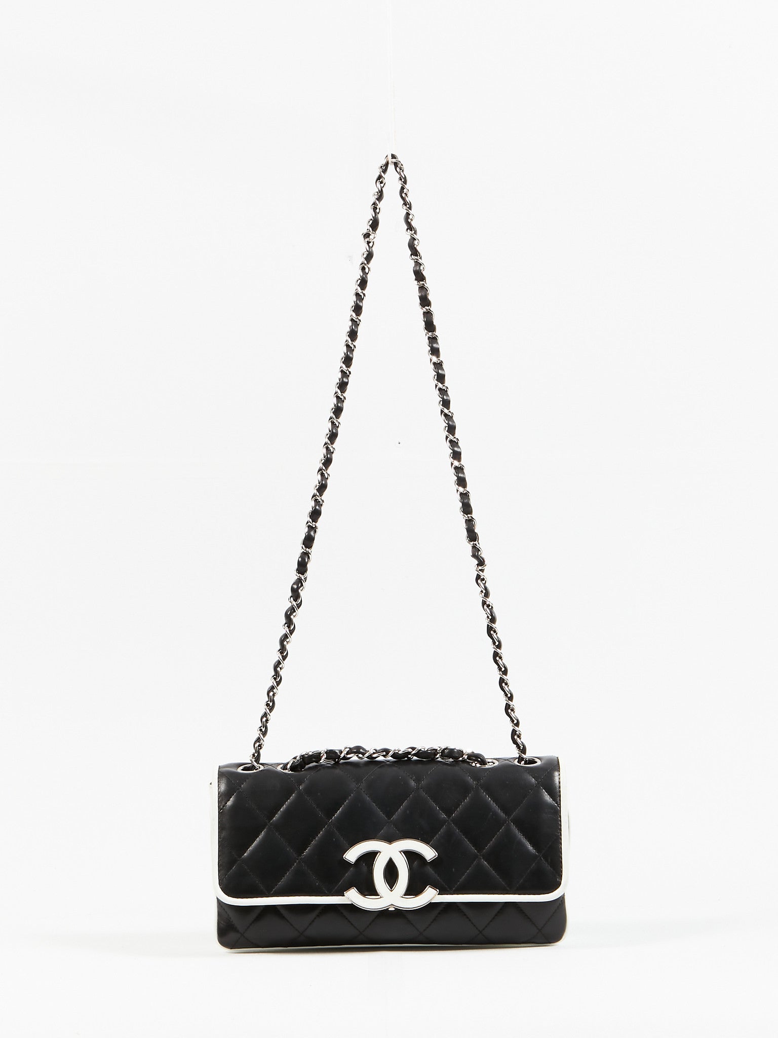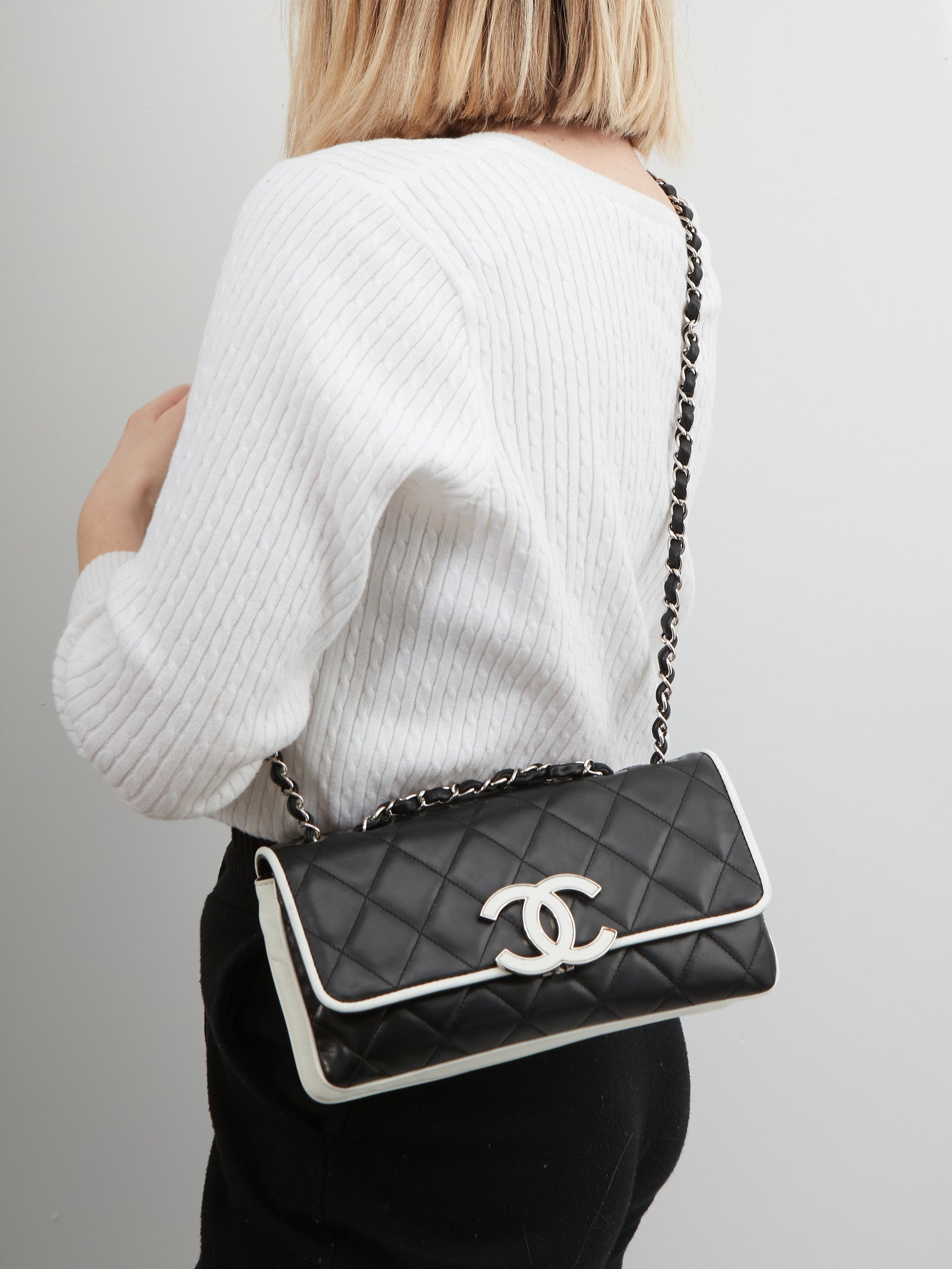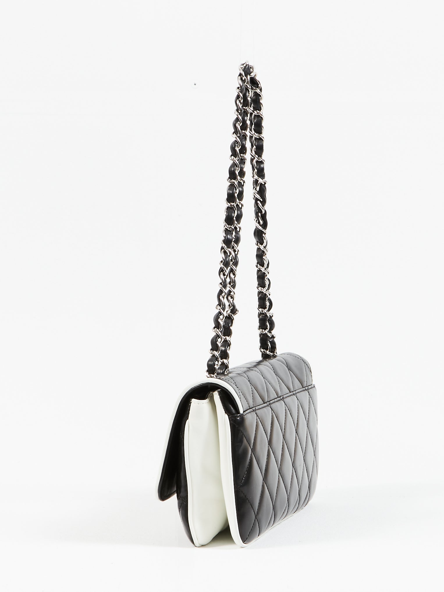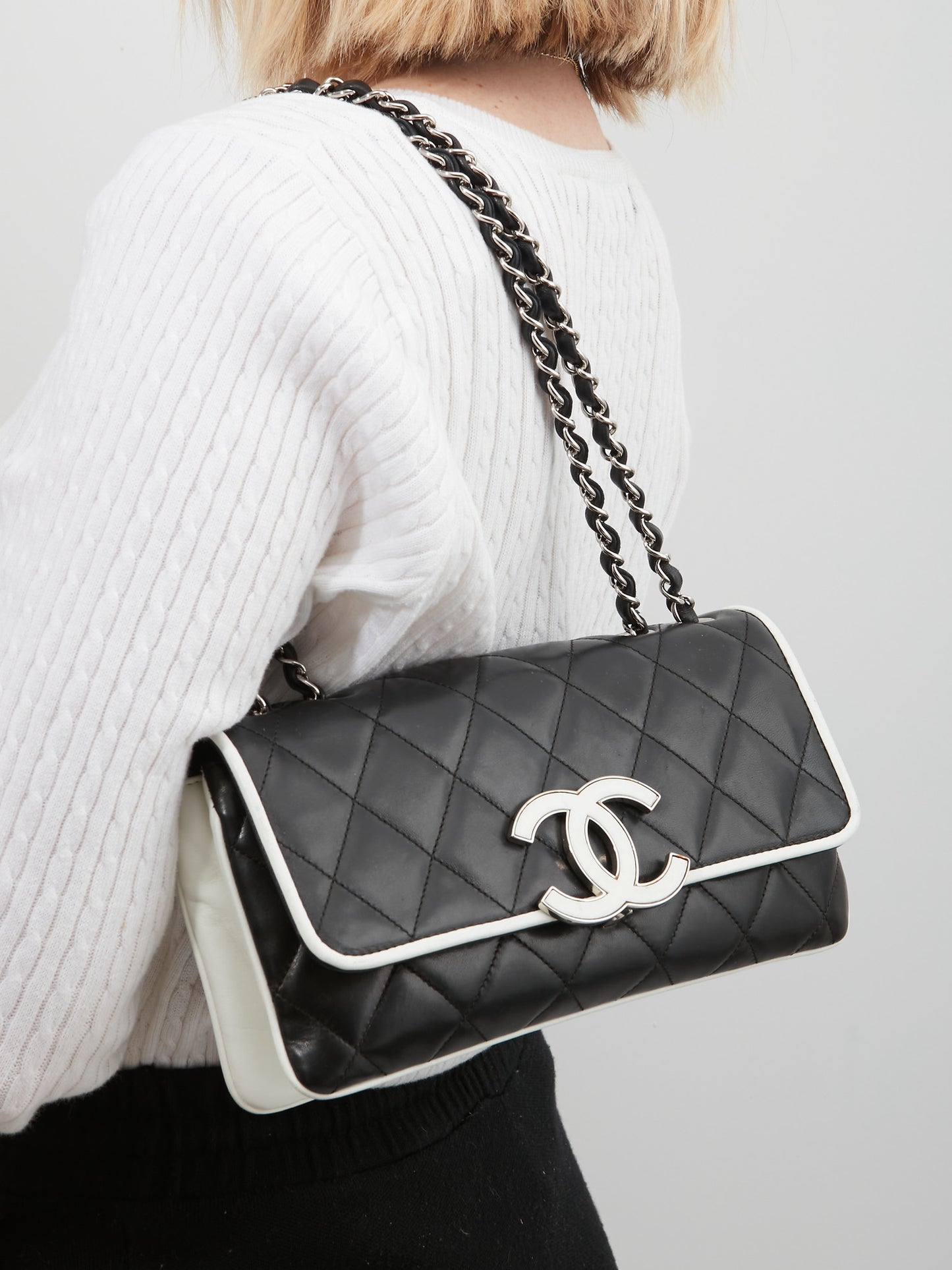 Black/White Lambskin Fliplock CC Flap Shoulder Bag SHW