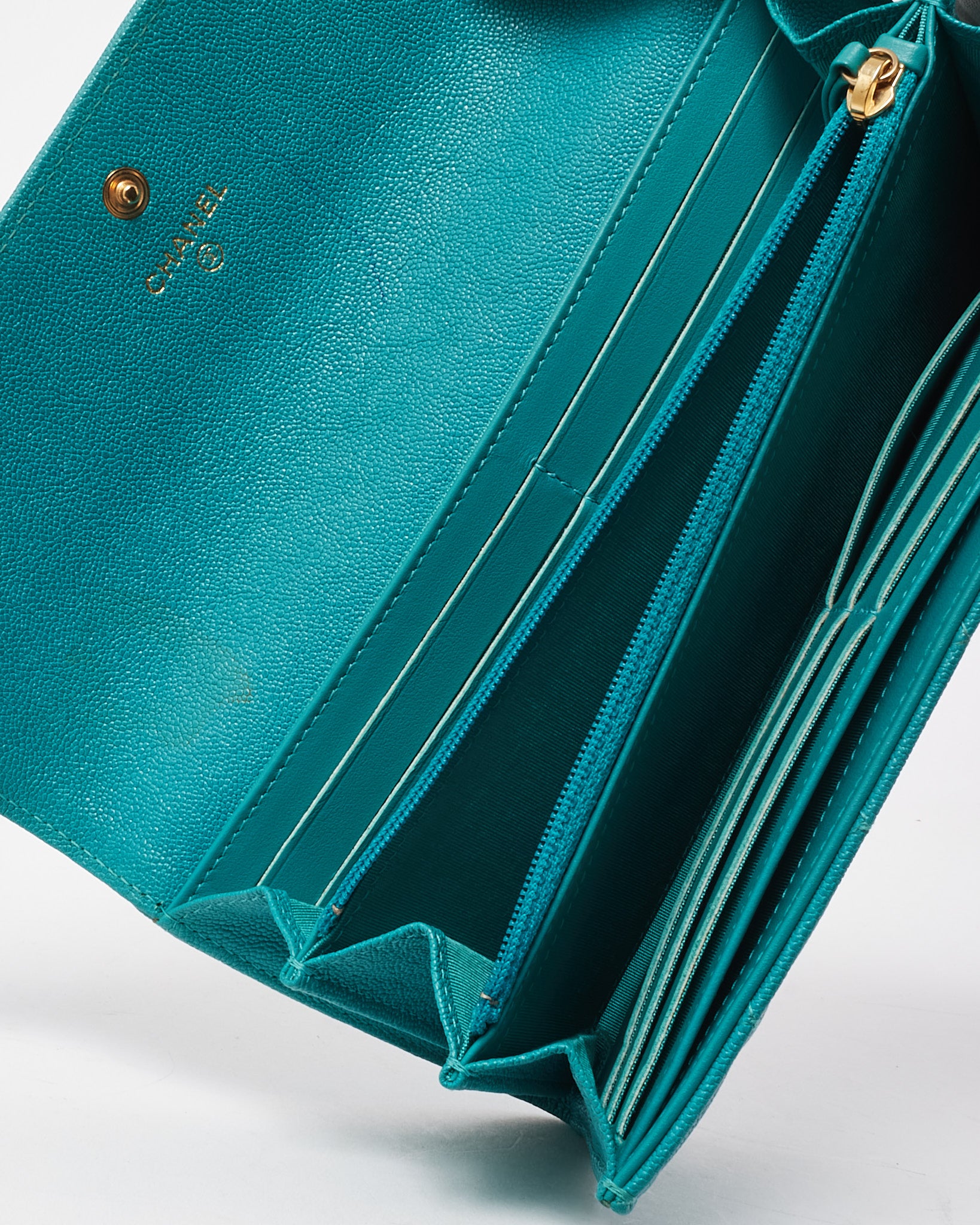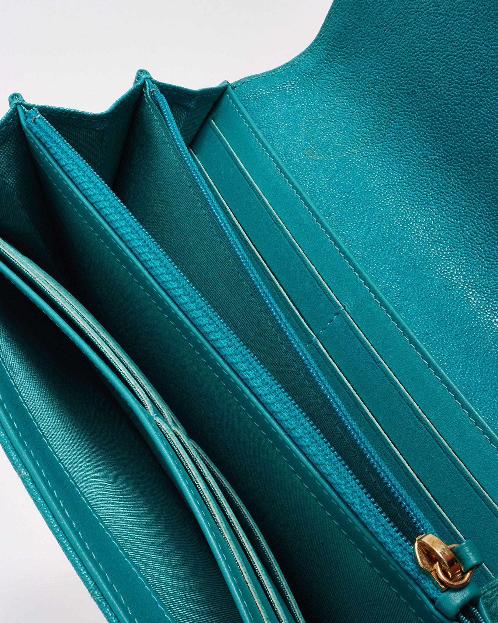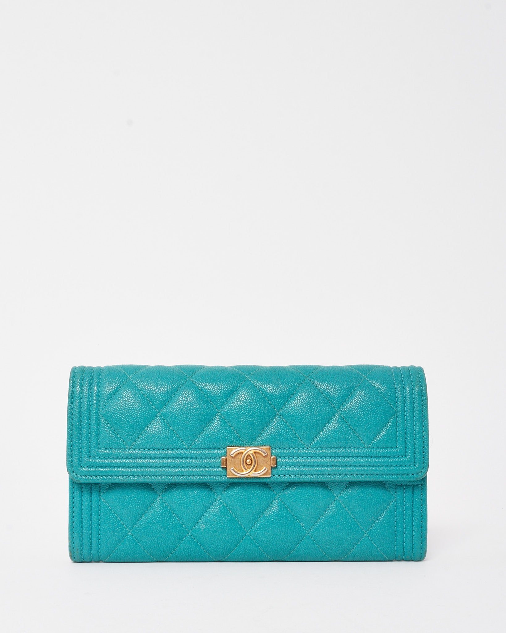 Add timeless sophistication to your accessories collection with this pre-loved authentic Chanel Blue Caviar Quilted Leather Large Boy Gusset Flap Wallet. Crafted in durable caviar leather with signature diamond quilting, this wallet embodies the iconic aesthetic of the Boy Chanel line. The structured flap design is accented with the instantly recognizable Boy push-lock closure in gold-tone hardware. Inside, a well-organized gusseted interior offers multiple compartments, card slots, and a zip pocket for secure storage. A versatile and elegant companion, this piece pairs classic Chanel craftsmanship with everyday functionality.