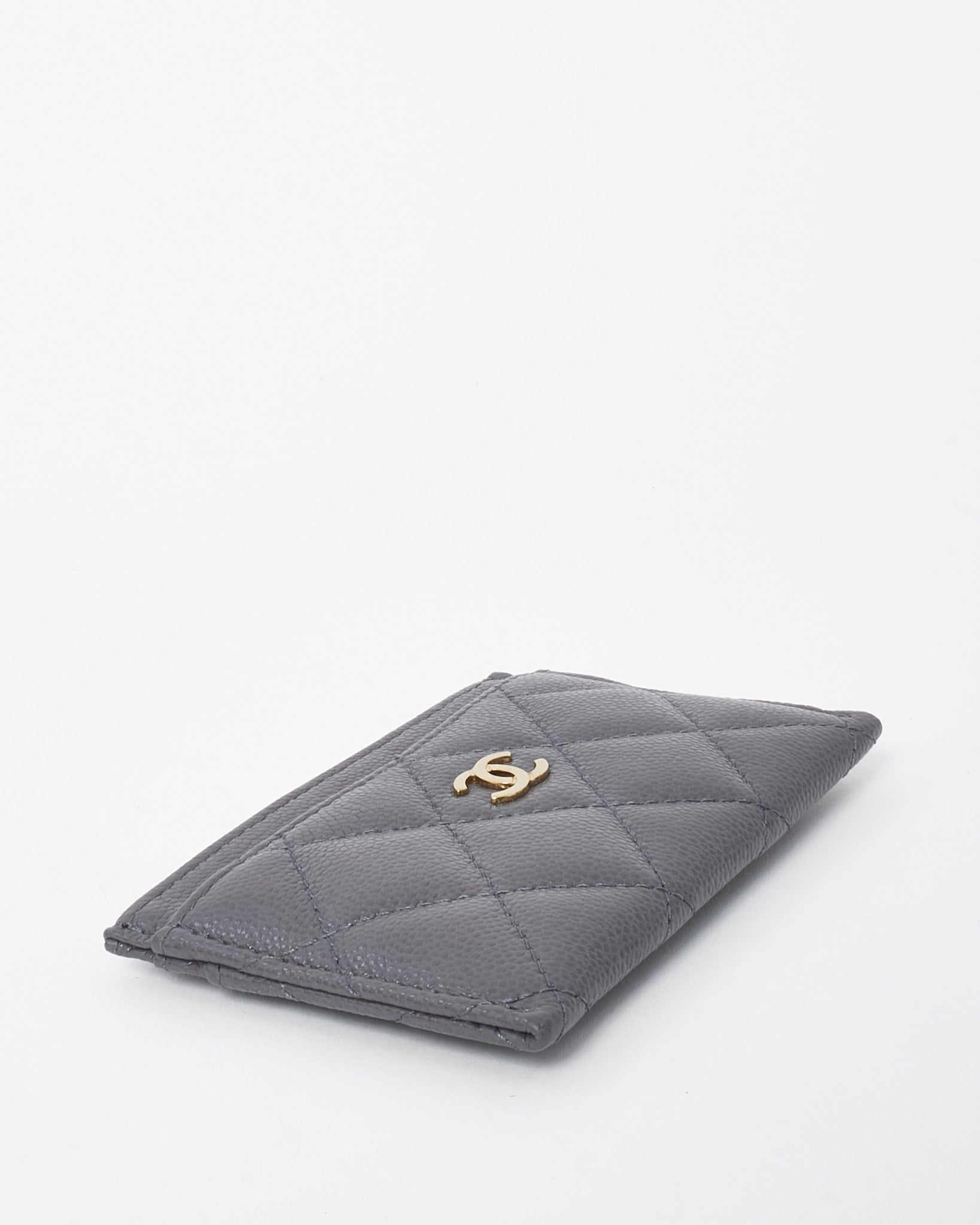 Grey Caviar Leather GHW CC Logo Card Case