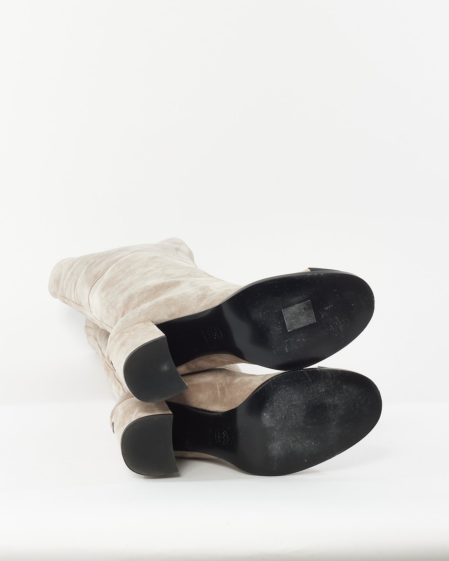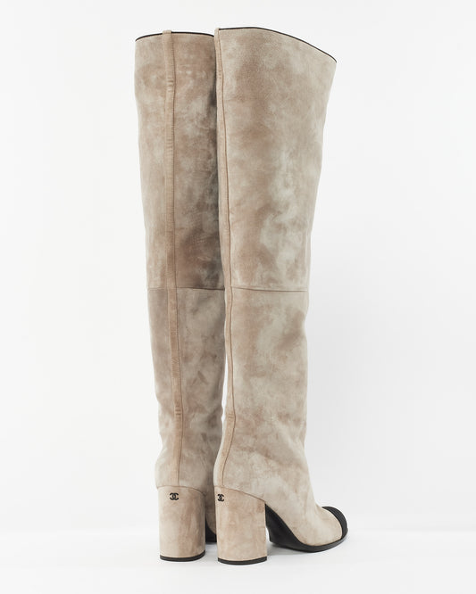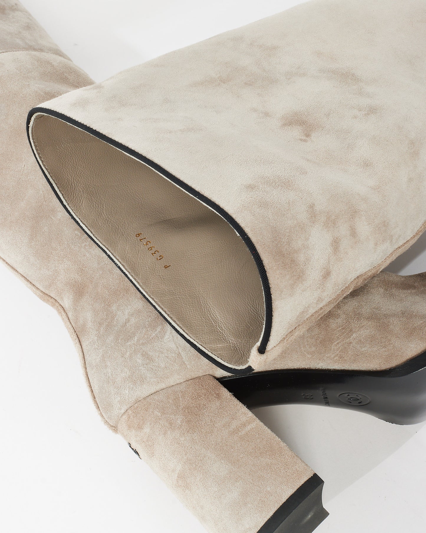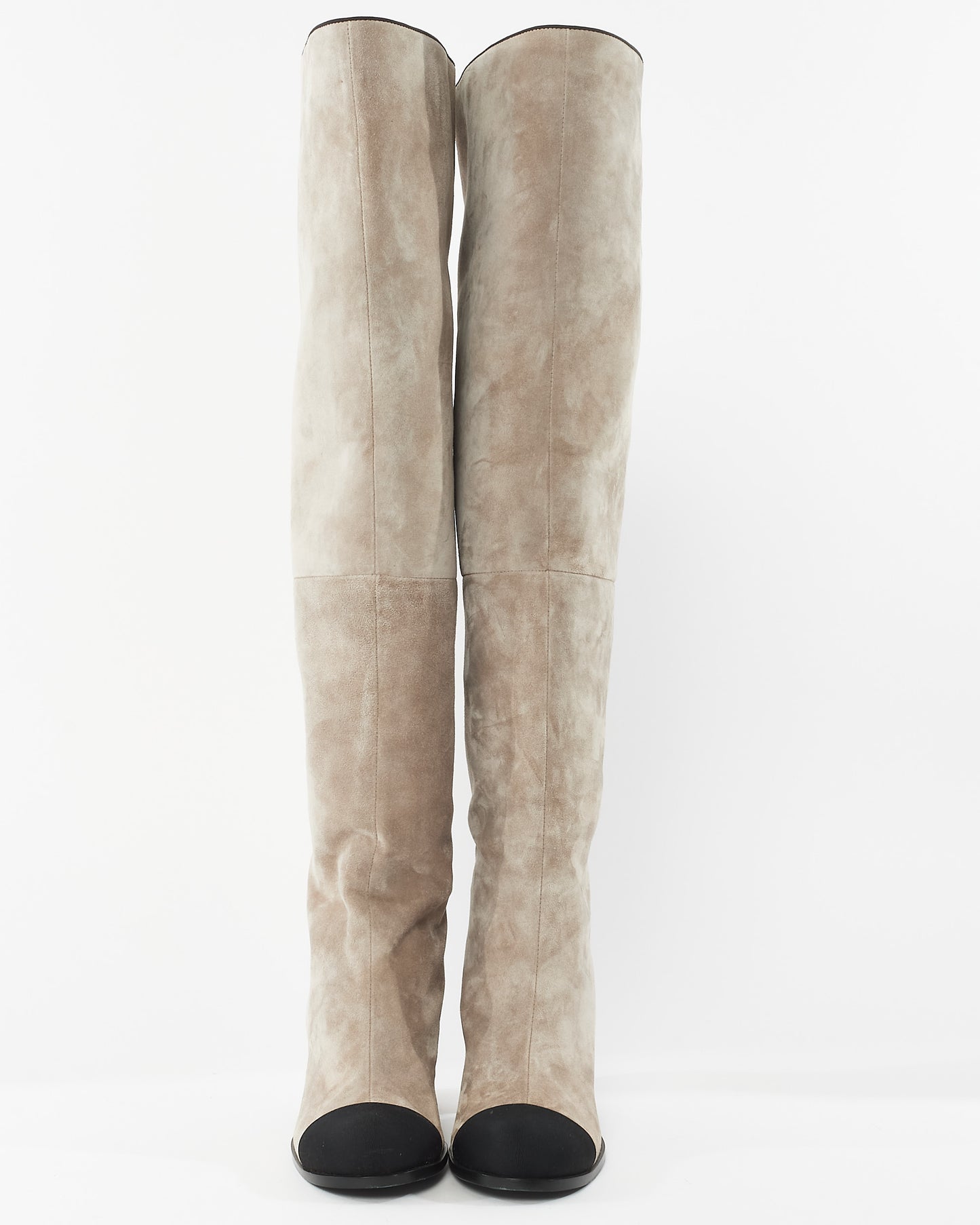 Grey Suede Over The Knee Cap Toe Boots - 38