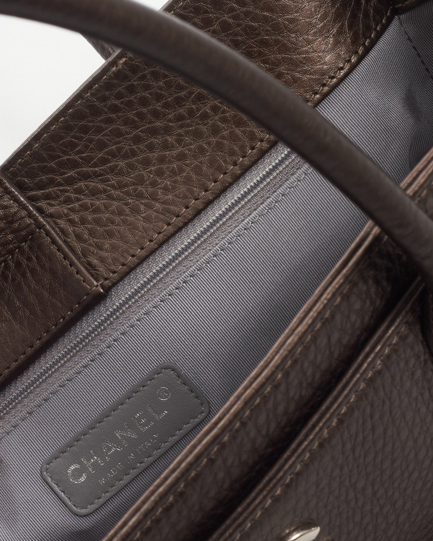 Brown Iridescent Leather East/West Cerf Executive Tote