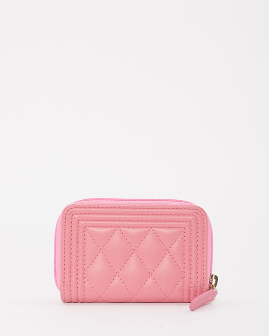 Pink Leather Boy Zip Around Coin Purse Wallet