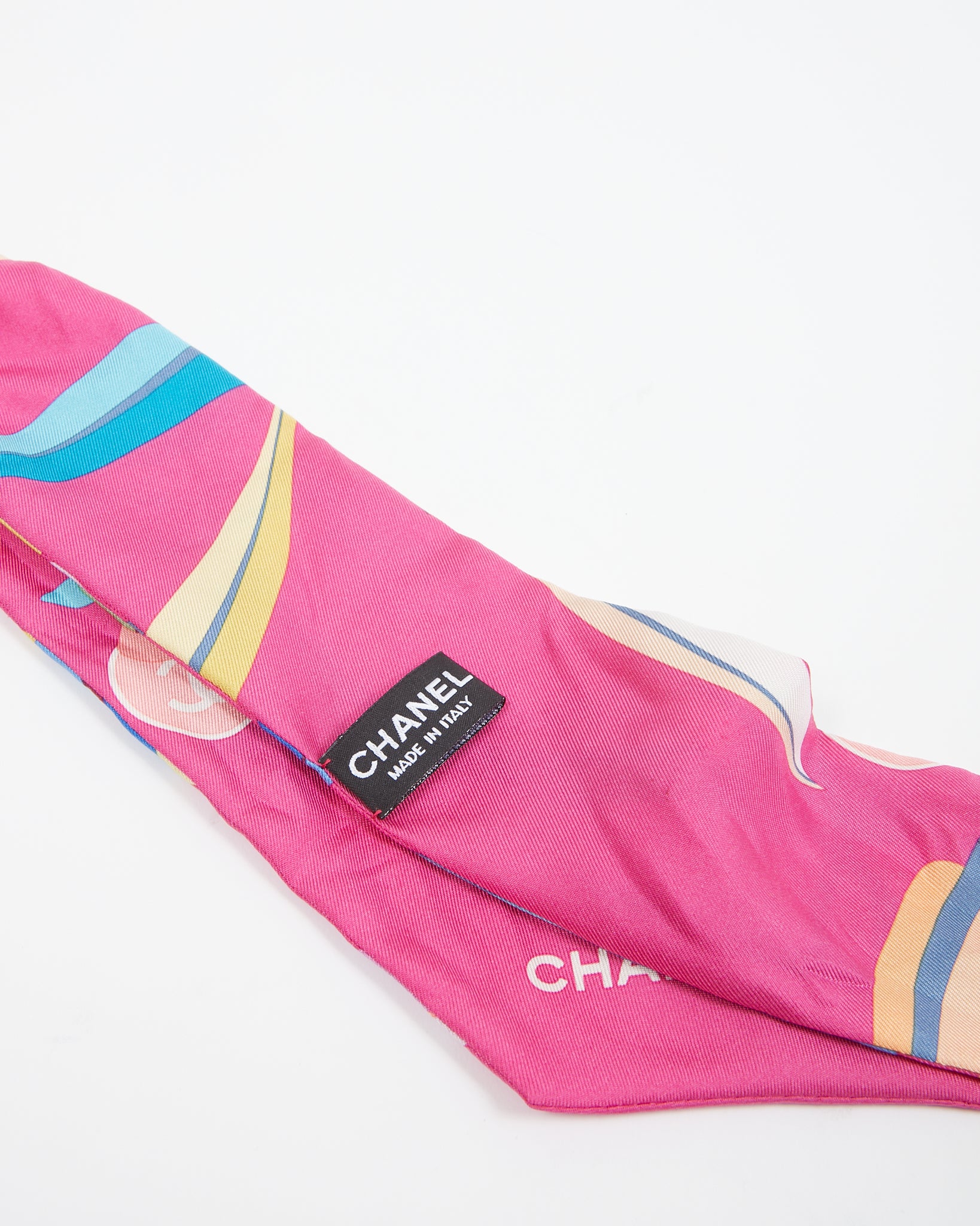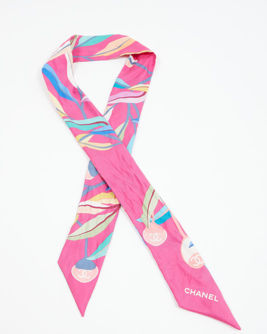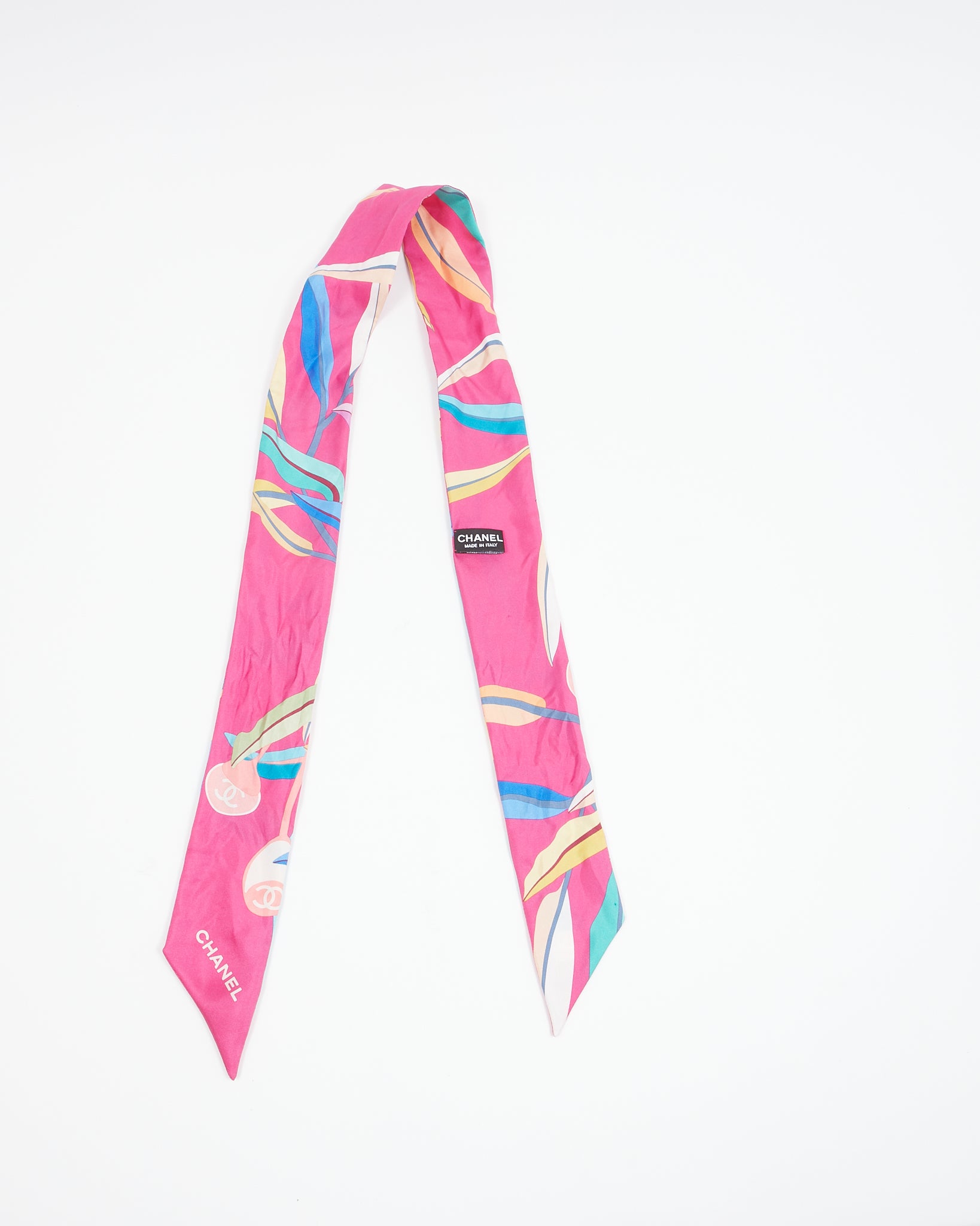 Pink Silk Multicolour Leaves Print Twilly Scarf