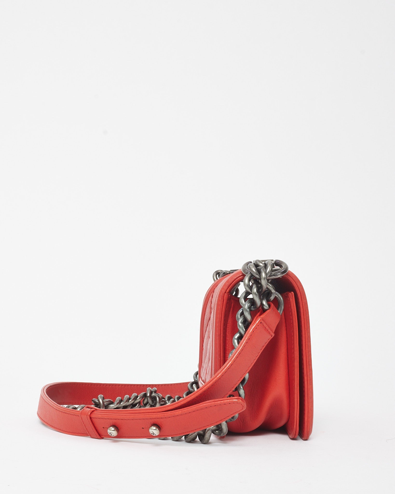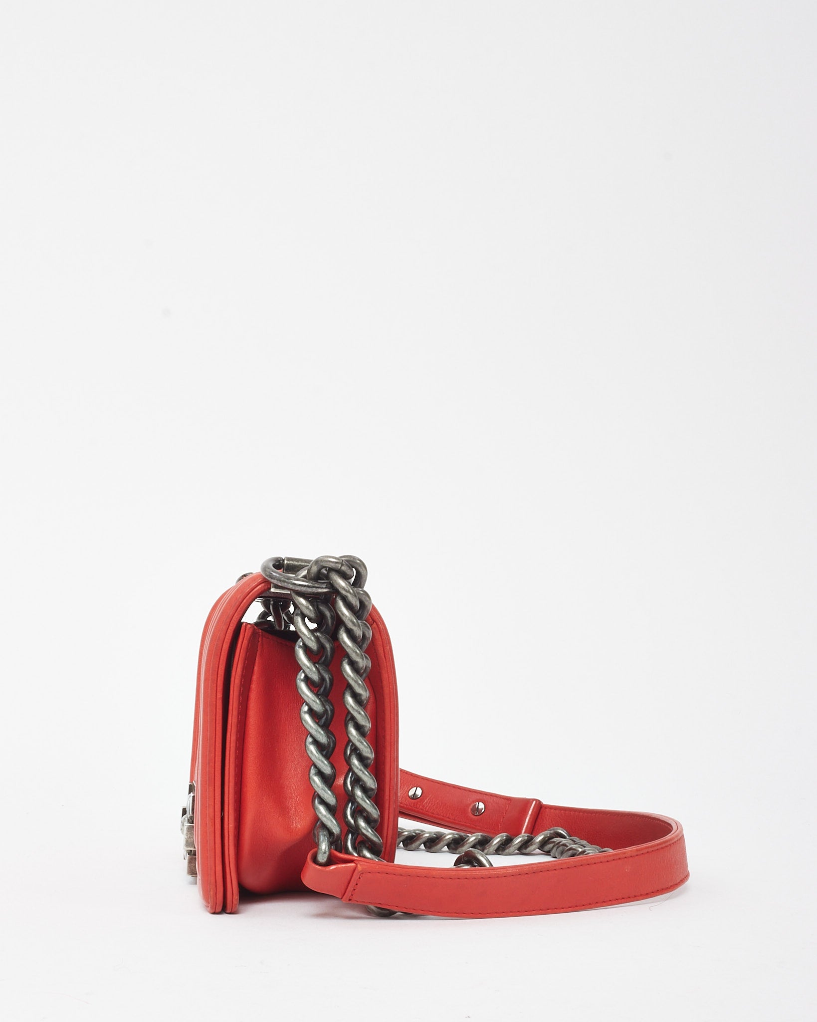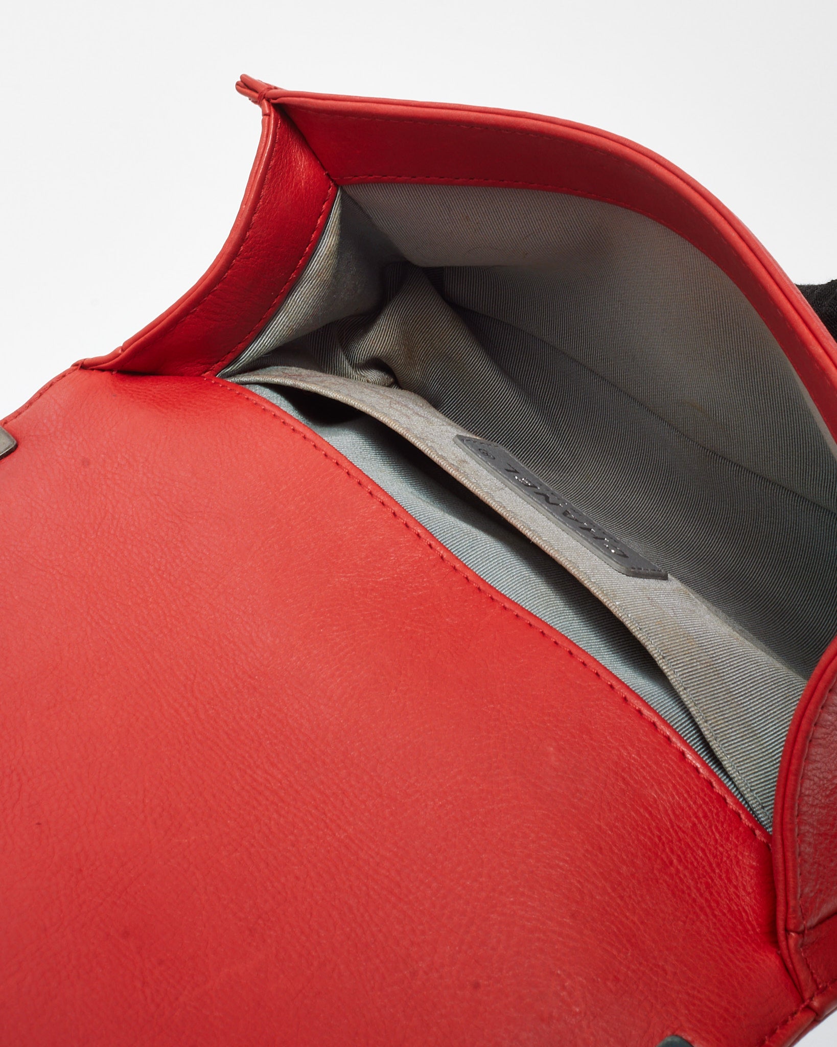 Red Calfskin Leather Double Stitch Small Boy Flap Bag