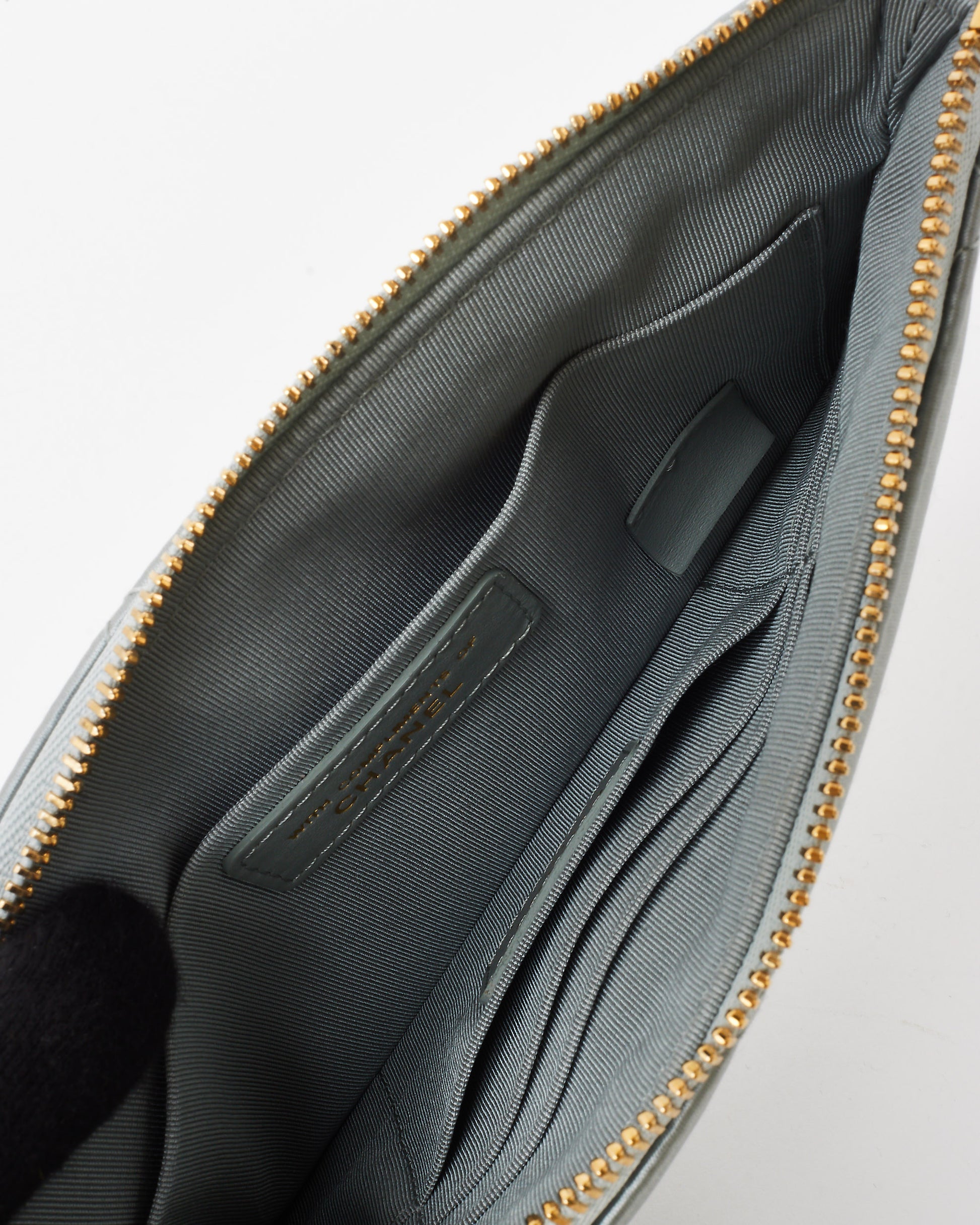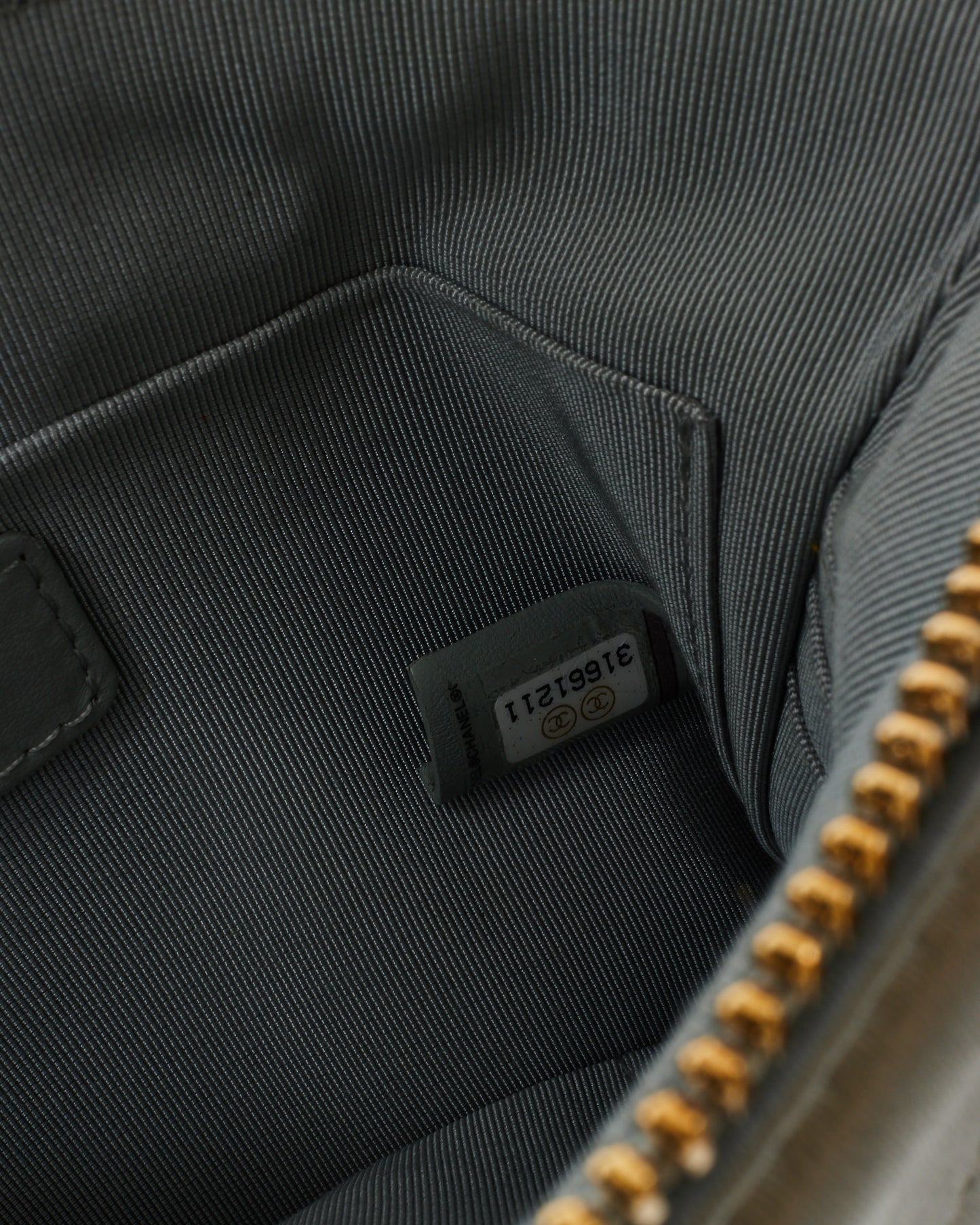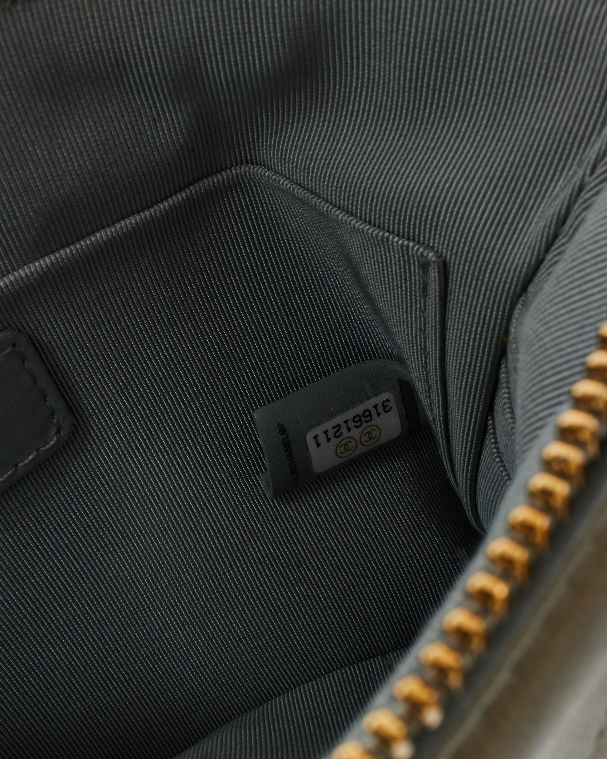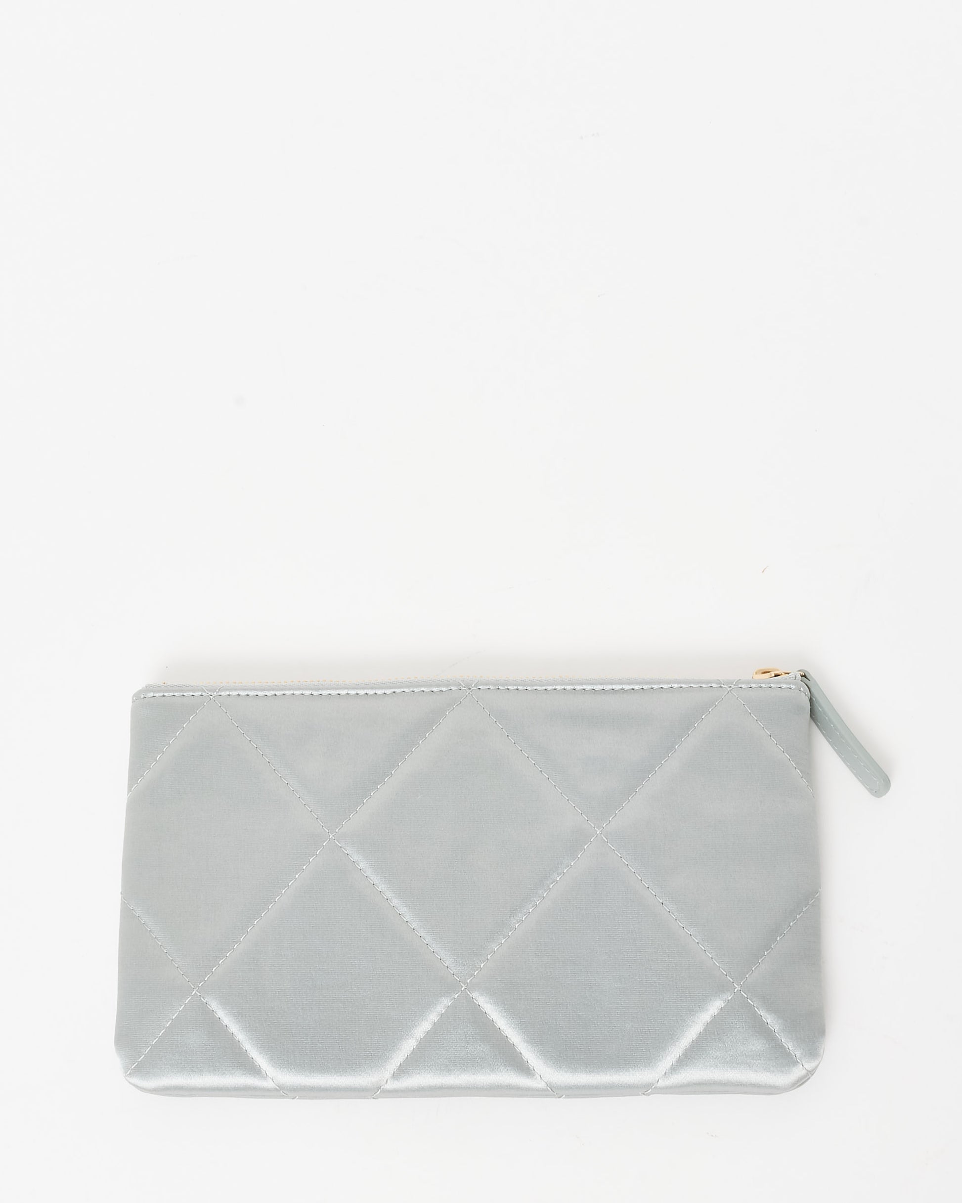 A shimmering blend of modern glamour and classic Chanel elegance, the pre-owned authentic Chanel Silver Lambskin Leather 19 Zip O Case Pouch is a standout accessory with timeless appeal. Crafted from metallic silver lambskin leather, this pouch features signature diamond quilting and is finished with the iconic interlocking CC logo in mixed metal hardware, emblematic of the 19 collection.
