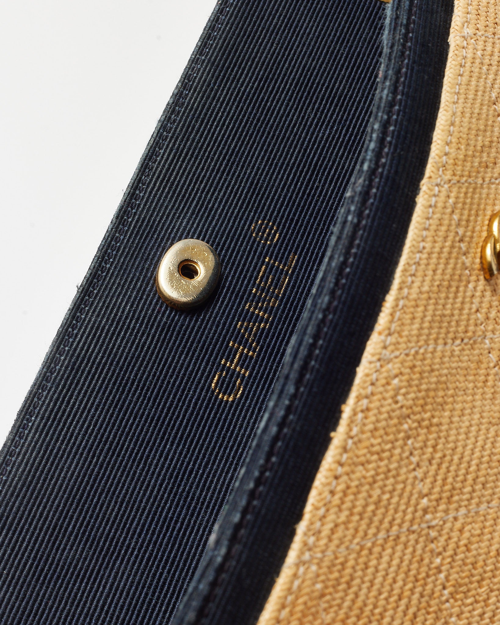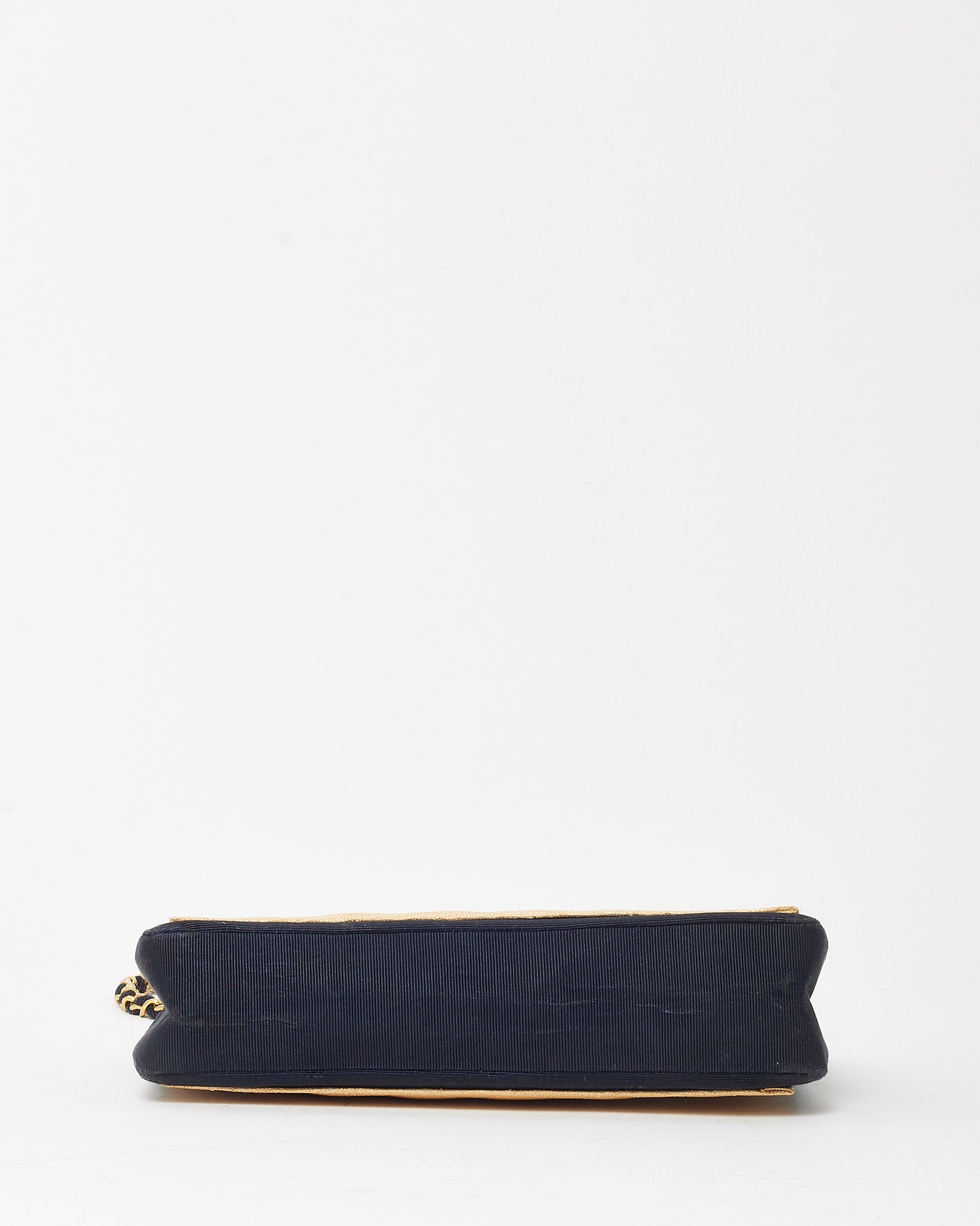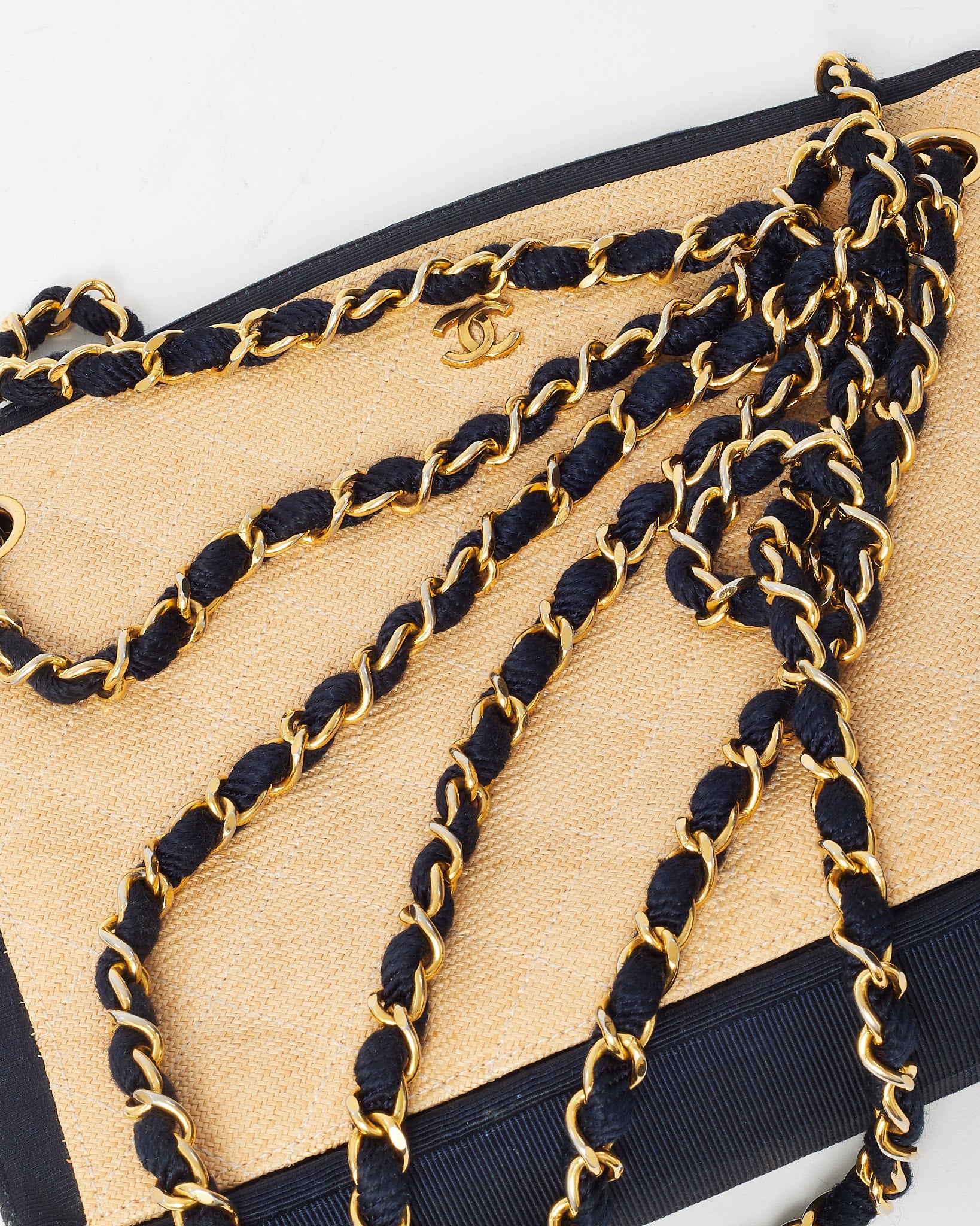 Vintage Beige and Black Quilted Raffia Chain Shoulder Bag