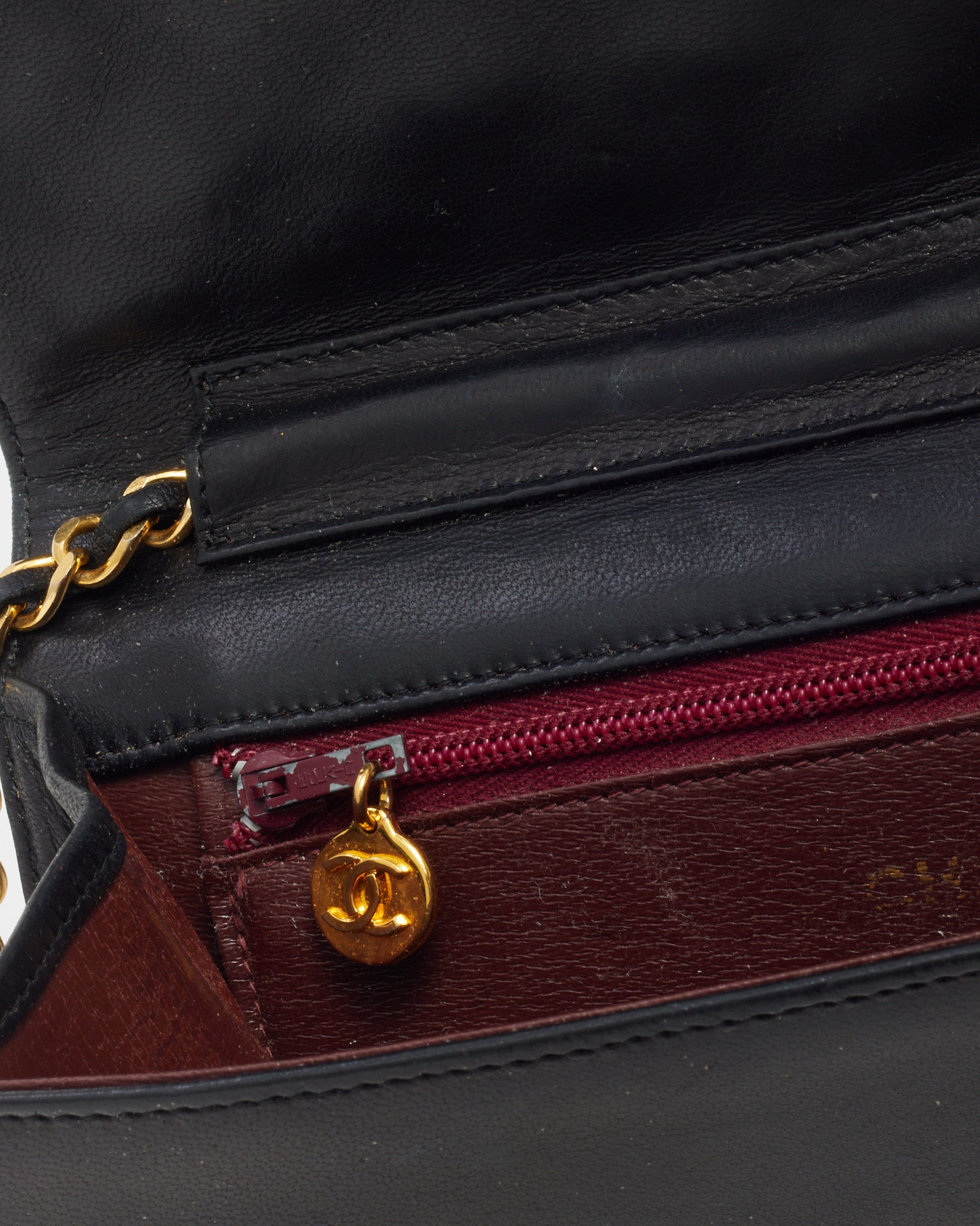Elevate your collection with this pre-loved authentic Chanel Vintage Wallet on Chain, a timeless piece crafted in supple black lambskin leather with a smooth, luxurious finish. Featuring the iconic full flap design and adorned with the classic CC logo snap closure, this shoulder bag is detailed with gleaming gold-tone hardware and a leather-threaded chain strap for crossbody or shoulder wear. Inside, its well-organized interior offers practicality with card slots and zip compartments, making it the perfect fusion of elegance and function for both day and evening occasions. A rare vintage treasure for the true Chanel enthusiast.