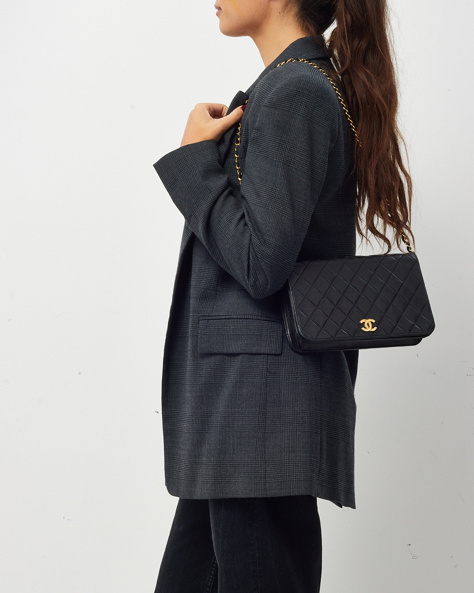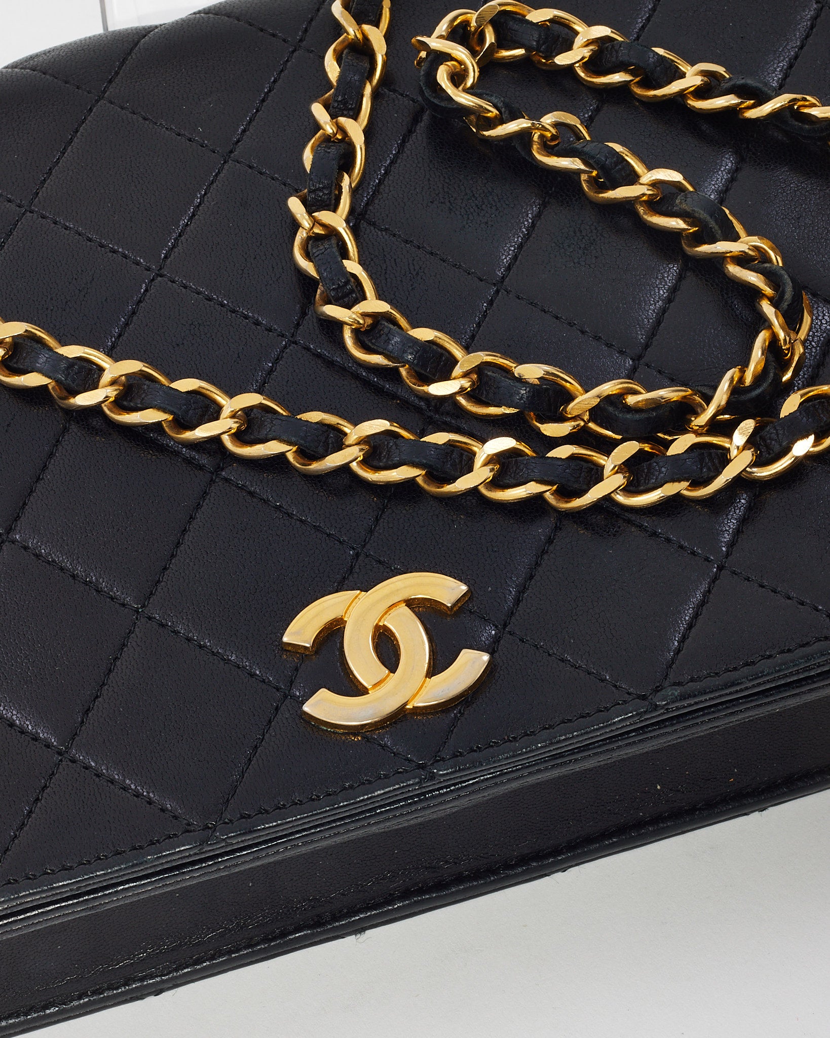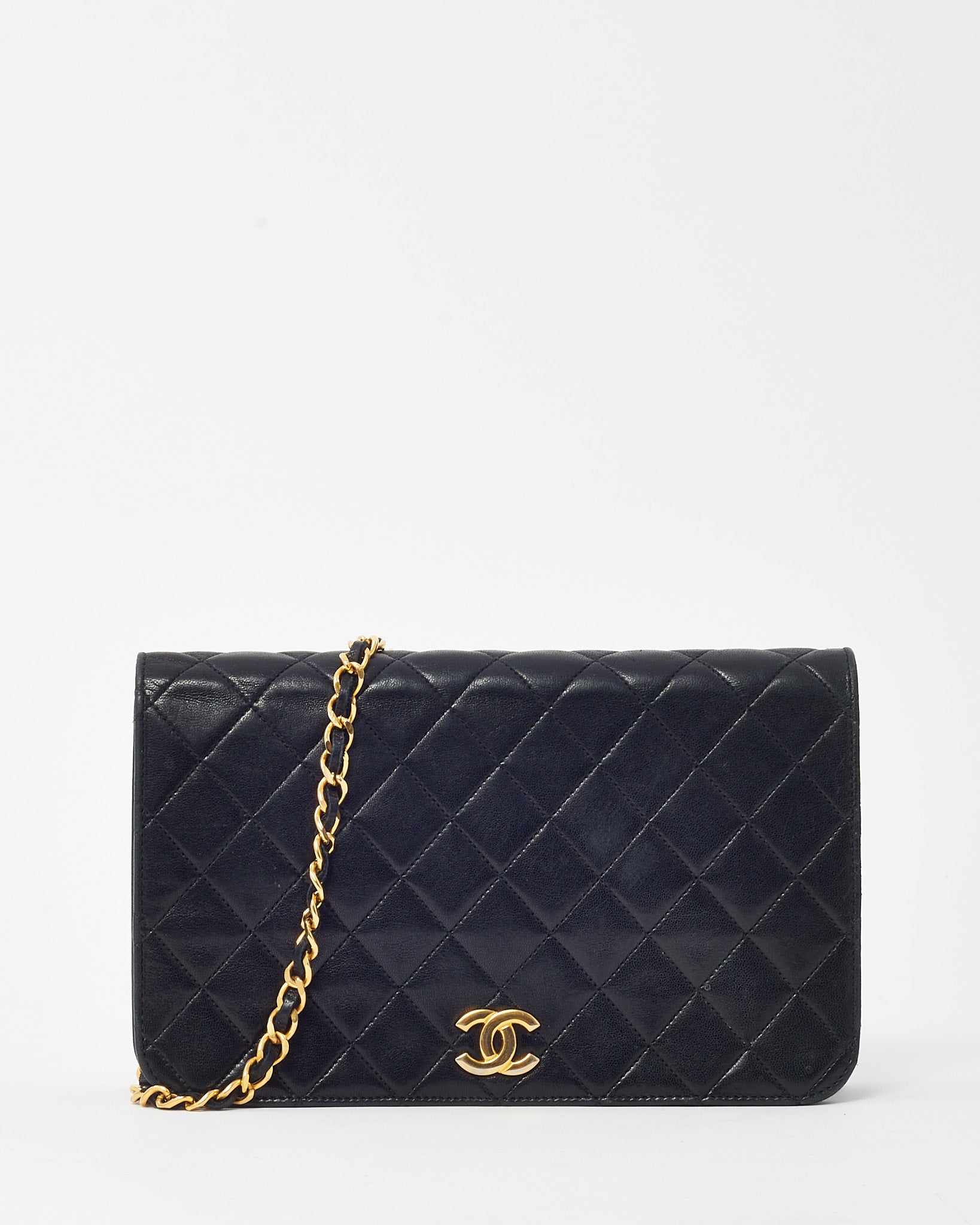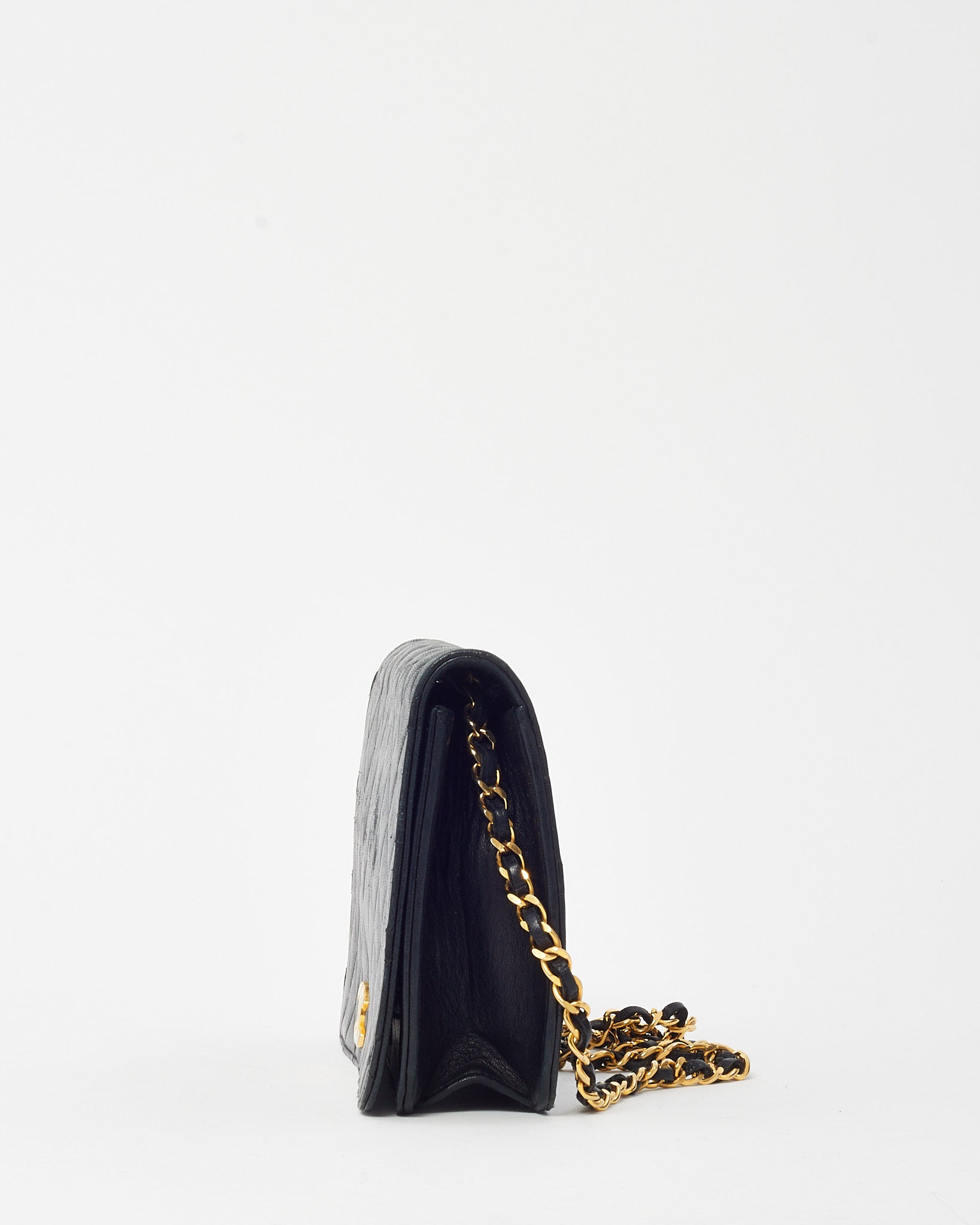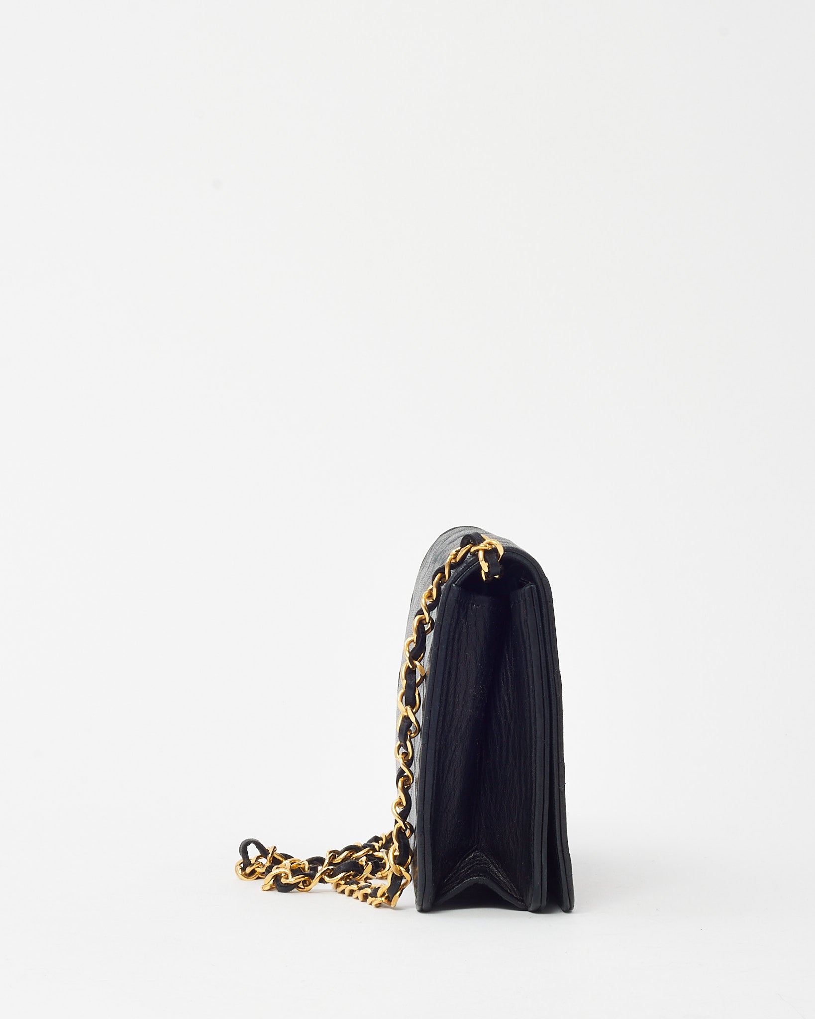 Vintage Black Lambskin Leather Full Flap WOC Wallet on Chain Shoulder Bag GHW