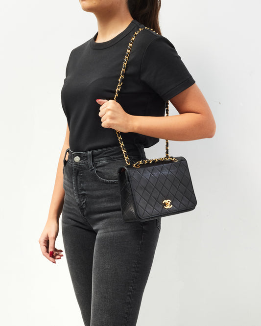Vintage Black Leather Full Flap Bag