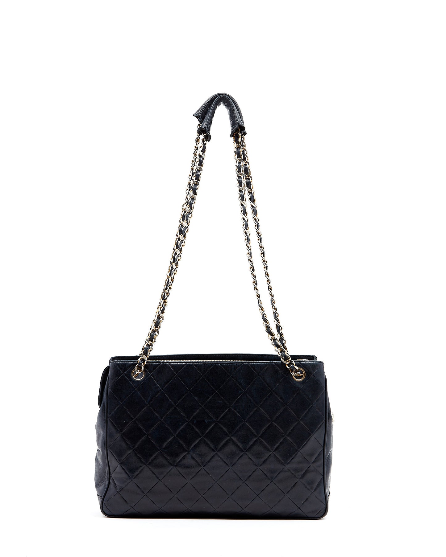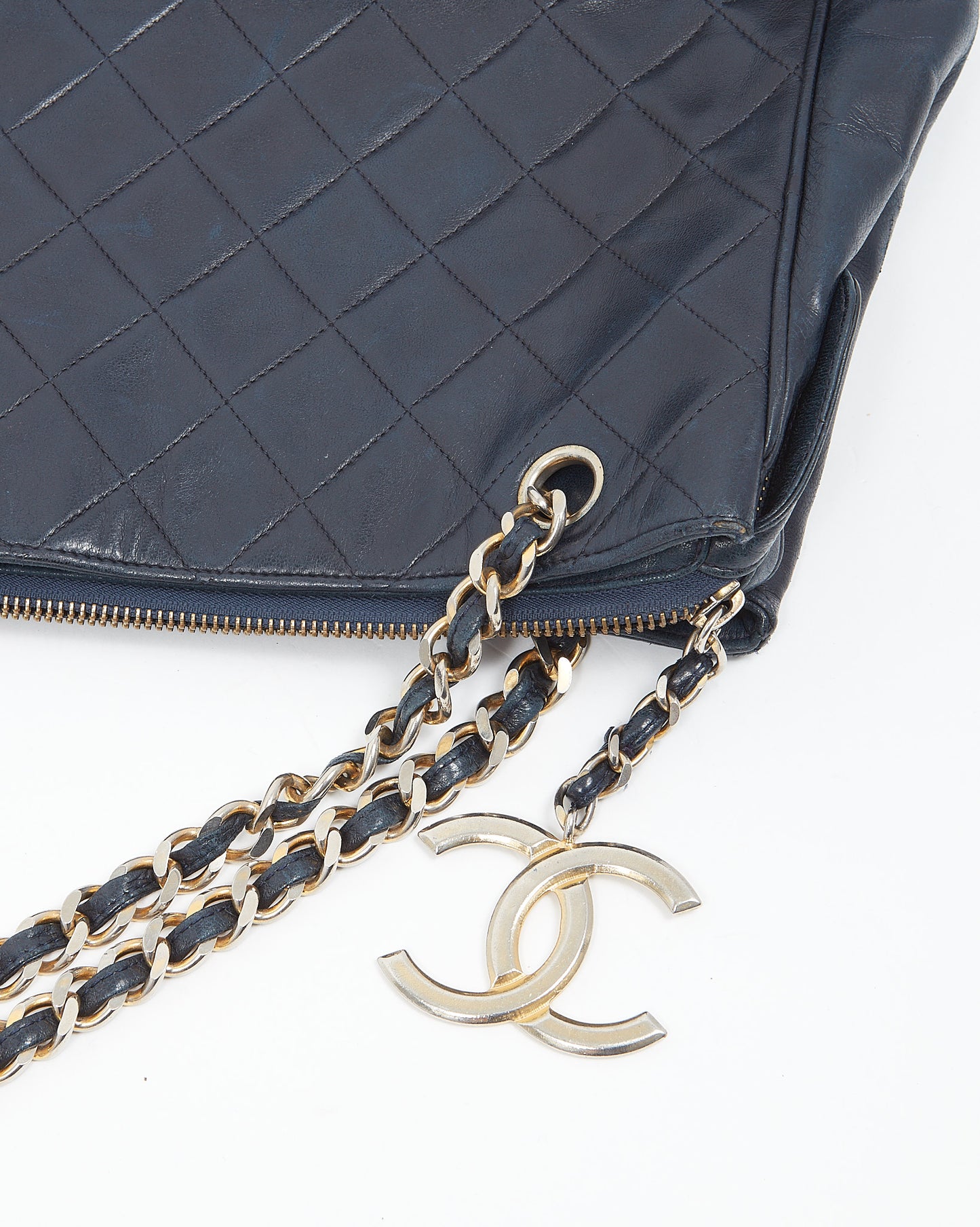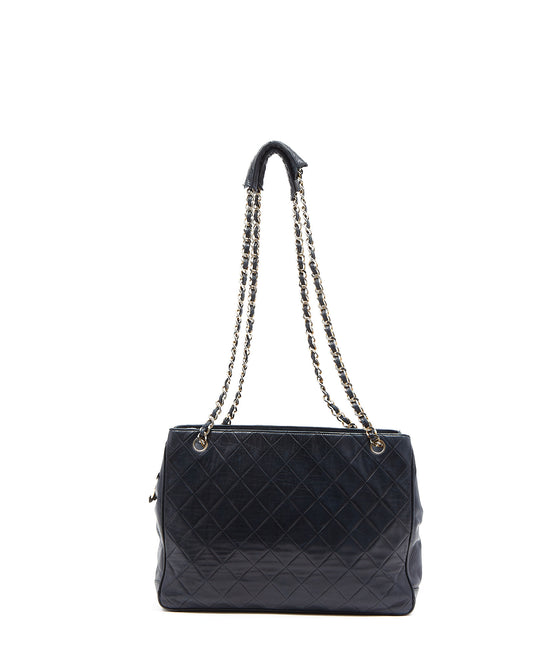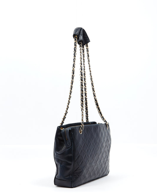 Vintage Navy Lambskin CC Chain Logo Tote Bag