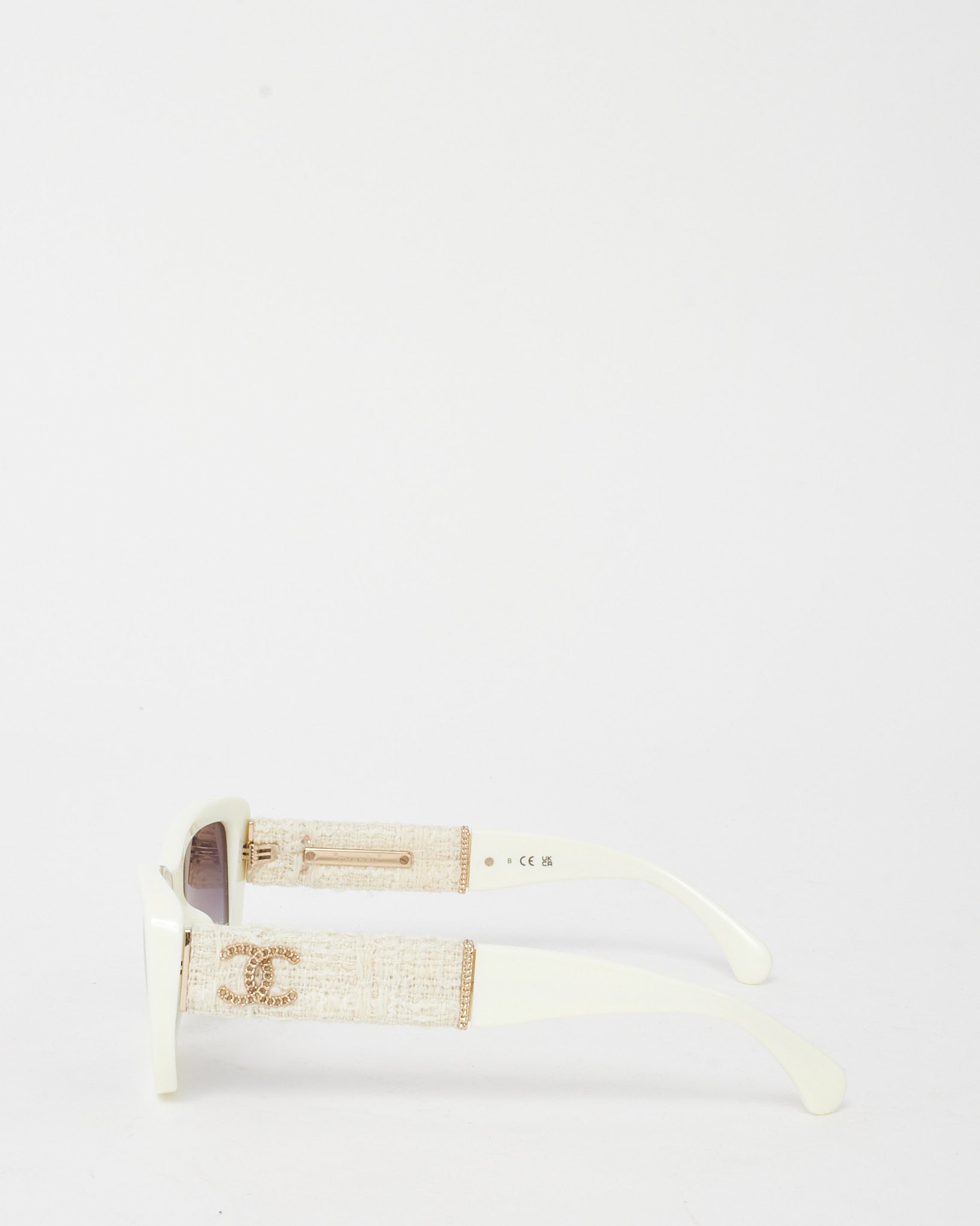 White Acetate Tweed Wool CC Rectangle 5514 Sunglasses