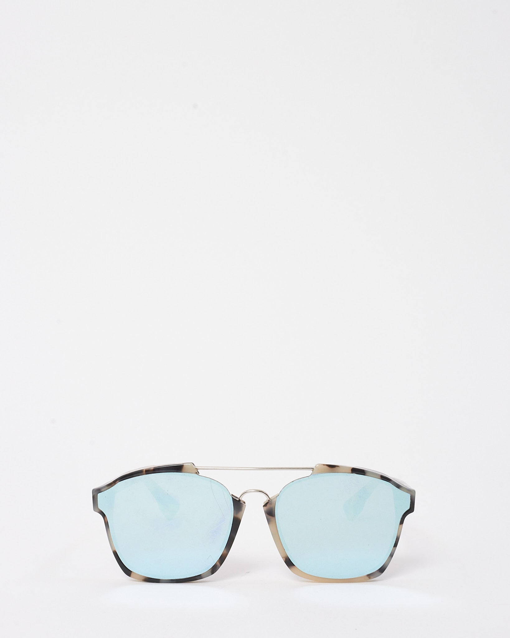 Beige and Black Havana Dior Abstract Blue Lens Square Aviator Sunglasses