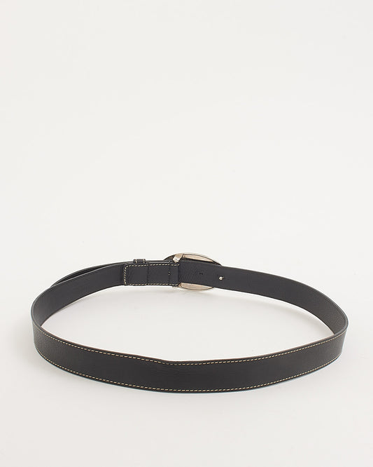 Black Leather CD Logo Buckle Belt - 90