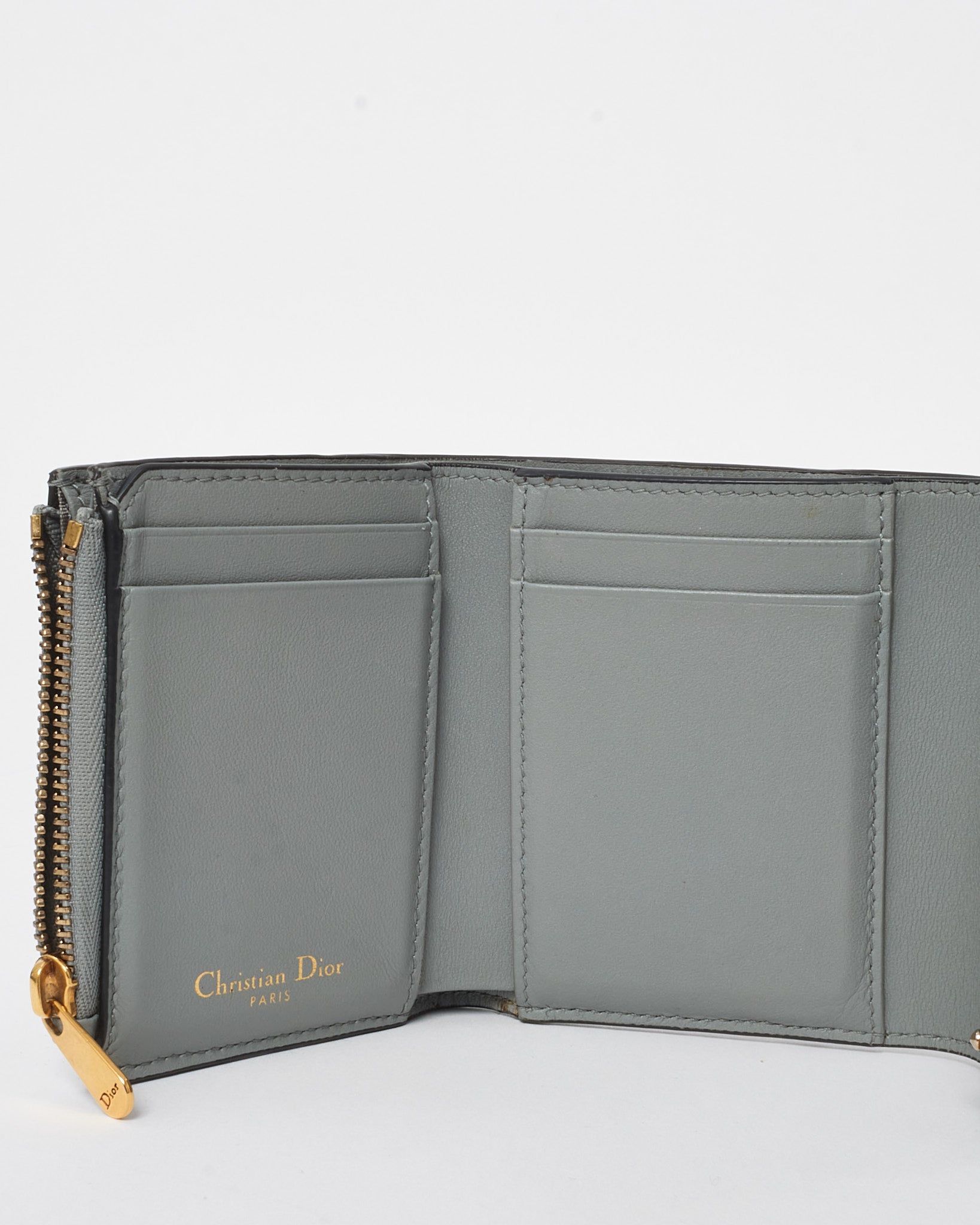 Crafted in soft grey calfskin leather, this pre-loved authentic Dior Saddle Lotus Wallet is an elegant blend of heritage and modern luxury. Featuring the iconic Saddle flap silhouette and a gleaming gold-tone ‘D’ charm, it opens to a well-organized interior with multiple card slots, a bill compartment, and a zippered coin pouch. Compact yet functional, this wallet is ideal for slipping into your favorite mini bag while adding a signature Dior touch to your daily essentials.