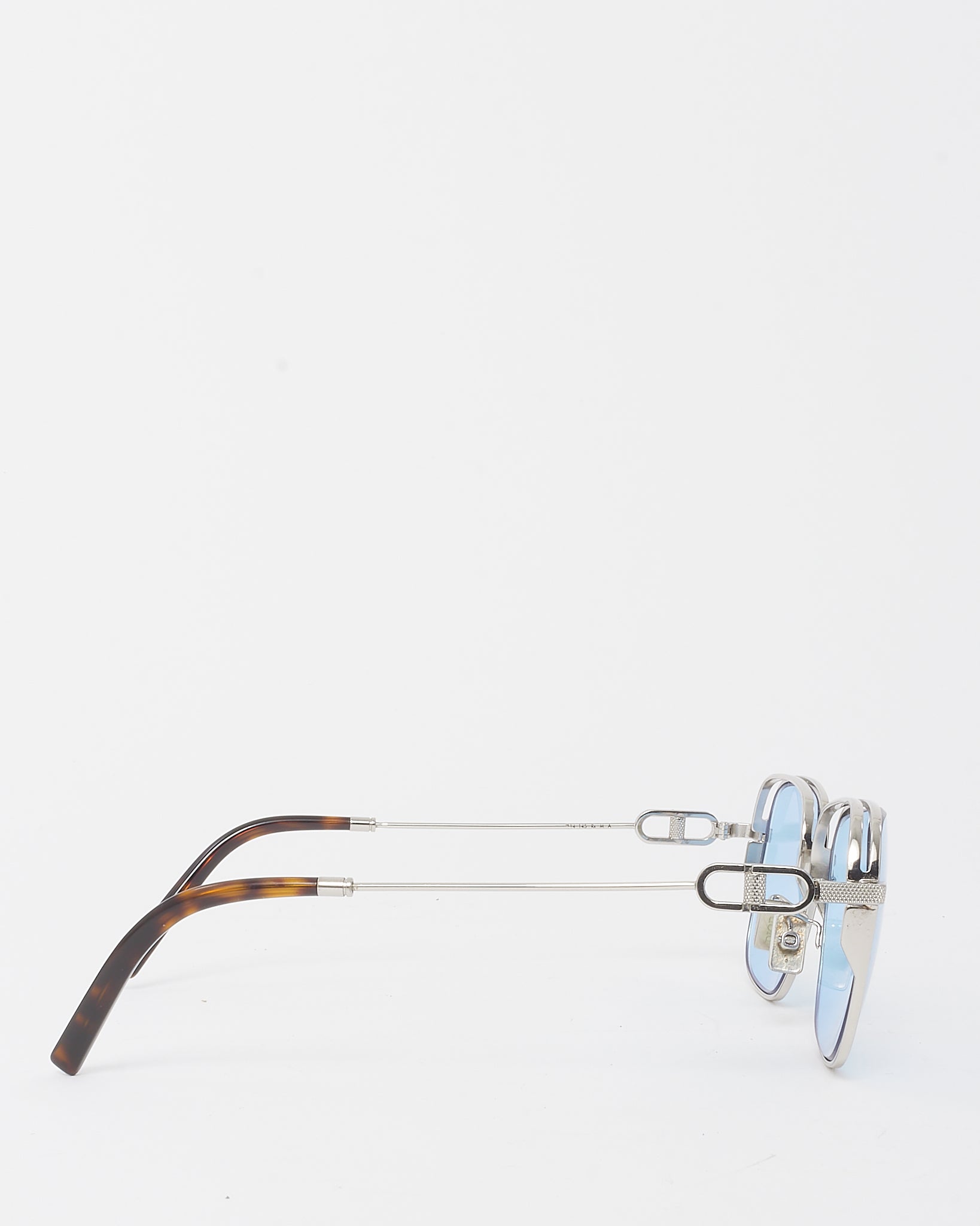 Men's Prescription Silver CD Link Blue Lens Square Sunglasses