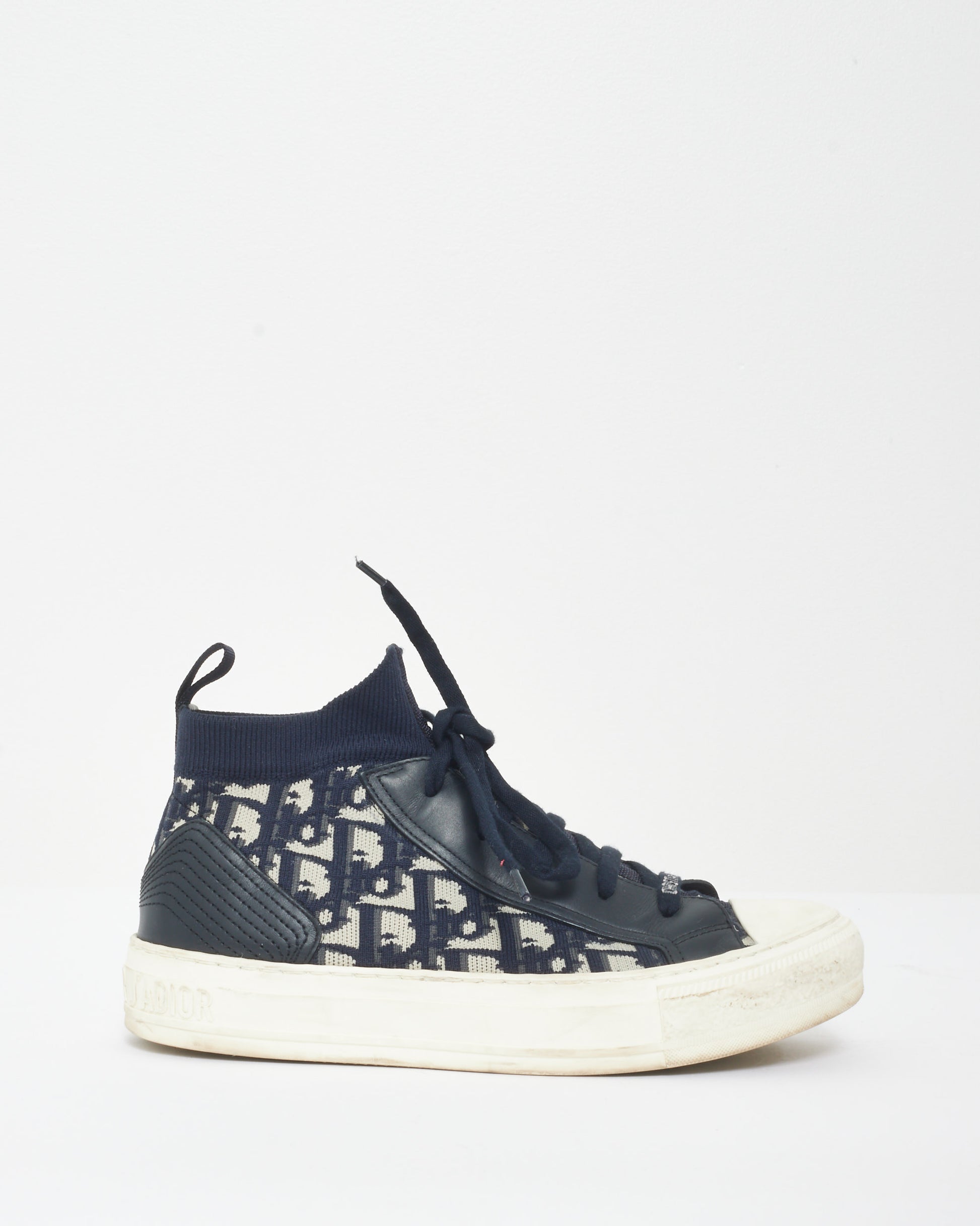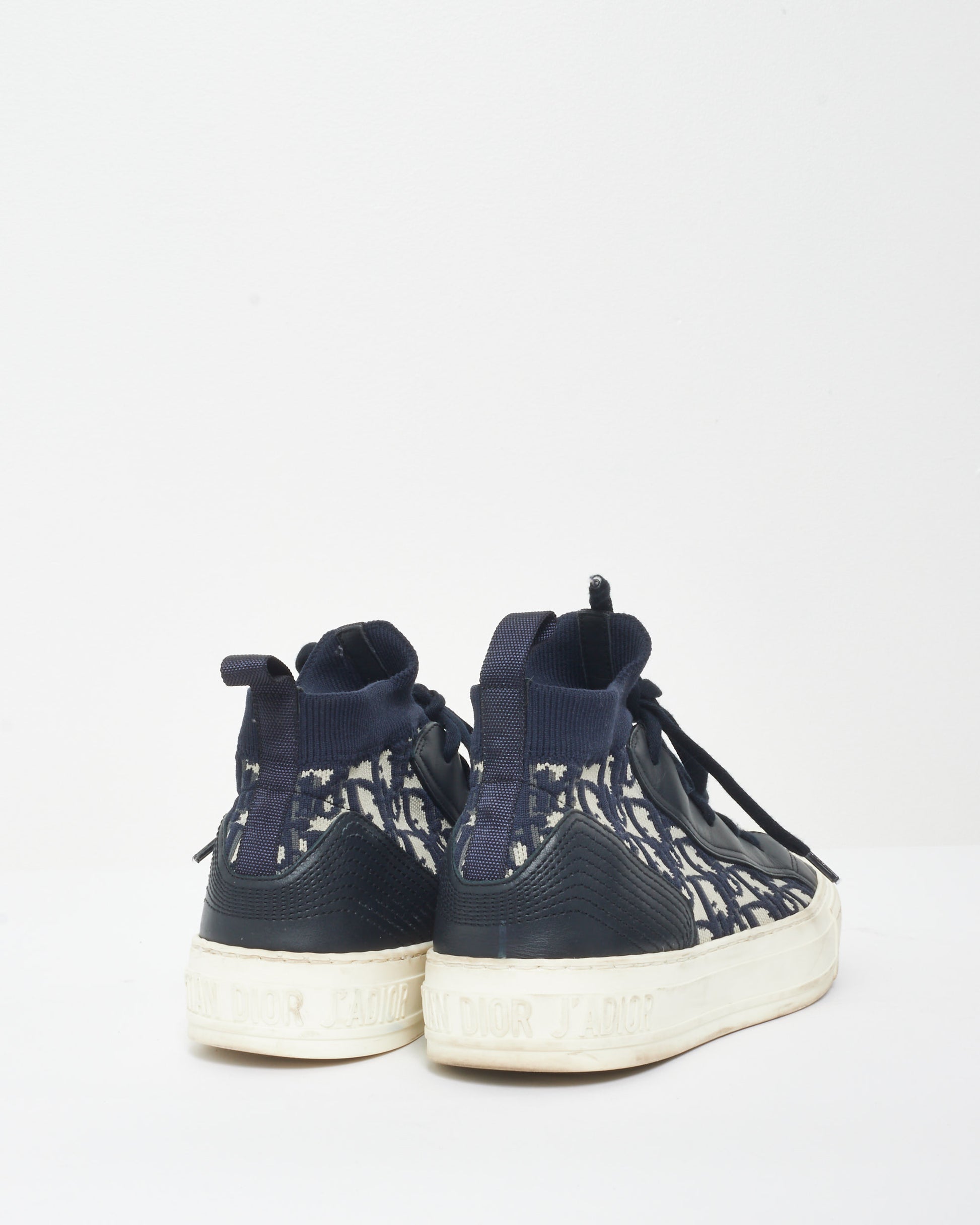 Navy Knit Oblique Monogram Walk'N'Dior Hightop Sneakers - 38
