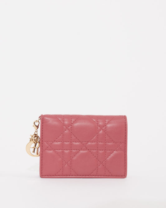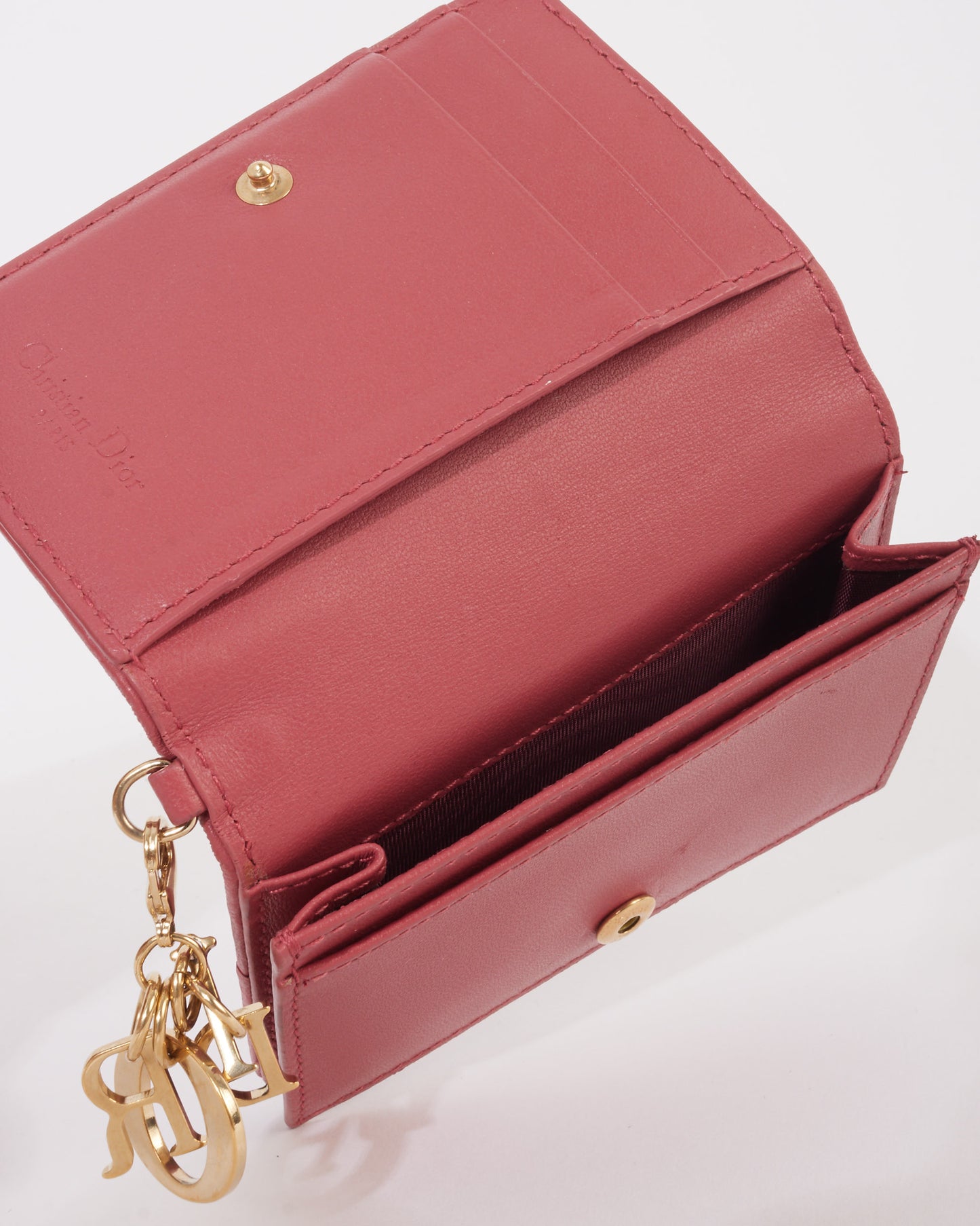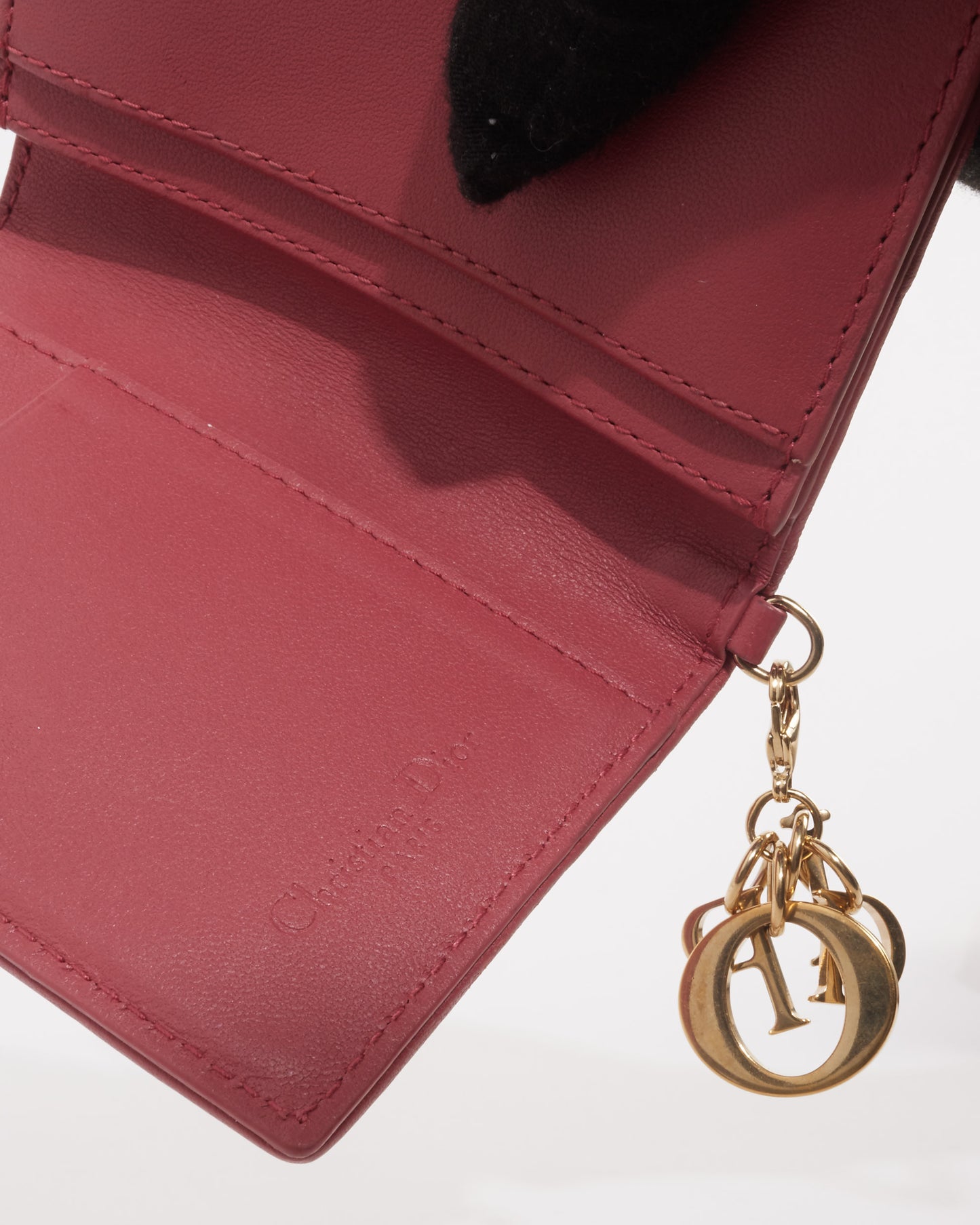 Raspberry Cannage Calfskin Leather Lady Dior Flap Card Holder