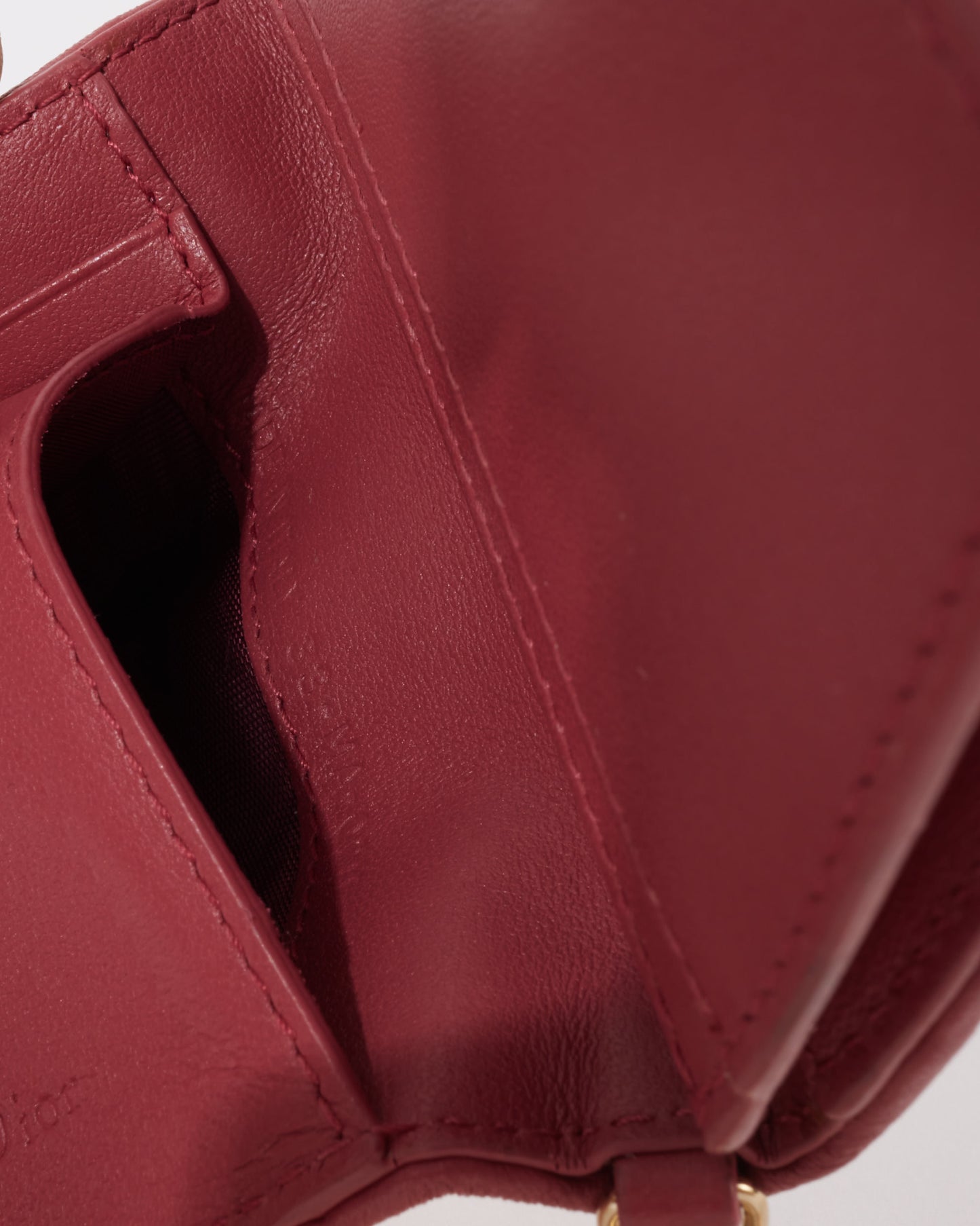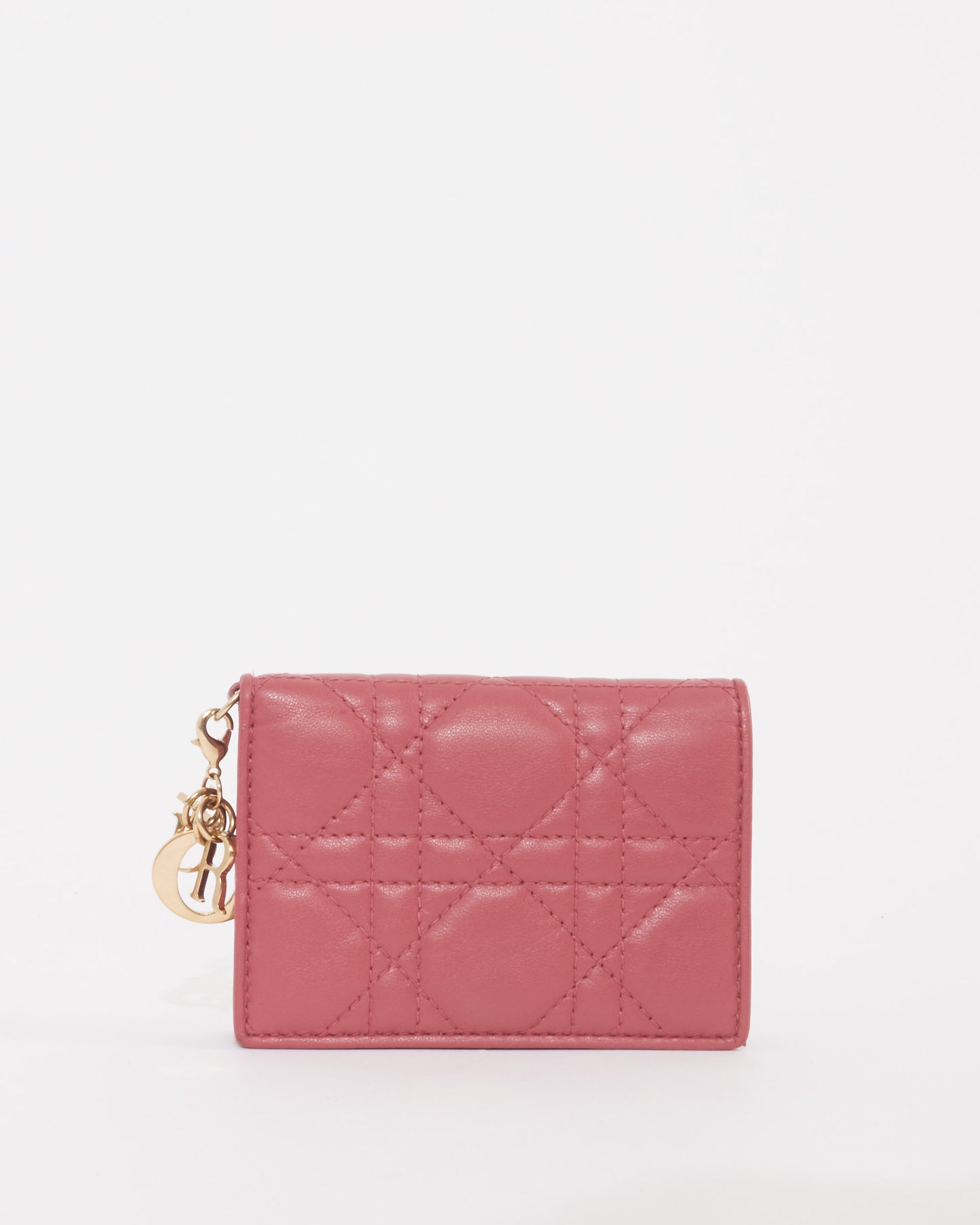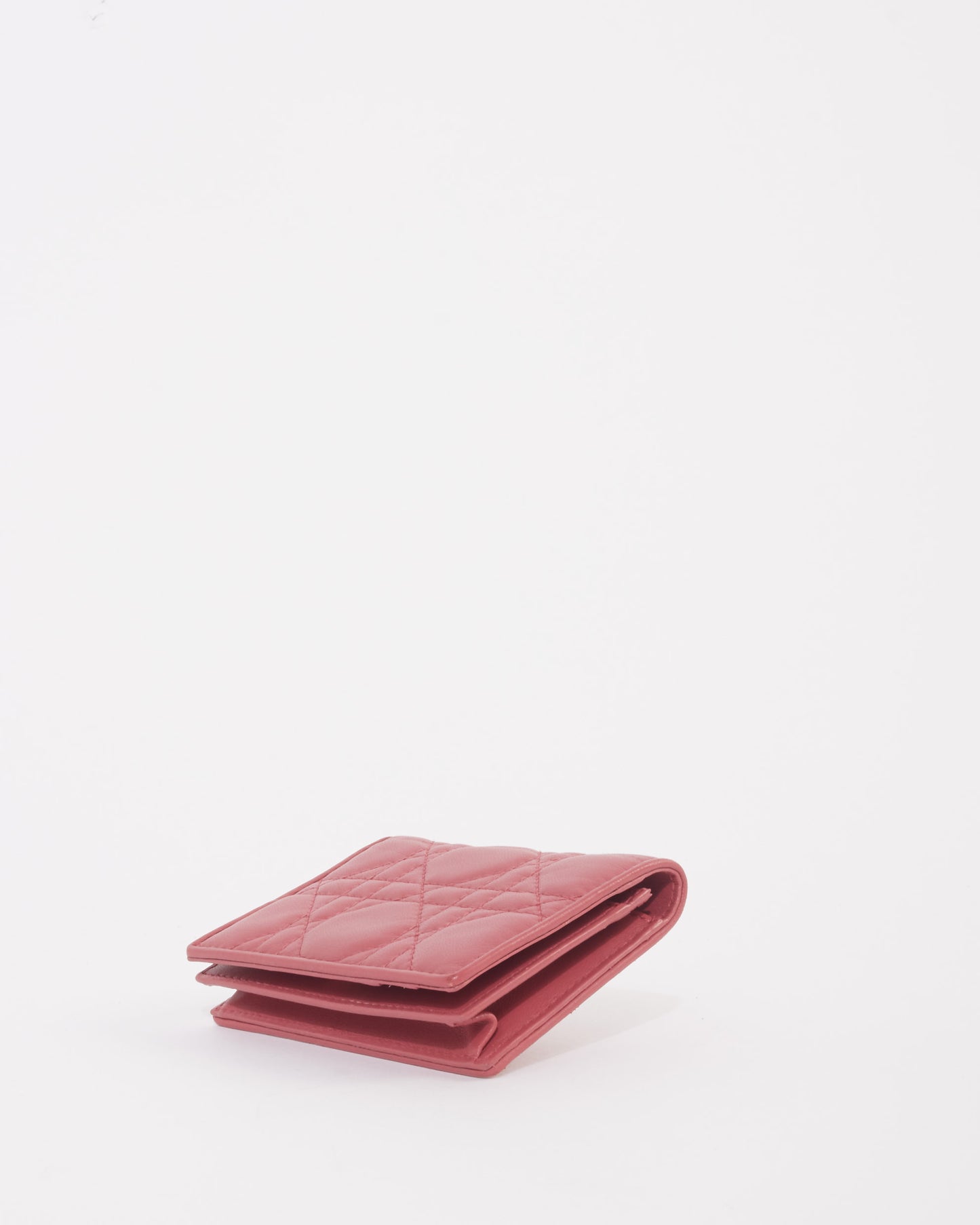 Raspberry Cannage Calfskin Leather Lady Dior Flap Card Holder