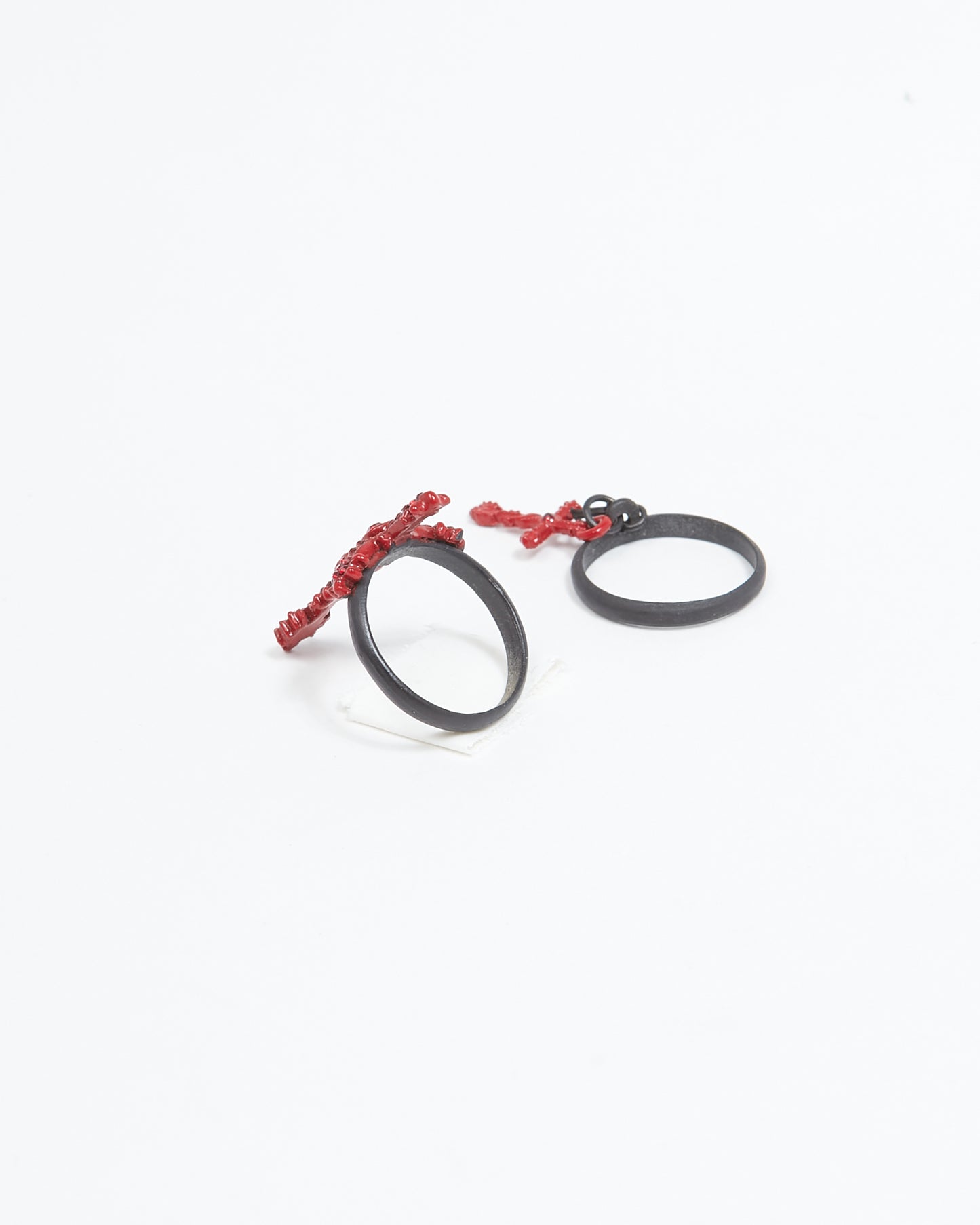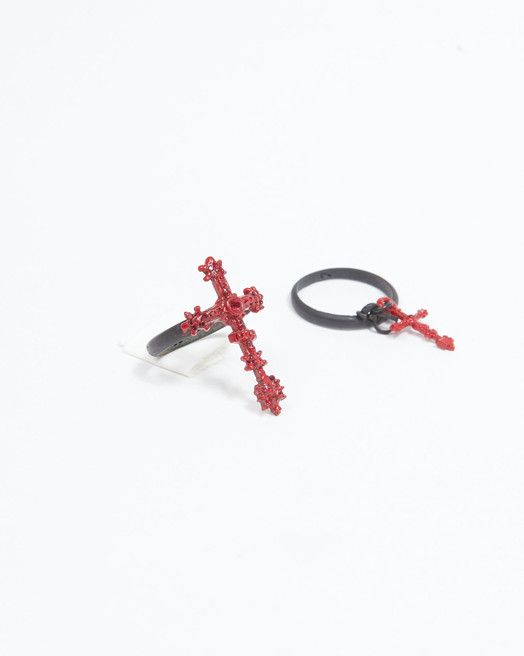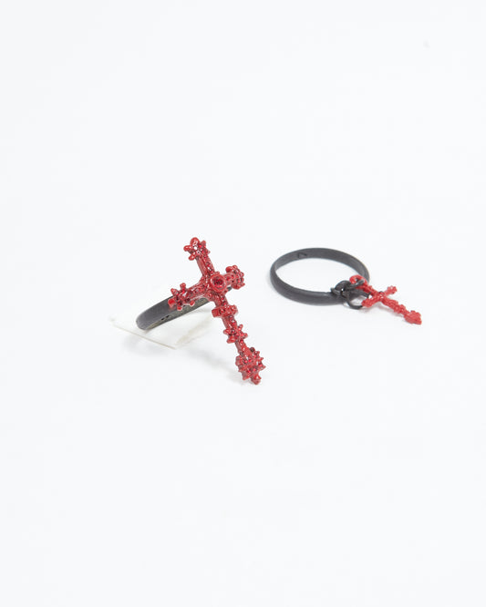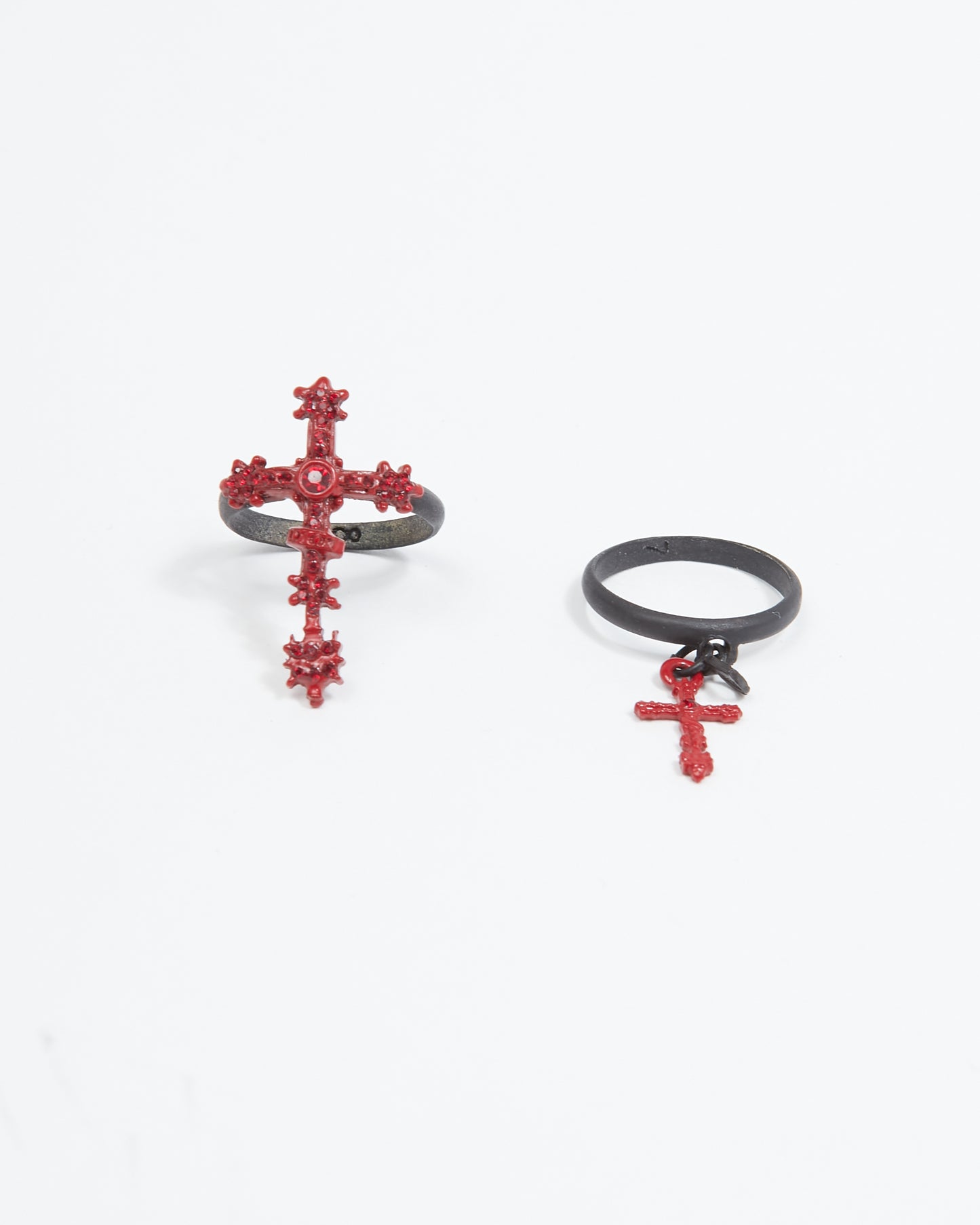 Vintage Red/Black Gothic Cross 2 Ring Set