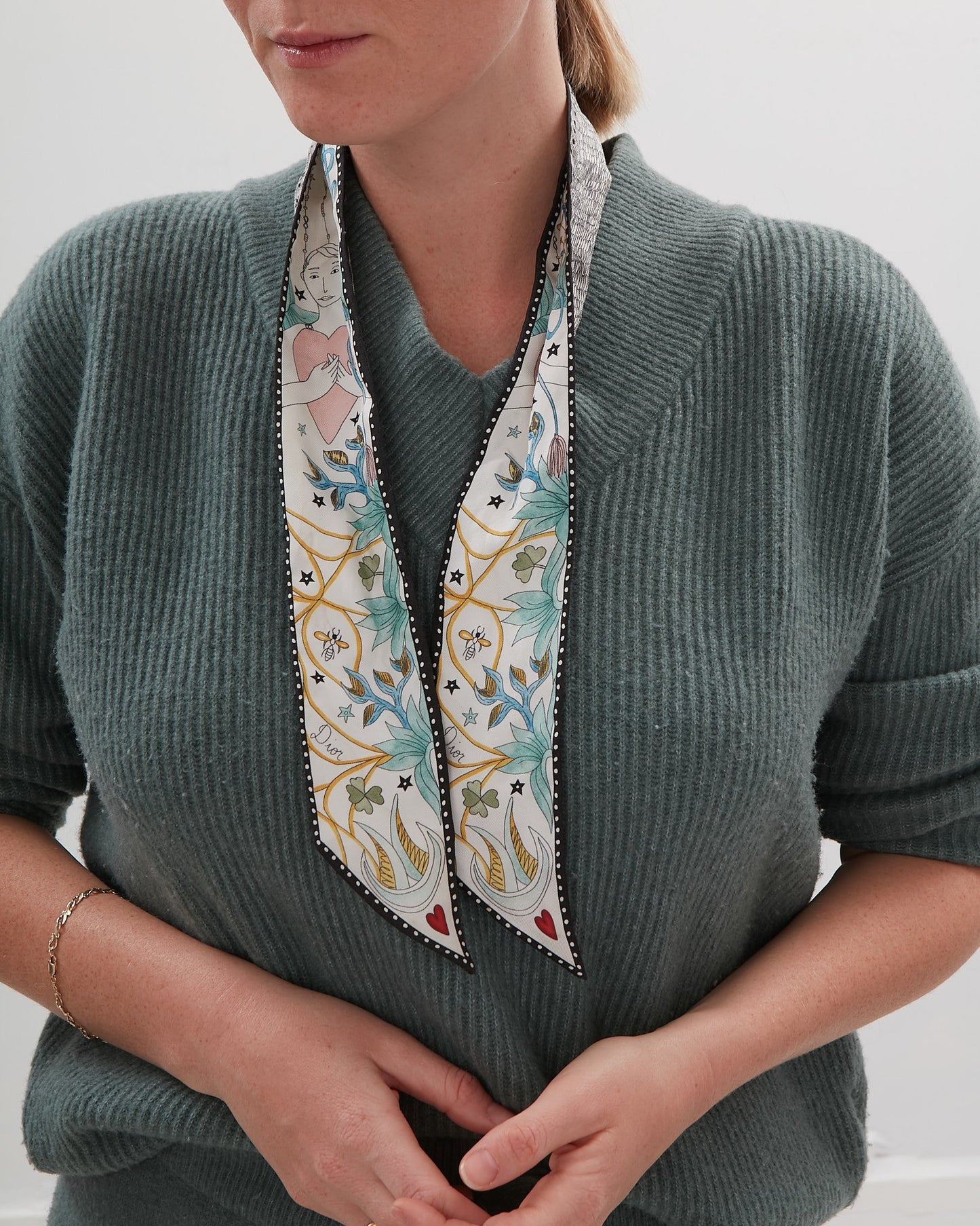 White Silk L’Amoureux Tarot Mitzah Twill Scarf
