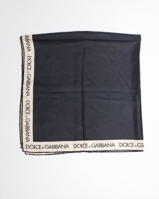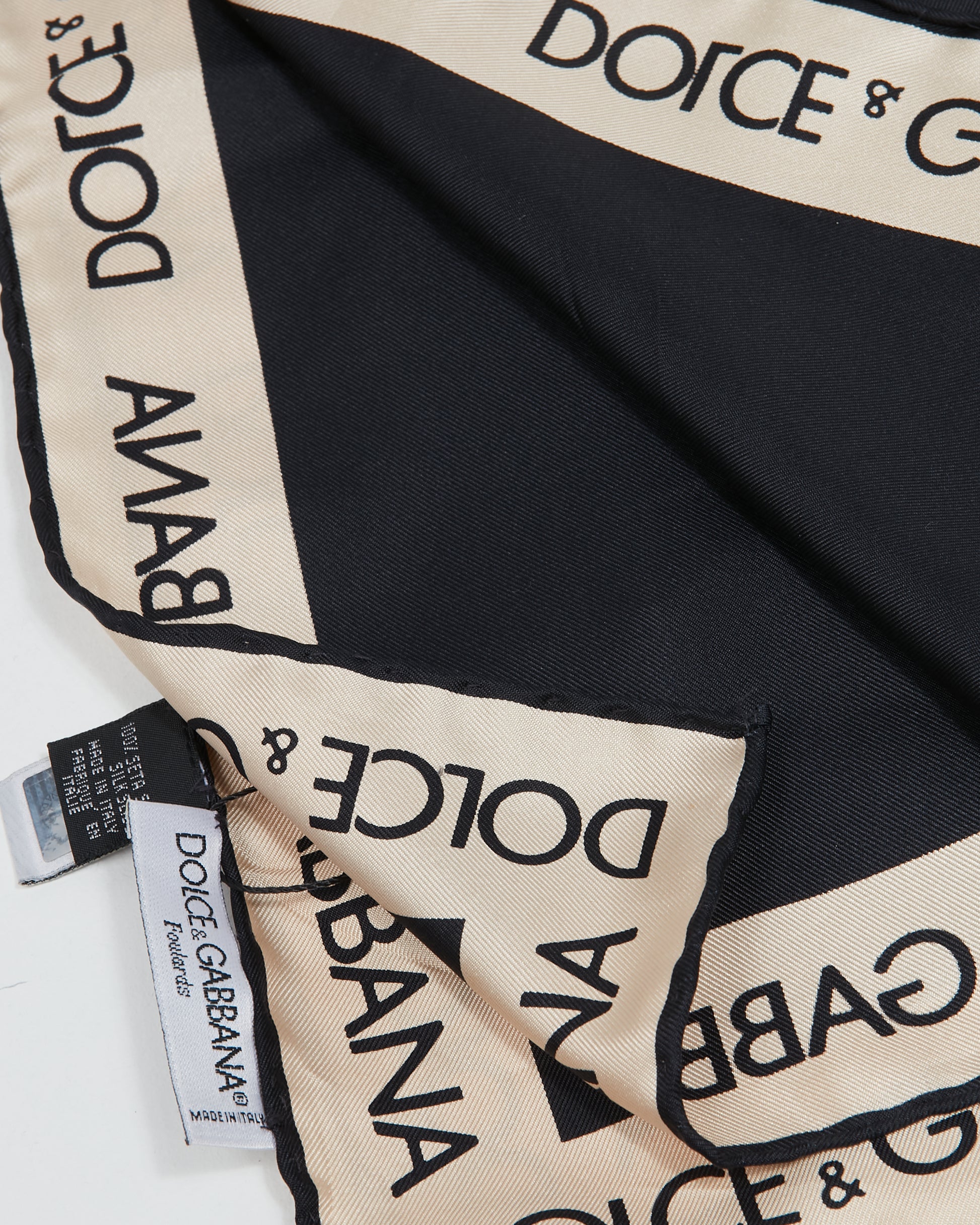 Dolce & Gabbana Black/Beige Silk Logo Scarf