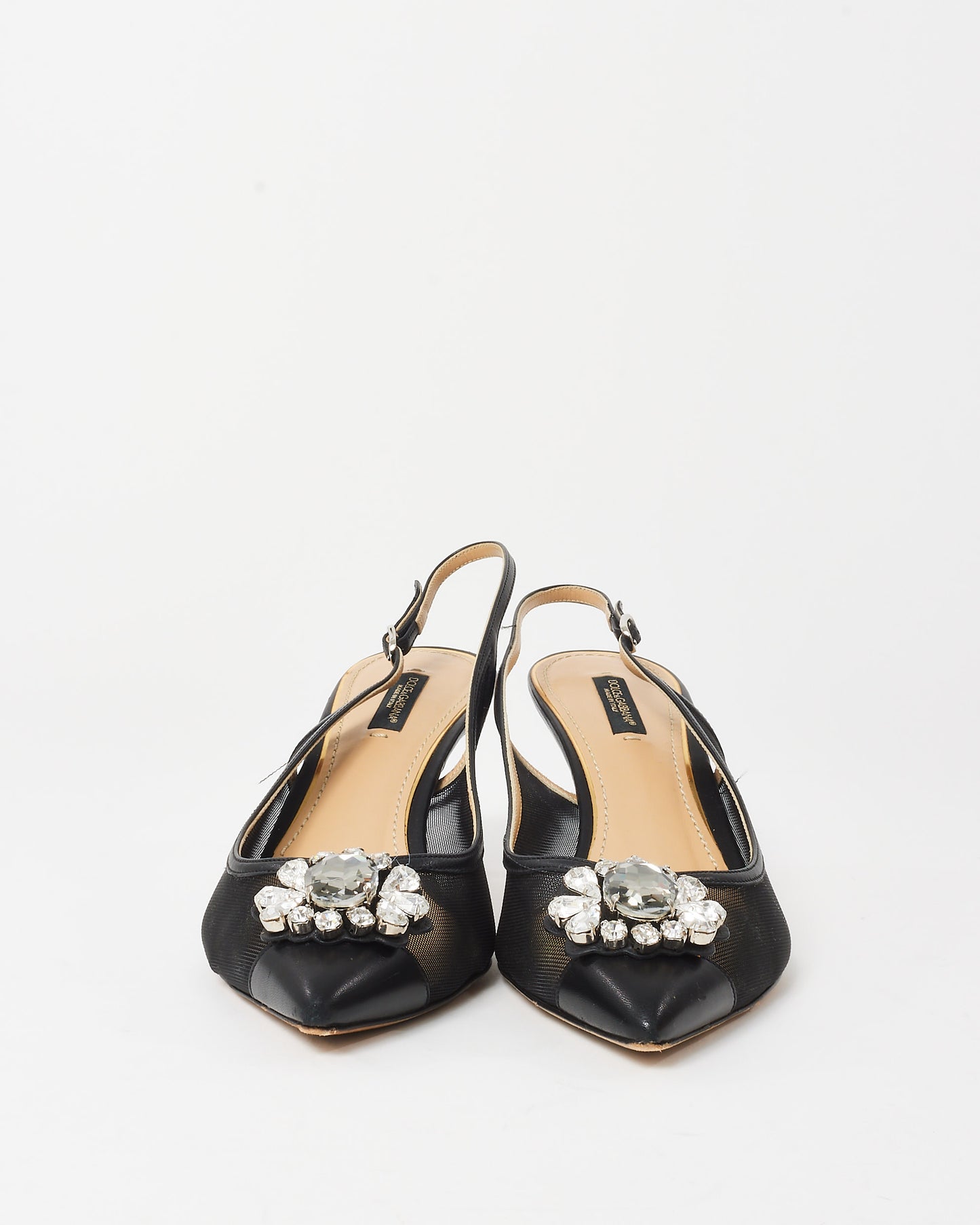 Black Felix Mesh Crystal Slingback Pumps - 38