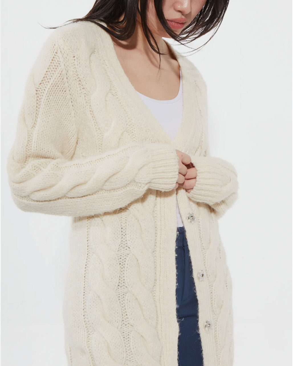 Sport Cream Wool Cable Knit Cardigan - S